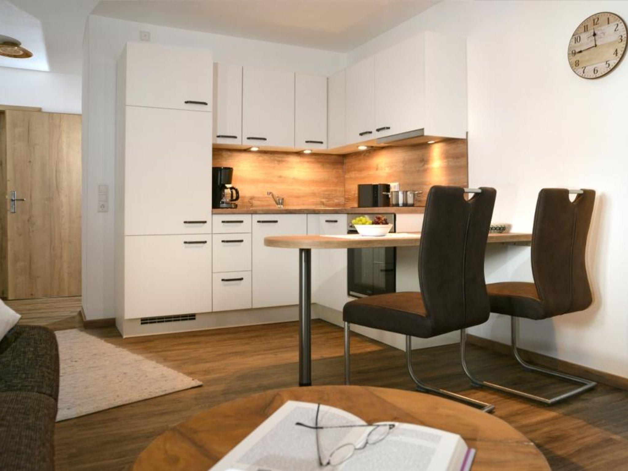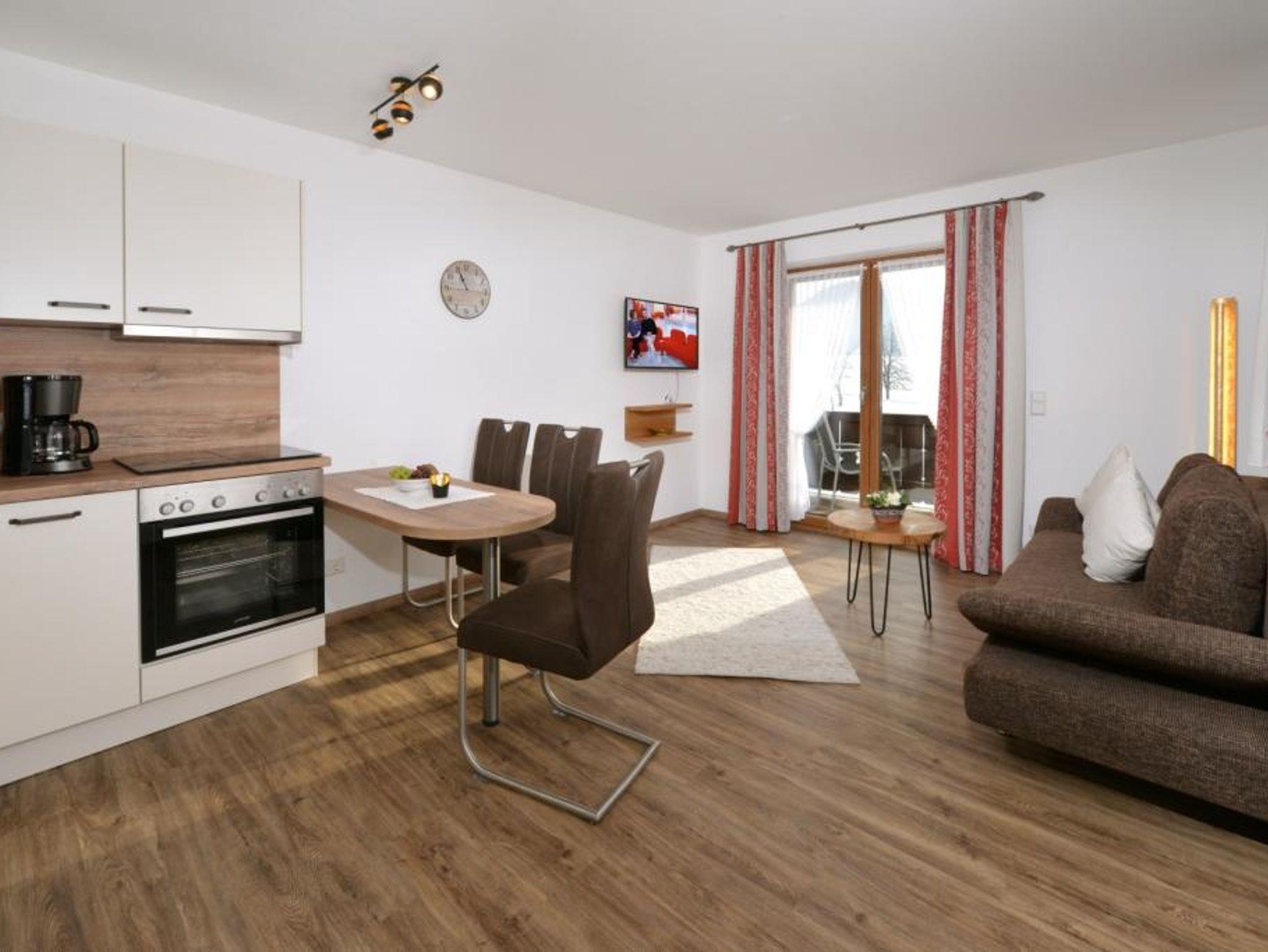 Sehr schöne, helle, neue 2-Raum-Wohnung mit allem Komfort. Gemütliche Wohnküche mit moderner, voll ausgestatteter Küchenecke, Sitzgruppe und hochwertiger Couch. Zwei große Balkone laden bei traumhaften Panoramablick auf die umliegende Bergwelt zum verweilen ein. Das Schlafzimmer ist im ländlichen Stil eingerichtet und sorgt für erholsamen Schlaf.