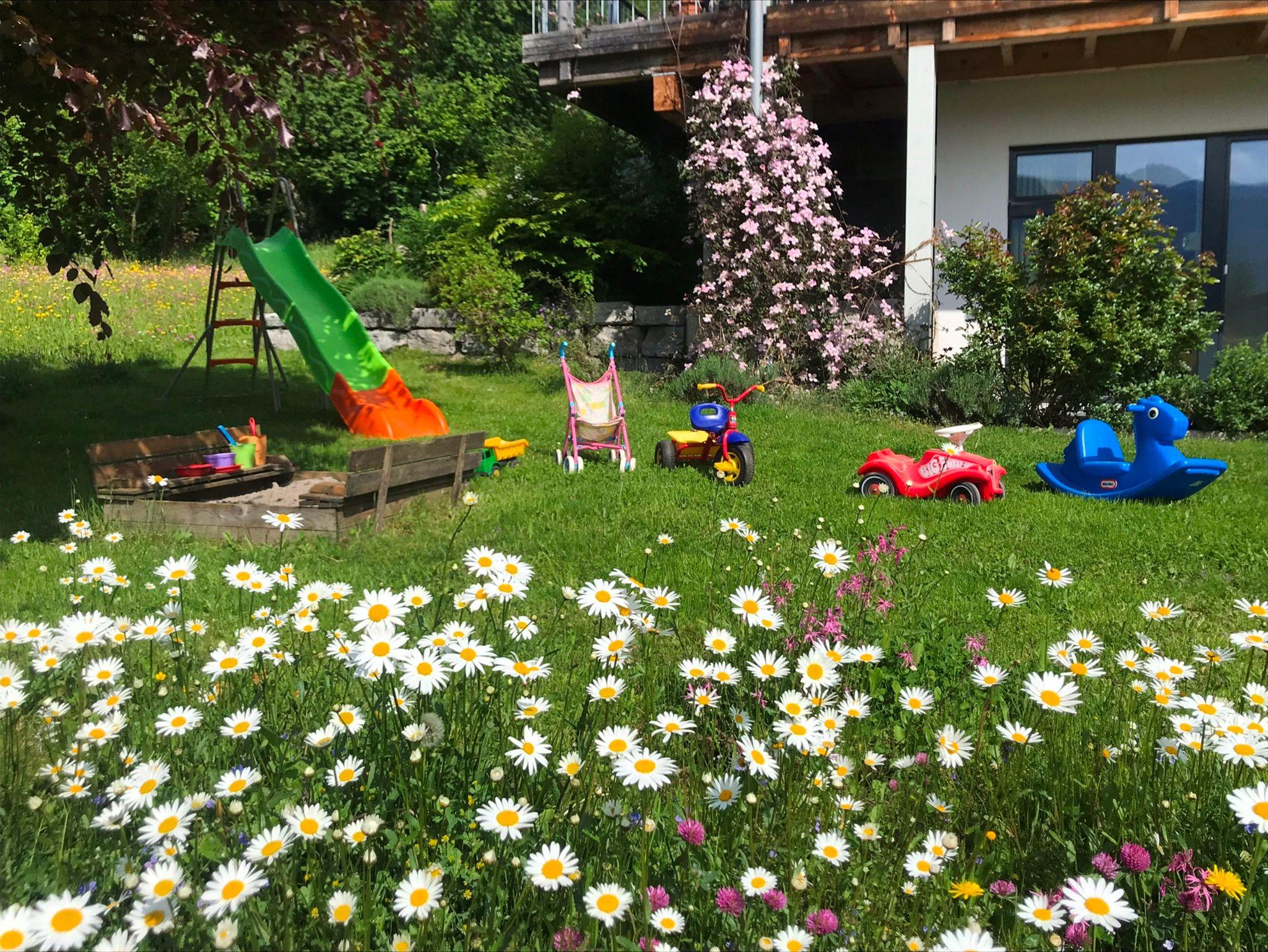 Eingebettet in die herrliche Alpenlandschaft des Chiemgaus, in absolut ruhiger Südhanglage erwartet sie unsere großzügige und exklusive Ferienwohnung mit Bergblick. Genießen Sie die geschützte Sonnenterrasse zu jeder Jahreszeit mit eigener weitläufiger Gartenanlage. Selbstverständlich stehen Ihnen Gartenmöbel, sowie ein Sandkasten und eine Rutsche für die Kleinen zur Verfügung. Ab Haus erreichen Sie Wanderwege, Reit- und Golfplatz, sowie das Ortszentrum in wenigen Gehminuten. Reit im Winkl zeichnet sich durch hohe Schneesicherheit und viele Sonnenstunden aus. Ab Haus erreichen Sie Winter-Wanderwege, Loipen, Rodelhang und den Skibus ins Skigebiet Winklmoos-Alm-Steinplatte. Die Wohnungsausstattung ist sehr hochwertig, modern und mit viel Liebe zum Detail erfolgt. An kühlen Tagen können Sie die dazugehörende Sauna und den gemütlichen Holzofen einheizen.