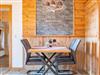 Wohnzimmer bzw. Wohnküche mit komplett ausgestatteter Küchenzeile (Spülmaschine, Backofen usw.), Esstisch mit vier Stühlen, großer Couch, Schlafzimmer mit Holzvertäfelung u. Fichtenmöbeln, großes Bad mit ebenerdiger Dusche und Balkon, buchbar für max. zwei Erwachsene und ein Kind (nur kleine Kinder möglich!).