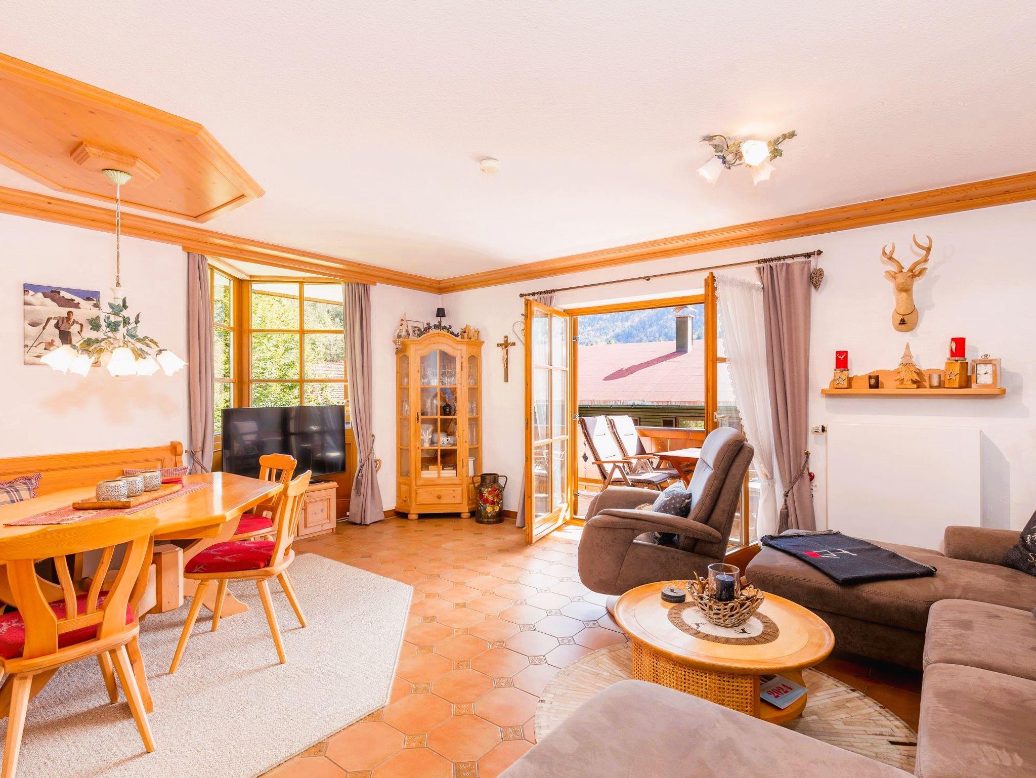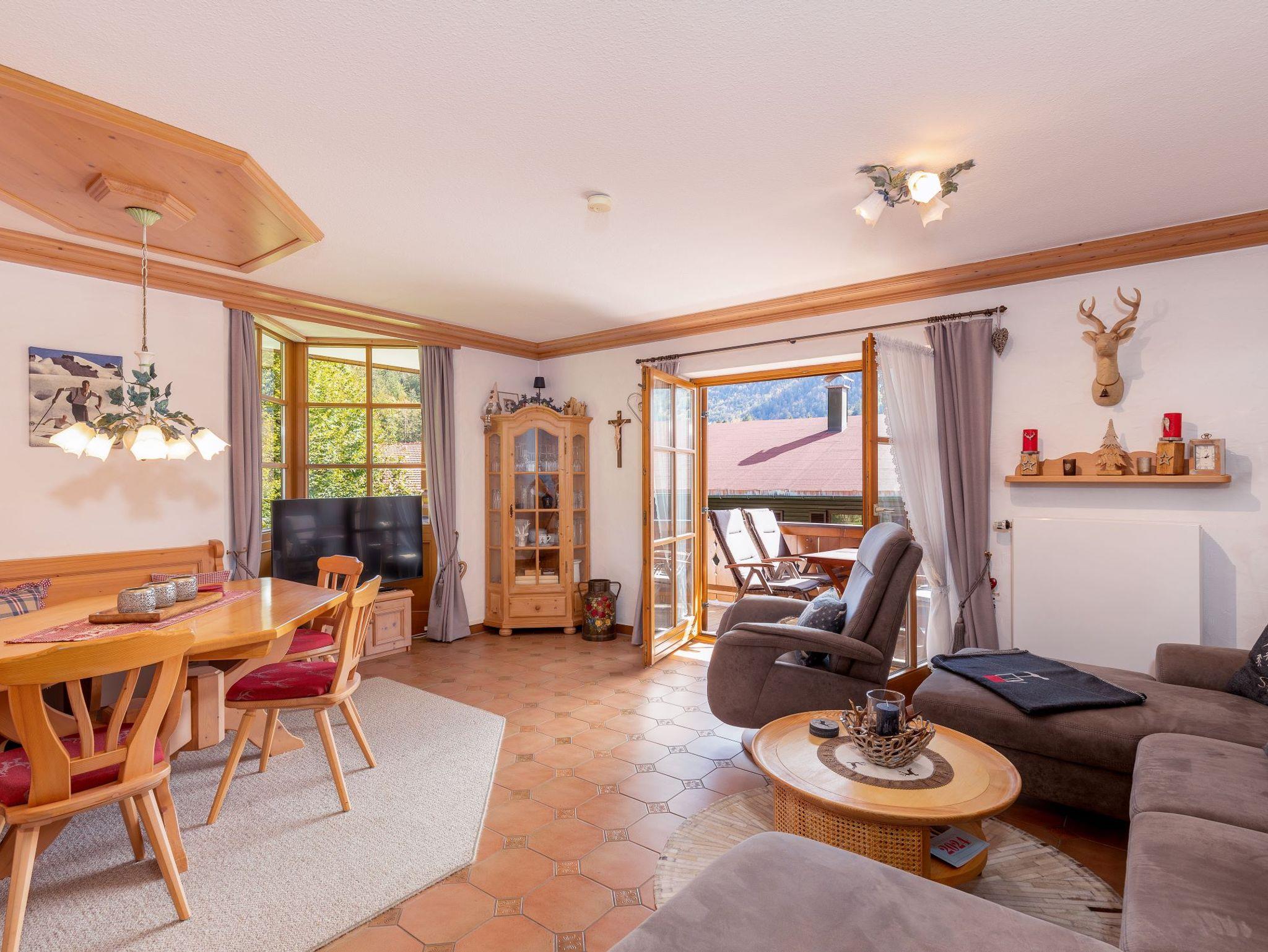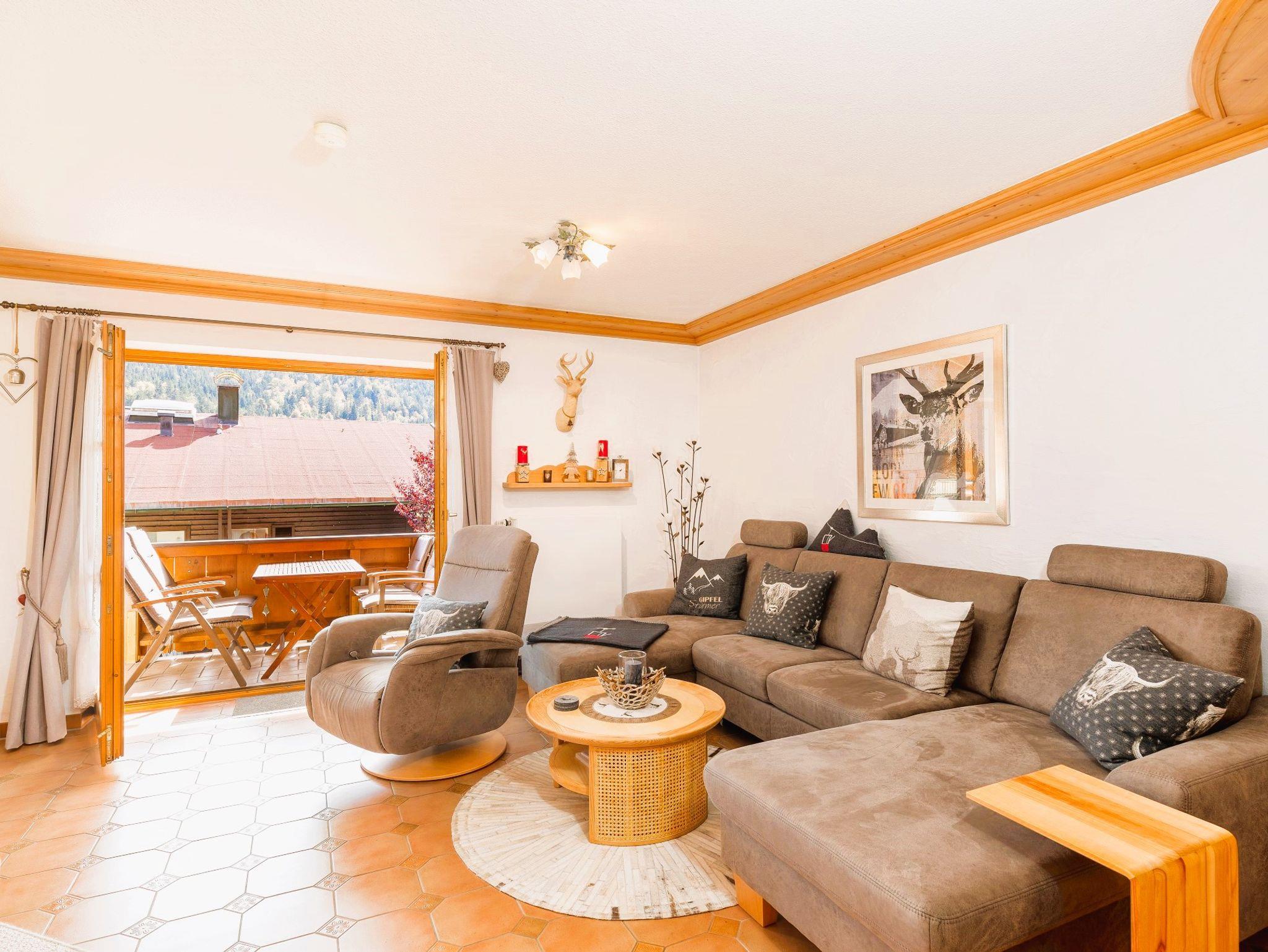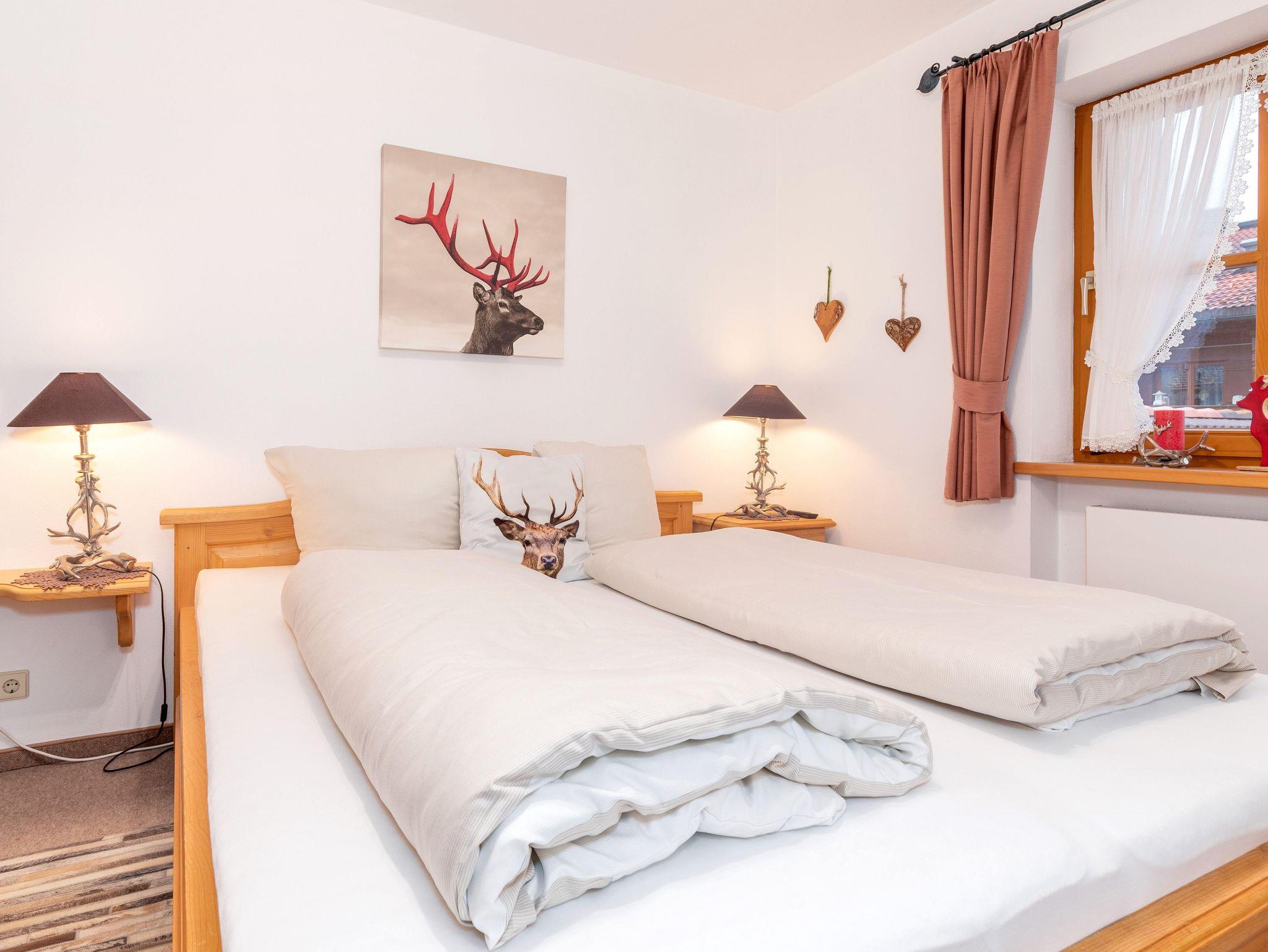 Beide Schlafzimmer verfügen jeweils über ein großes Doppelbett und direkten Zugang zum Balkon. Zwei luxuriöse Bäder sorgen für eine angenehme Privatsphäre, wobei ein Bad eine große Eckbadewanne beinhaltet. Der geräumige Wohnbereich ist mit einer Essecke und einer großen, gemütlichen Couch ausgestattet und gewährt Zugang zum sonnigen Südbalkon. Die komplett eingerichtete Küche ist durch eine Schiebetüre vom Wohnraum getrennt und verfügt unter anderem über einen Backofen, 4-Zonen-Cerankochfeld, Mikrowelle, Geschirrspüler, Kühlschrank, Tiefkühlfach, Toaster, Kaffeemaschine, Eierkocher, Wasserkocher, Dolce Gusto Kaffeeautomat und lässt bestimmt keine Wünsche offen. Außerdem gibt es ein Kellerraum in welchem eine Waschmaschine, Trockner und Skischuhtrockner bereitstehen. Ein Stellplatz in der Tiefgarage, sowie eine Ski- und Fahrradraum erfüllen den praktischen Teil des Urlaubs. Die Ferienwohnung ‚Elisabeth‘ sticht durch besonders hervor durch ihre wertige Ausstattung wie etwa handgefertigte Lampen und Naturholzmöbel im bayerischen Stil.