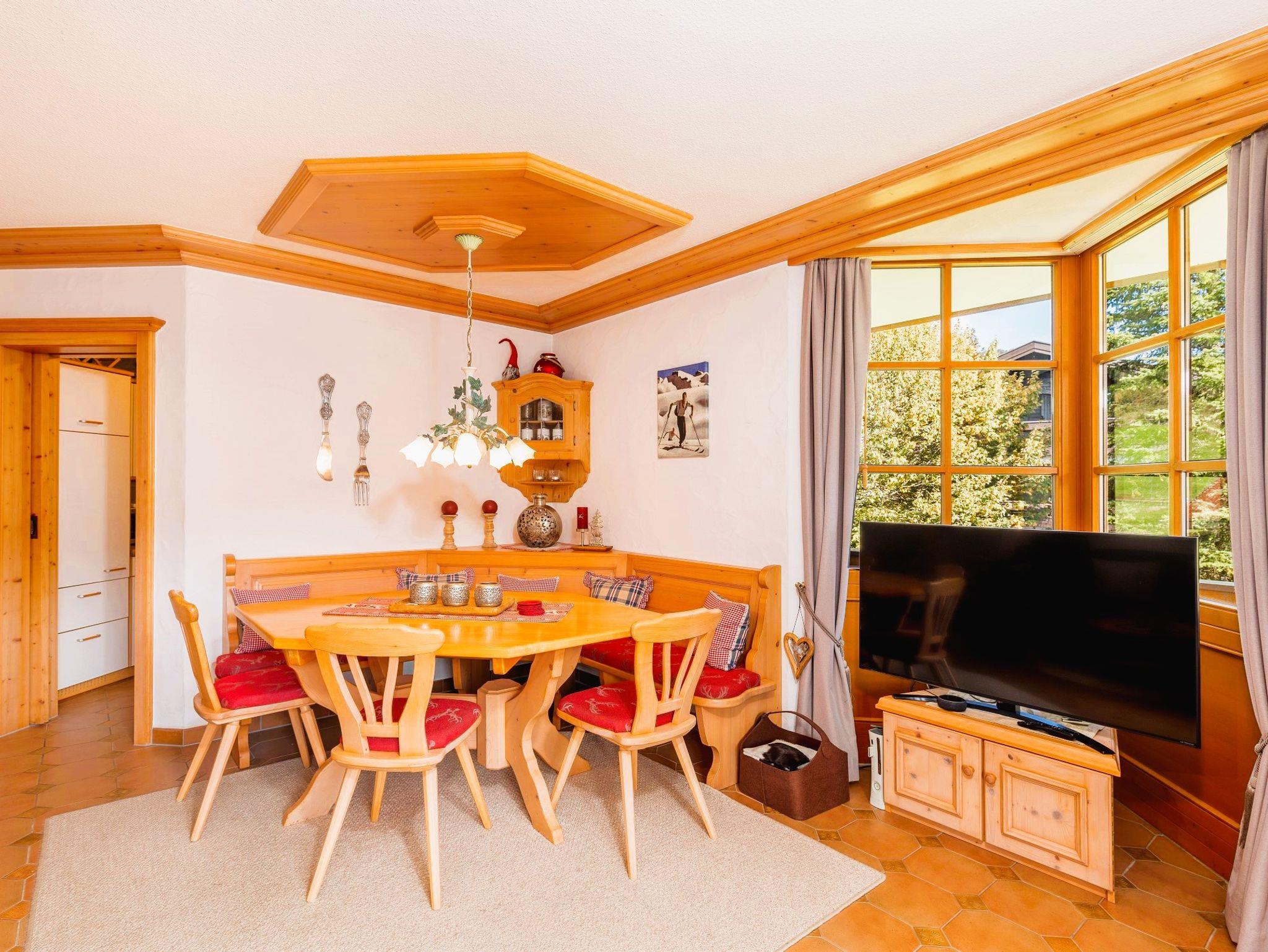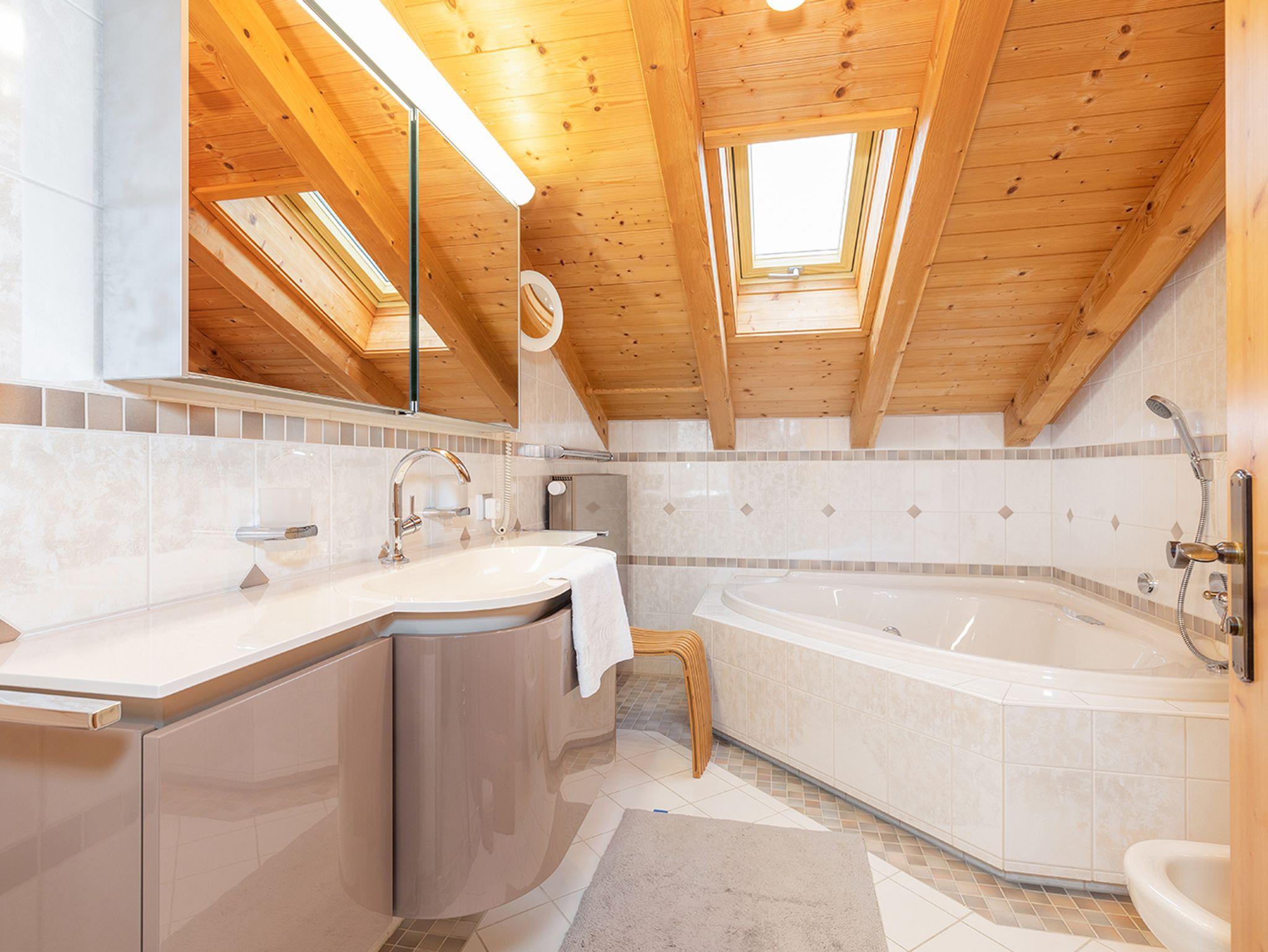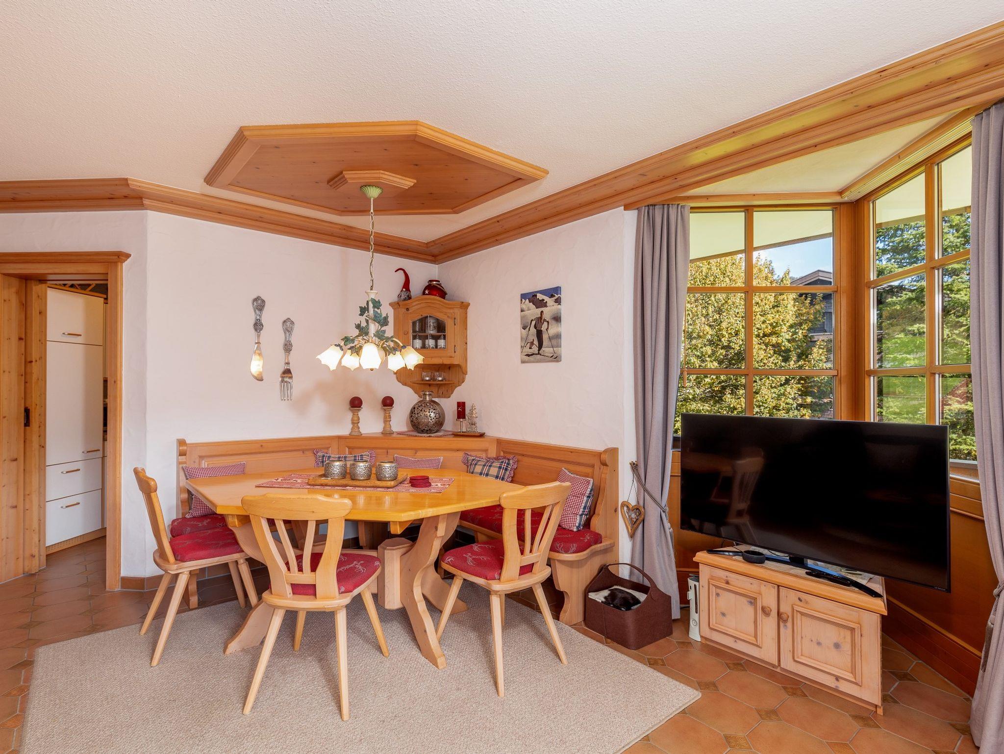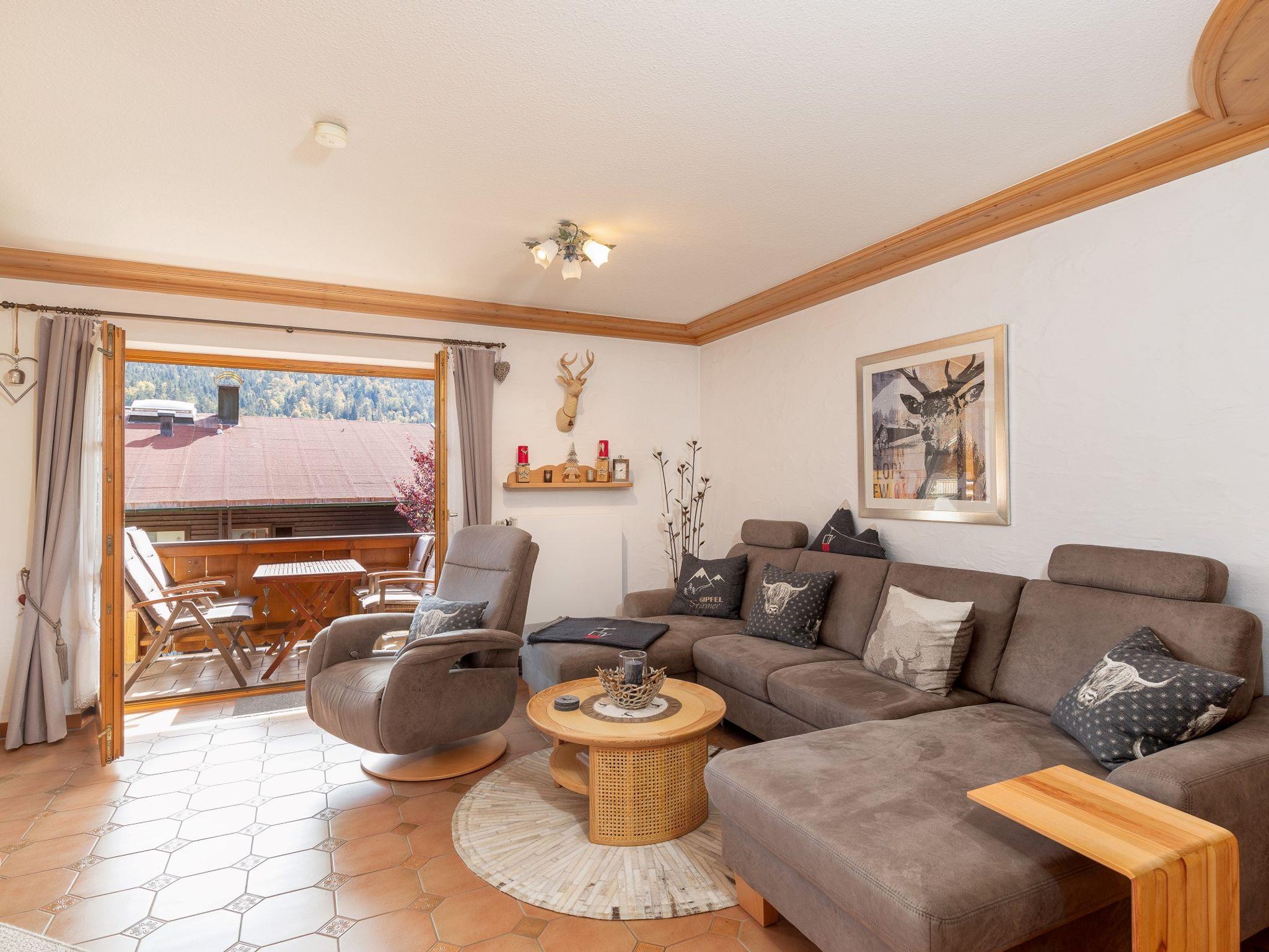 Beide Schlafzimmer verfügen jeweils über ein großes Doppelbett und direkten Zugang zum Balkon. Zwei luxuriöse Bäder sorgen für eine angenehme Privatsphäre, wobei ein Bad eine große Eckbadewanne beinhaltet. Der geräumige Wohnbereich ist mit einer Essecke und einer großen, gemütlichen Couch ausgestattet und gewährt Zugang zum sonnigen Südbalkon. Die komplett eingerichtete Küche ist durch eine Schiebetüre vom Wohnraum getrennt und verfügt unter anderem über einen Backofen, 4-Zonen-Cerankochfeld, Mikrowelle, Geschirrspüler, Kühlschrank, Tiefkühlfach, Toaster, Kaffeemaschine, Eierkocher, Wasserkocher, Dolce Gusto Kaffeeautomat und lässt bestimmt keine Wünsche offen. Außerdem gibt es ein Kellerraum in welchem eine Waschmaschine, Trockner und Skischuhtrockner bereitstehen. Ein Stellplatz in der Tiefgarage, sowie eine Ski- und Fahrradraum erfüllen den praktischen Teil des Urlaubs. Die Ferienwohnung ‚Elisabeth‘ sticht durch besonders hervor durch ihre wertige Ausstattung wie etwa handgefertigte Lampen und Naturholzmöbel im bayerischen Stil.