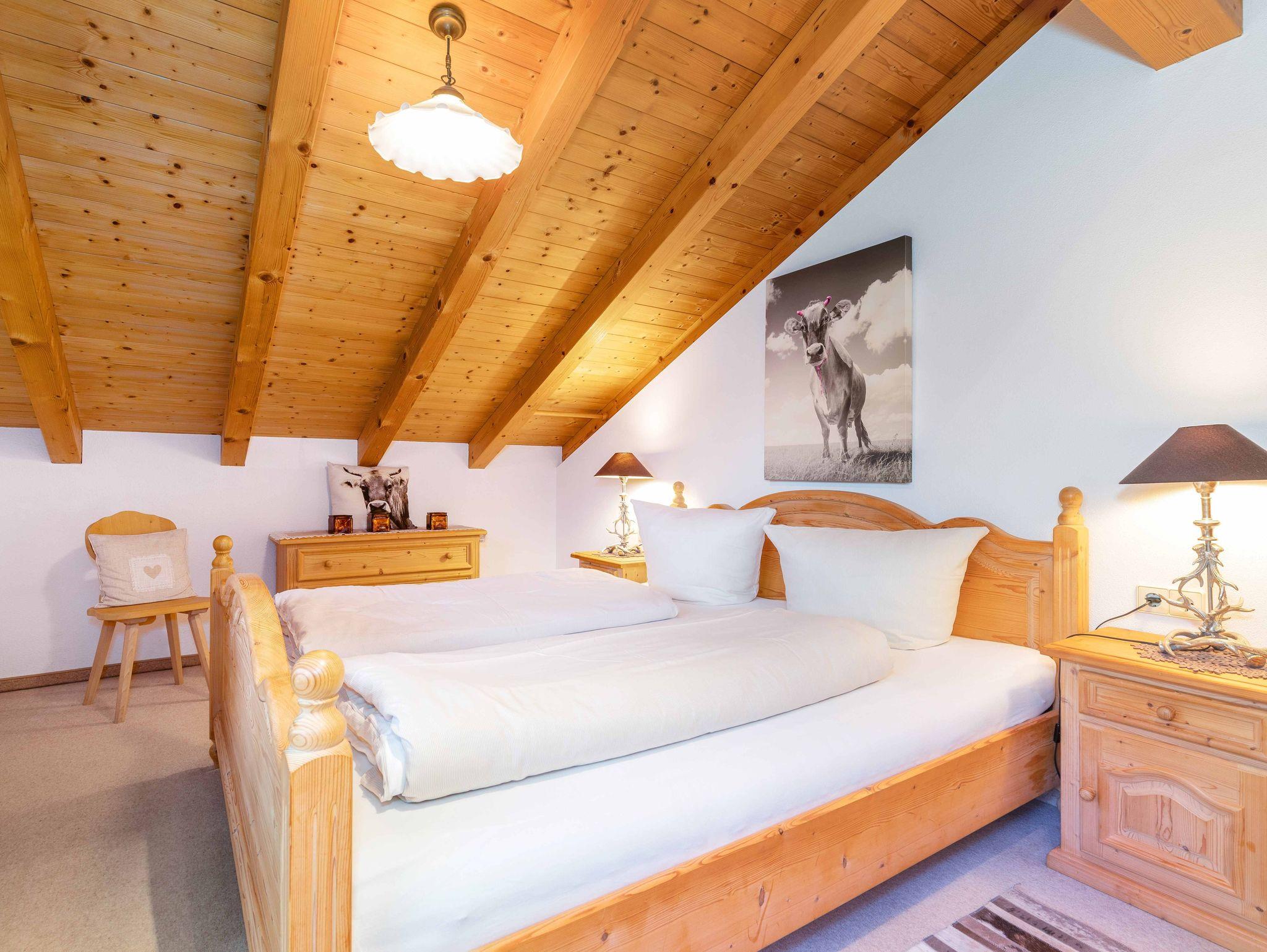 Die ruhig gelegene Ferienwohnung ‚Elisabeth‘ ist mit etwa 90 m² sehr geräumig. Sie verfügt über 2 Schlafzimmer und bietet Platz für bis zu 4 Personen. Die Wohnung erstreckt sich über das 1. Obergeschoss und das Dachgeschoss, welche mit einer Wendeltreppe verbunden sind. Ein großer Balkon mit Bergblick lädt zum Verweilen ein. Die Wohnung ist qualitativ sehr hochwertig eingerichtet und ist mir 5 Sternen (DTV) ausgezeichnet!