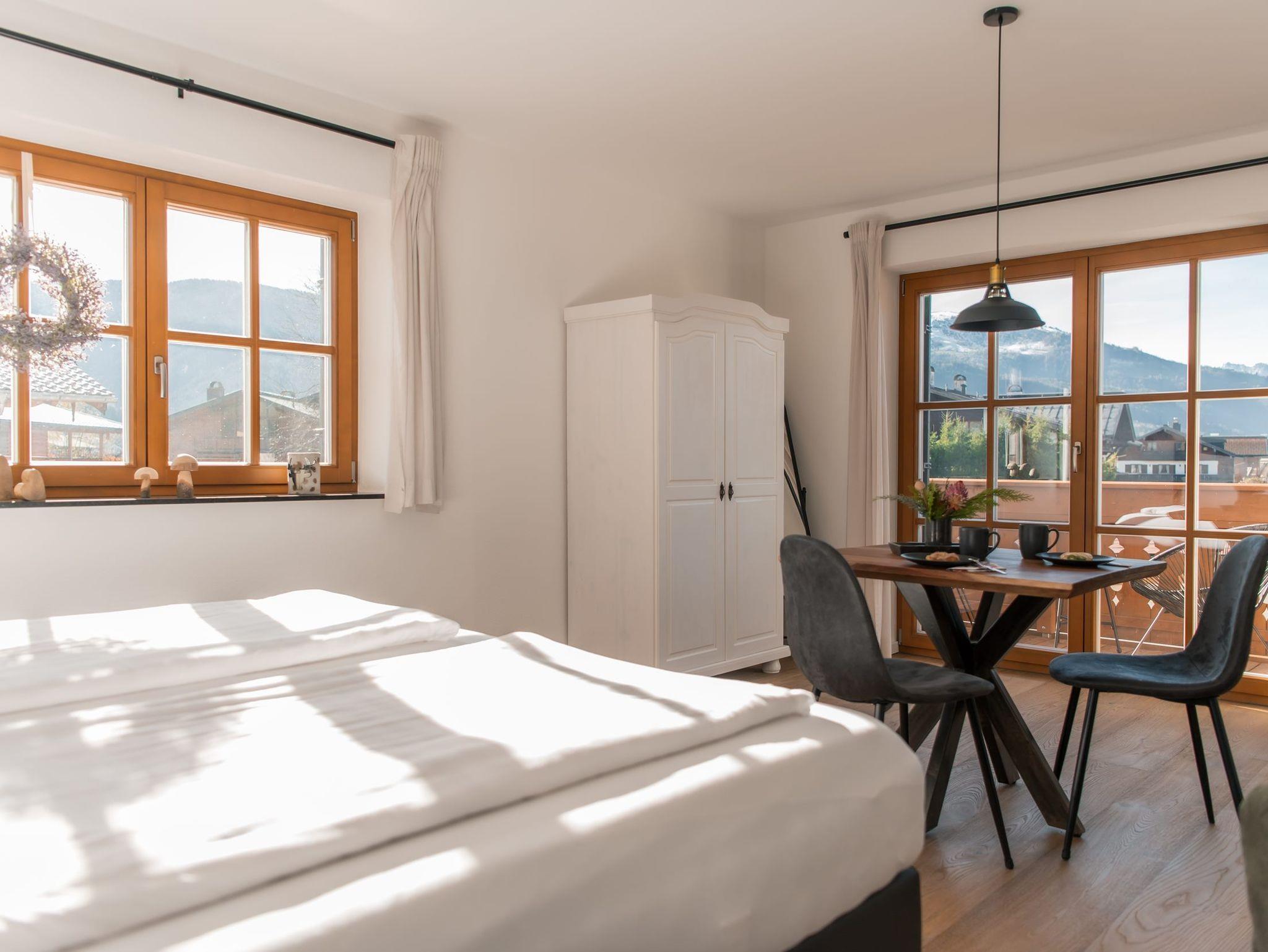 Die Alpenblüte, gelegen am wunderschönen Kurpark in Reit im Winkl. Nach der Eröffnung im Juli 2021 bietet die Alpenblüte Platz für 7 Ferienwohnungen im modernen Landhausstil inklusive designverliebten Details mit Bergblick aus allen Wohnungen. Die Wohnungen verfügen über Kabel-TV und kostenloses W-Lan in allen Räumen. Sie haben die Möglichkeit, eigene Mahlzeiten in den voll ausgestatteten Küchen zu kochen und Ihren morgendlichen Kaffee mit den vorhandenen Cafissimo-Kapselmaschinen zu genießen. Die unmittelbare Dorfmitte, mit vielen Restaurant & Cafes, ist in wenigen Gehminuten erreichbar. Außerdem verfügen alle Wohnungen über Neighborhood-Guides und Empfehlungen zu den besten Badeseen, Wanderungen oder Fahrradrouten im Chiemgau und benachbartem Tirol.