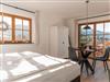 Die Ferienwohnung Enzian liegt im 1. Obergeschoss und verfügt über einen traumhaften Blick auf das Unterberghorn, Fellhorn und in das Kasiergebirge. Der Blick in die Berge lässt sich auch aus dem kombinierten Wohn/Schlafraum genießen.