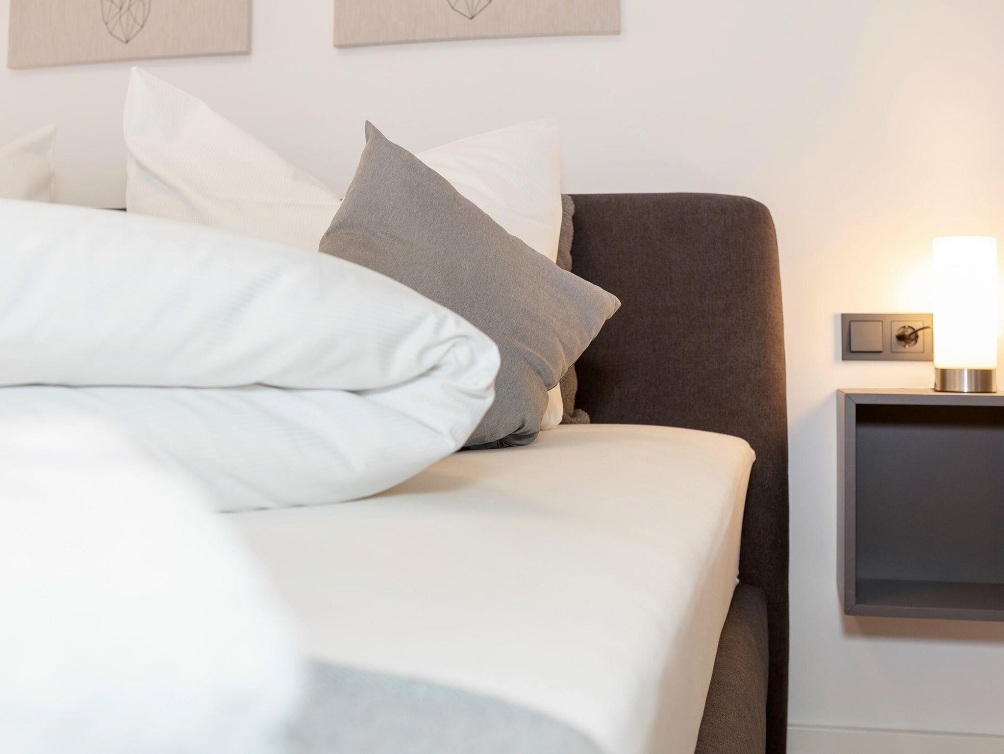 Für einen erholsamen Schlaf stellen wir Ihnen Topper, Kissen und Decken in verschiedenen Größen und Härtegraden zur Verfügung. Auf Anfrage bieten wir auch Kinderbetten, Hochstühle und Babyphone kostenfrei an.