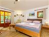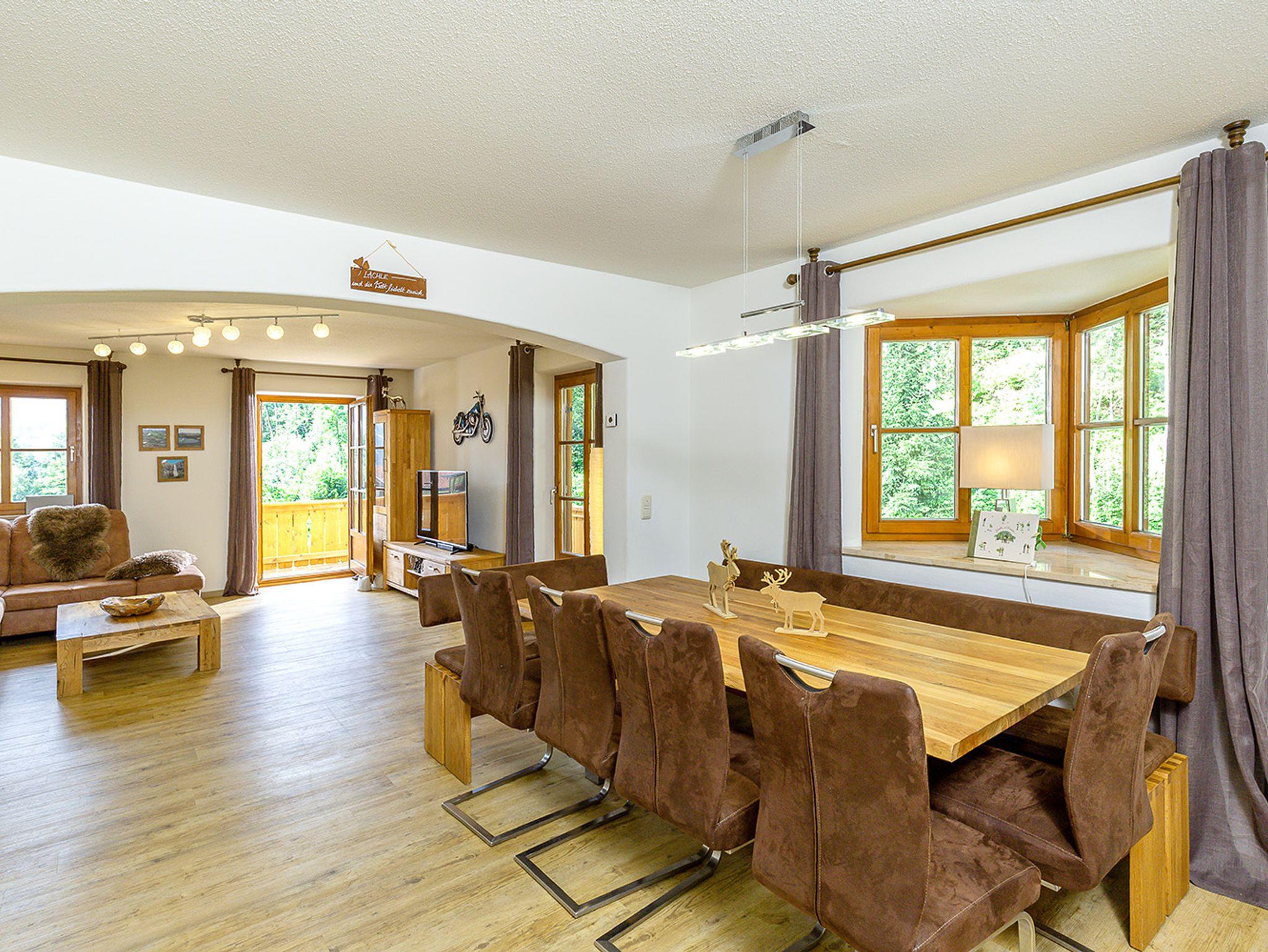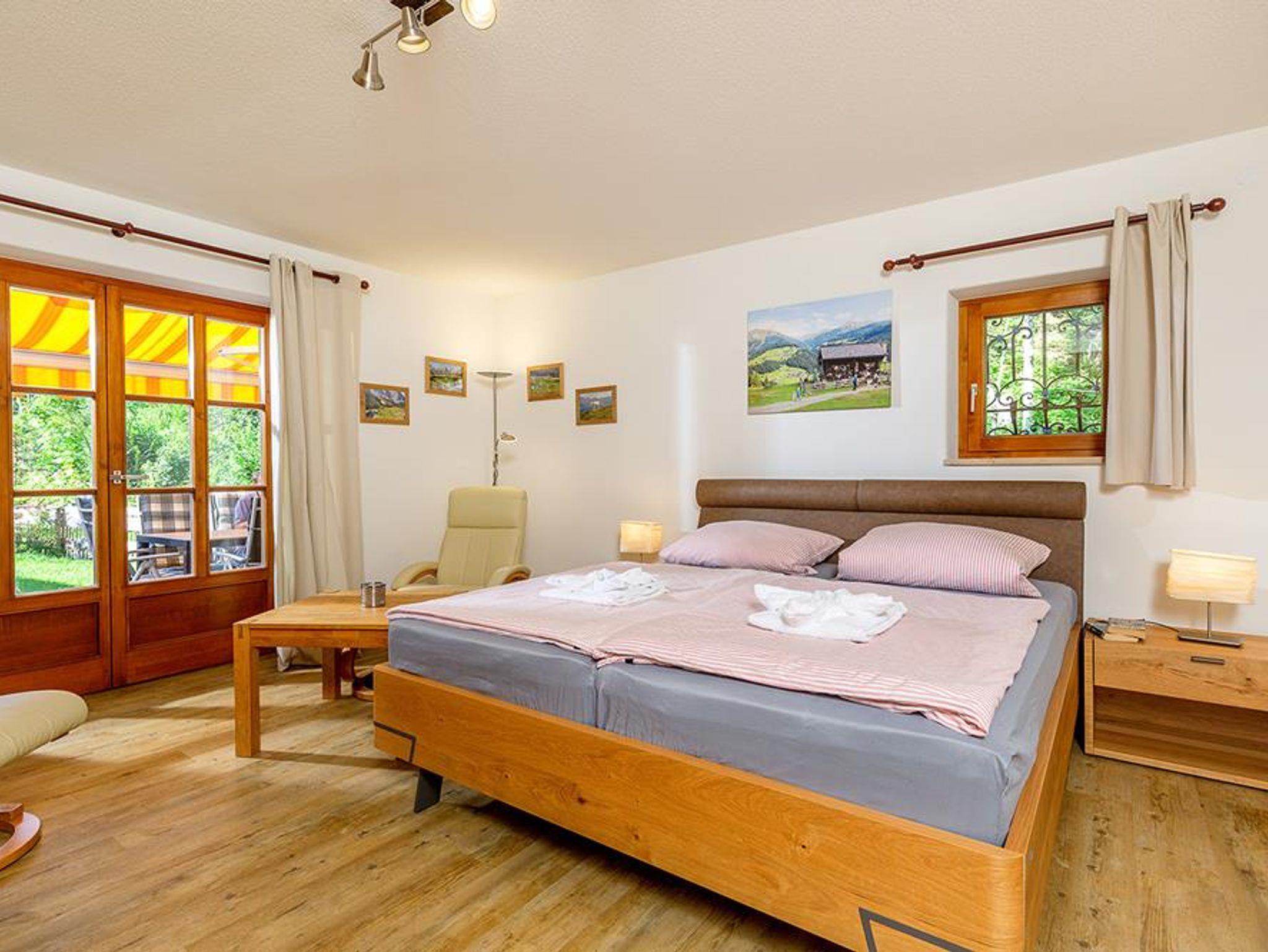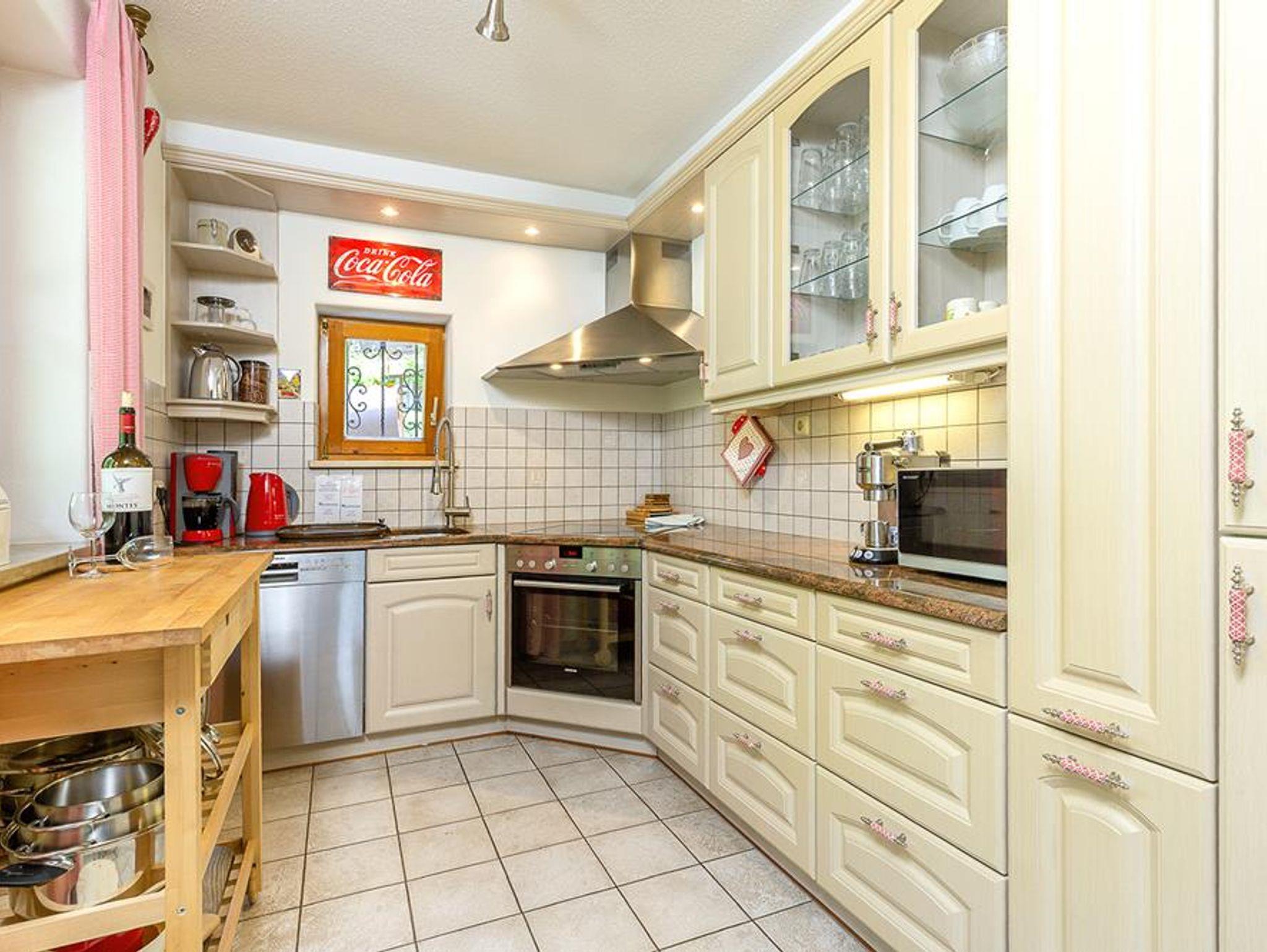In der unteren Etage befindet sich die Garderobe, das Kinderzimmer, die Waschküche mit Waschmaschine und Trockner, ein sehr modernes Bad mit Dusche und WC. Außerdem ist hier das größte Schlafzimmer mit Zugang zum Garten und eigenem Fernseher und zwei gemütlichen Ausruhsesseln. Ein gepflegtes offenes Treppenhaus führt in die mittlere Etage und trägt zum großzügigen Wohngefühl bei. In der mittleren Etage des dreistöckigen Häusles befindet sich das große und gemütliche Wohnzimmer mit großem Fernseher mit DVD -Player und ein großes Esszimmer. Am massiven Essentisch können alle Gäste gemütlich sitzen. Die putzige Landhausküche ist bestens ausgestattet, so dass die Zubereitung der eigenen Speisen Spaß macht. Durch zwei Kühlschränke mit je einem Eisfach gibt es genug Platz für die Eigenversorgung. Außerdem befindet sich im zweiten Stock noch ein kleines Zimmer mit kleinem Fernseher. Die Doppelausziehcouch dieses Zimmers bietet eine zusätzliche Schlafgelegenheit (Ausweichplatz). Darüber hinaus ist in dieser Etage noch ein kleines Gäste-WC. Aus dem großzügigen Wohnzimmer mit gemütlicher Couch geht es auf den Eckbalkon mit wunderbarem Ausblick in die Natur. Das Bachplätschern und das Vogelgezwitscher sind die einzigen Geräusche, die hier zu hören sind. In der obersten Etage findet sich das größere hochwertige Bad mit übergroßer Dusche, sowie zwei große Schlafzimmer, wobei eines den Zugang zum kuscheligen obersten Giebelbalkon hat. Für Kinder: 2 große Lego -Duplo Kisten, Basketballkorb im Hof und Gesellschaftsspiele, Babyhochstuhl, Kinderbett und Töpfchen vorhanden.
