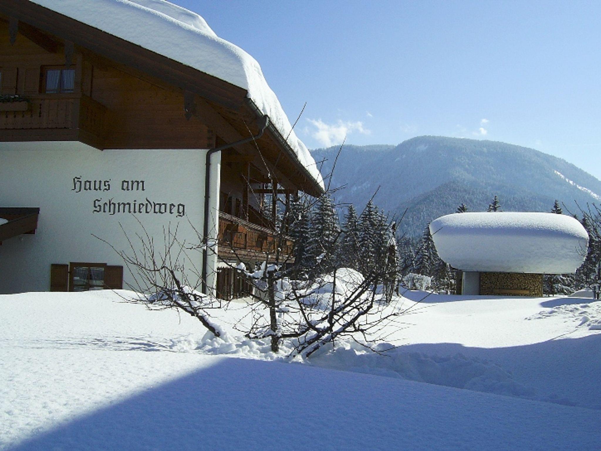 Unser Haus am Schmiedweg befindet sich im schönen Luftkurort Reit im Winkl, im Chiemgau. Das neu erbaute Landhaus wurde sehr komfortabel und mit viel Liebe zum Detail ausgestattet. Es erwarten Sie vier Wohnungen die für ein bis sechs Personen ausreichend Platz bieten. Alle Wohnungen verfügen über einen Balkon von dem Sie freie Ausblicke in die Bergwelt genießen können. Entspannung finden Sie in unserer Sauna. Auch für die Urlaubsbräune ist gesorgt. Hierfür steht Ihnen ein Solarium zur Verfügung. Als Sportfreund können Sie im Fitnessraum ihre Kondition steigern. Für die Tennisliebhaber unter Ihnen haben wir ebenfalls ein besonderes Schmankerl. Unsere Gäste können das nahe Tennis-Camp kostenlos nutzen.