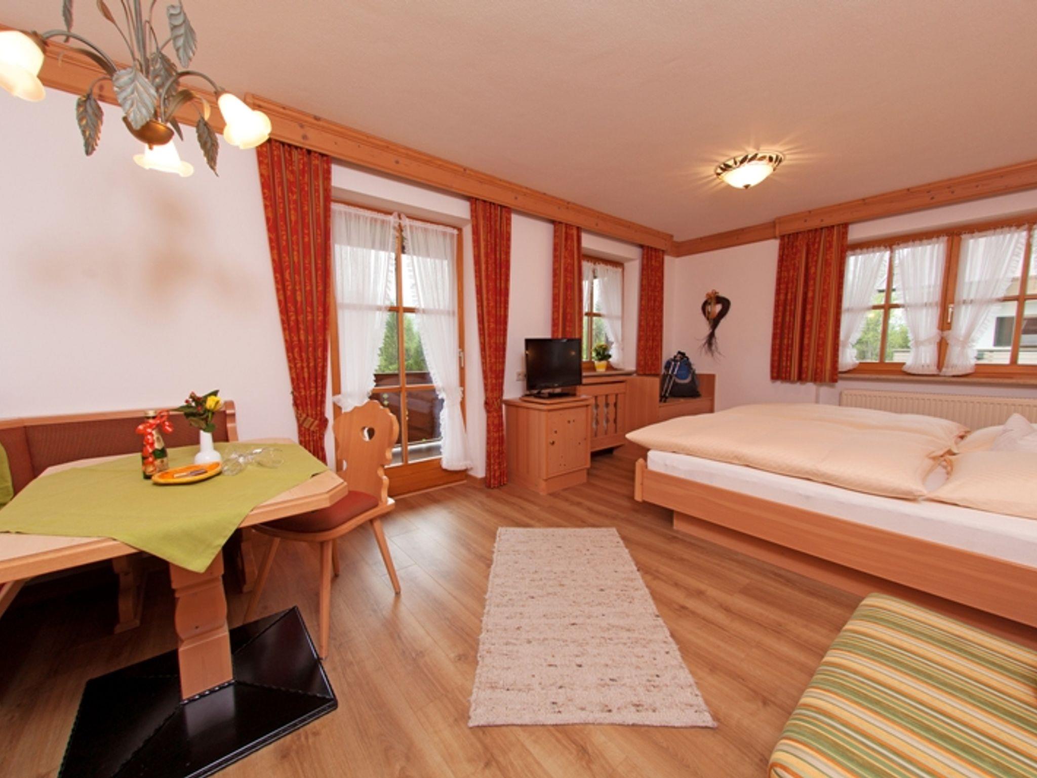Unsere Ein-Raum-Wohnung mit 35 m² bietet Platz für 1-2 Personen. Der Wohn-Schlafraum ist mit einem Doppelbett eingerichtet. Eine gemütliche Sitzecke und ein Sofa-Sessel lädt zum verweilen ein. Die separate Küche mit Mikrowelle befindet sich im Flur. Der große Süd- und Westbalkon bietet einen freien Blick in die wunderschöne Bergwelt. Die Ausstattung wird komplettiert mit Dusche/WC, Kabel-TV und kostenlosem Internet. Einen Grundriss der Wohnung finden Sie auf unserer Homepage.