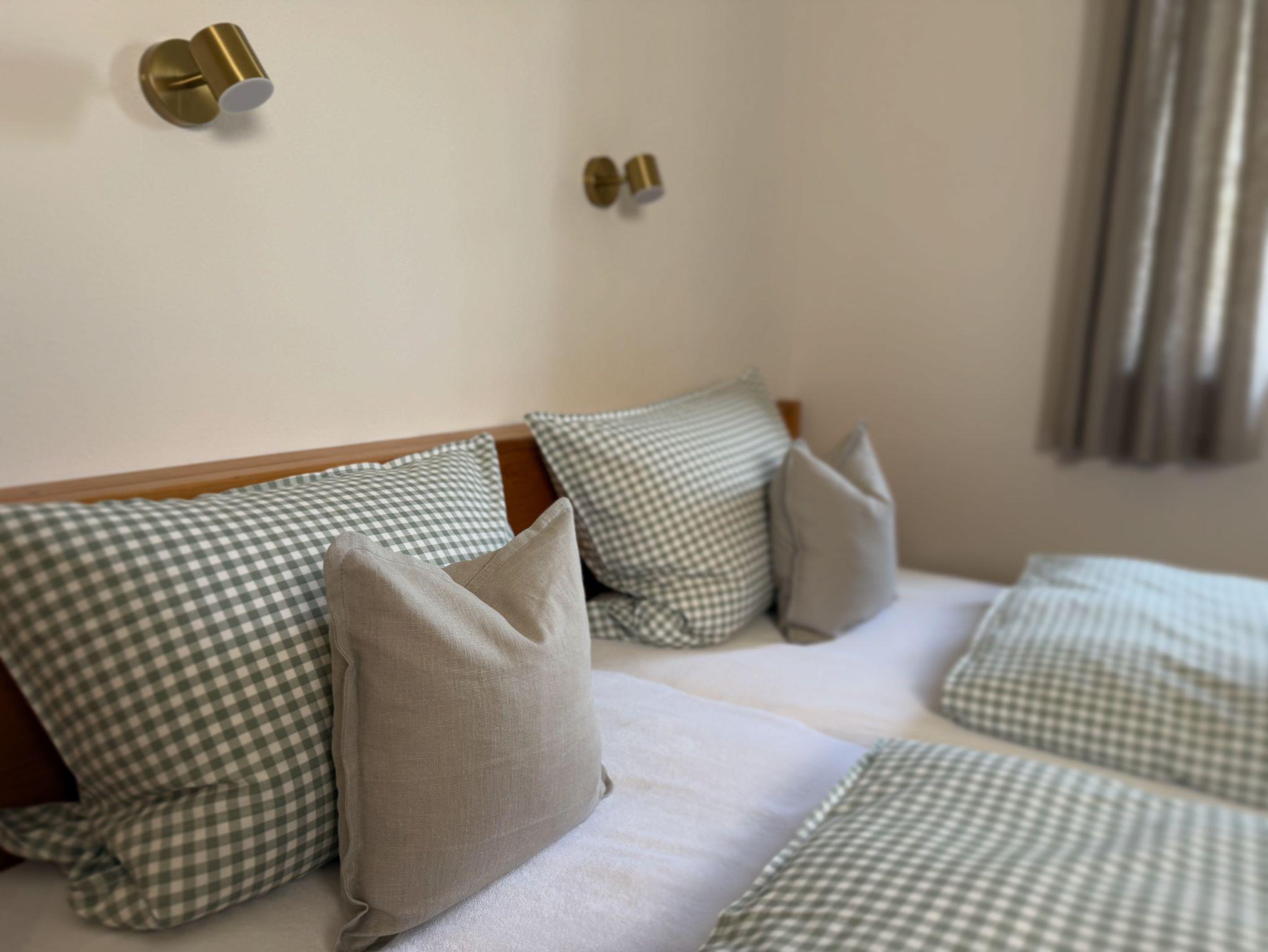 Das stilvolle Apartment (45qm) im modernen Landhausstil besteht aus einem Wohnraum mit Eckbank und Holztisch, Flat-Screen-TV und Schlaf-Sofa (180 x200), einem separaten gemütlichen Schlafzimmer mit Doppelbett (180x200), Schrank, einer kleinen Küchenzeile sowie einem Bad mit Dusche.