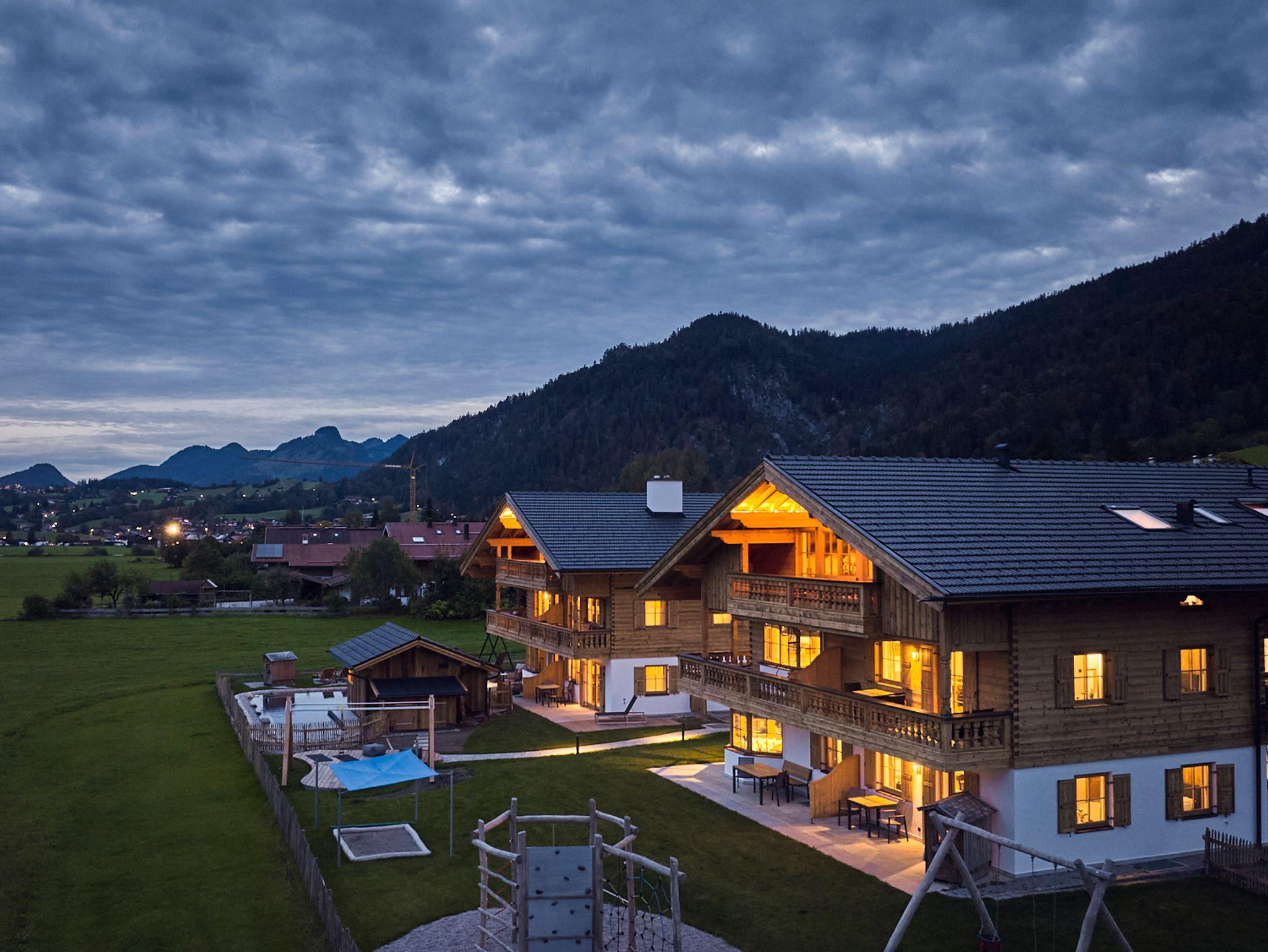 Das Chalet für Aktive im Chiemgau. Faszinierendes Alpstyle-Design, traumhafter Blick auf die Bergwelt – Sport & Fun für den Körper, Erholung & Inspiration für Geist und Seele. Das activechalets six.nine.eight liegt auf 698m Höhe am Eingang zu Reit im Winkl vor dem Kaisergebirge, das auf neue Art und Weise die Freiheit von Apartments mit der Möglichkeit der Aktivität und Design verbindet. Vom Chalet für zwei auf 40m2 bis zum großzügigen Chalet für bis zu 8 Person im Dachgeschoß mit 150m2 mit höchstem Komfort ist für jeden Geschmack was dabei. Im modern eingerichteten Fitnessraum ist auf 50 qm für jeden Aktiven was dabei. Danach entspannen in der Innen- oder Außensaune im 400qm alpspa Wellnesbereich mit Ruheräumen und Naturpool (> 16 Jahre) oder im alpspa family mit den kids und wer mag eine Runde digitale Brettspiele am Fun4Four display. Für die kids steht draußen ein spannendenr Spielplatz bereit. lFür Langeweile bleibt keine Zeit.