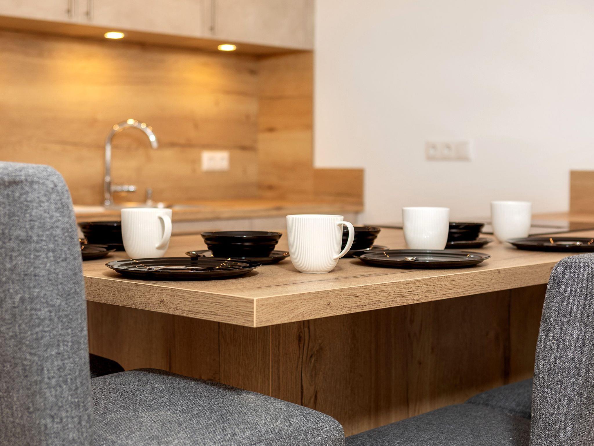 Die voll ausgestattete Küche mit Induktionsherd und Kochfeldabzug macht das Kochen zum Vergnügen. Zusätzliche Annehmlichkeiten wie Fußbodenheizung, ebenerdige Duschen, Waschmaschine + -trockner, Tiefgaragenstellplatz, Aufzug, Skikeller und Fahrradraum garantieren Komfort auf höchstem Niveau.