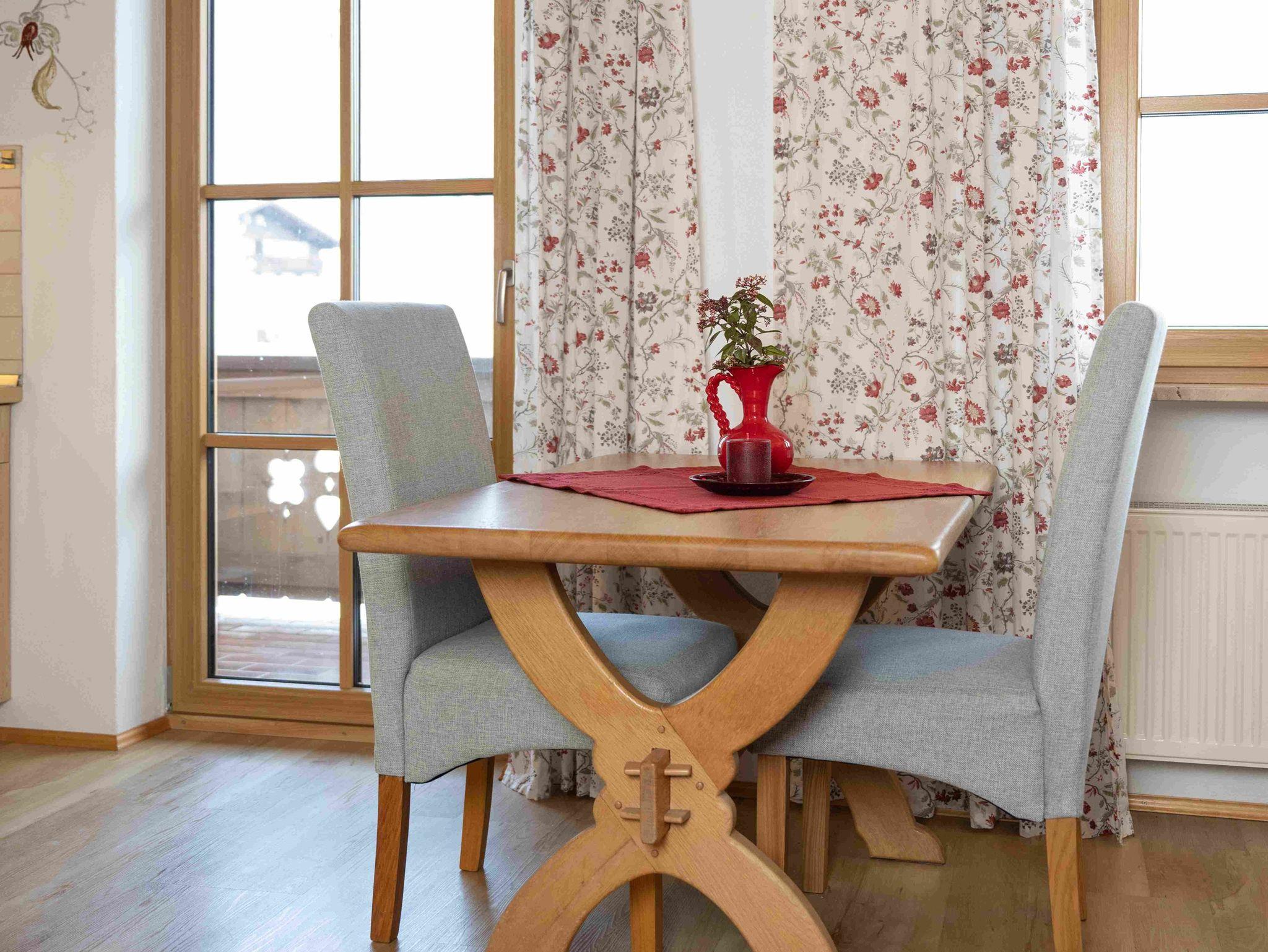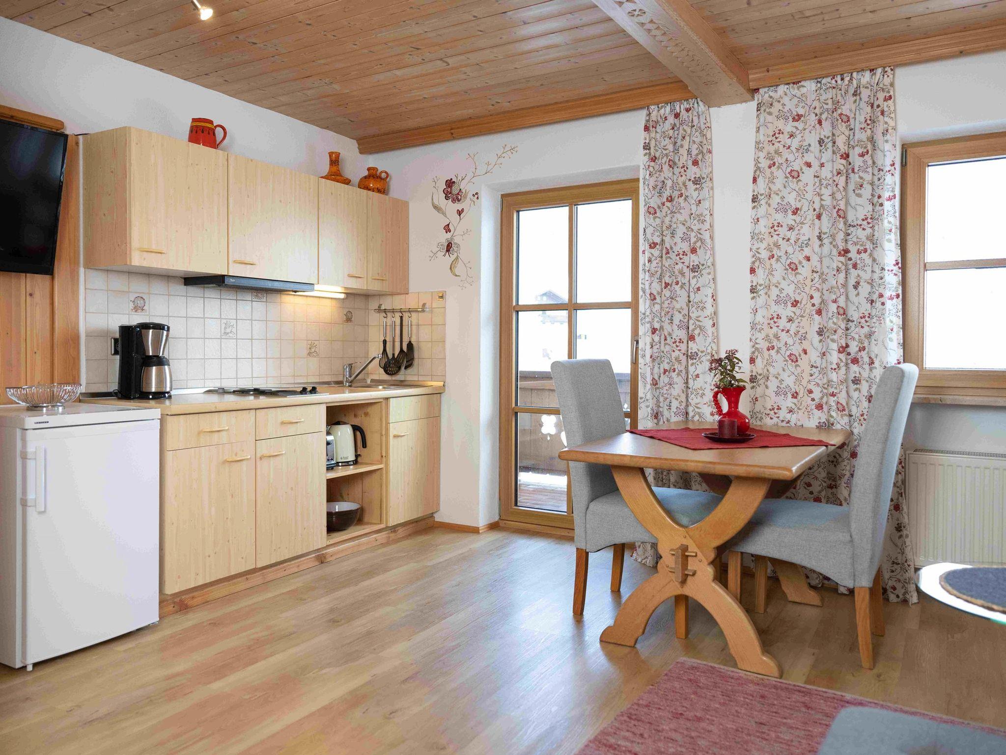Die Ferienwohnung besitzt eine voll eingerichtete Küche, Dusche und WC, einen Wohnraum mit Fernseher, 2 Balkone und einen separaten Schlafraum. Die Wohnung hat freien Bergblick und ist eine Nichtraucherwohnung.