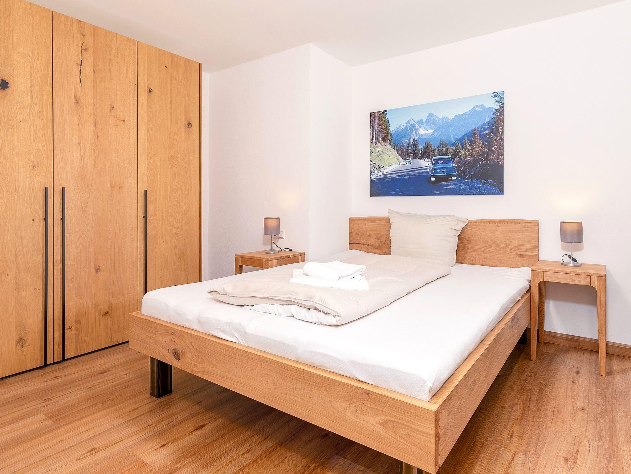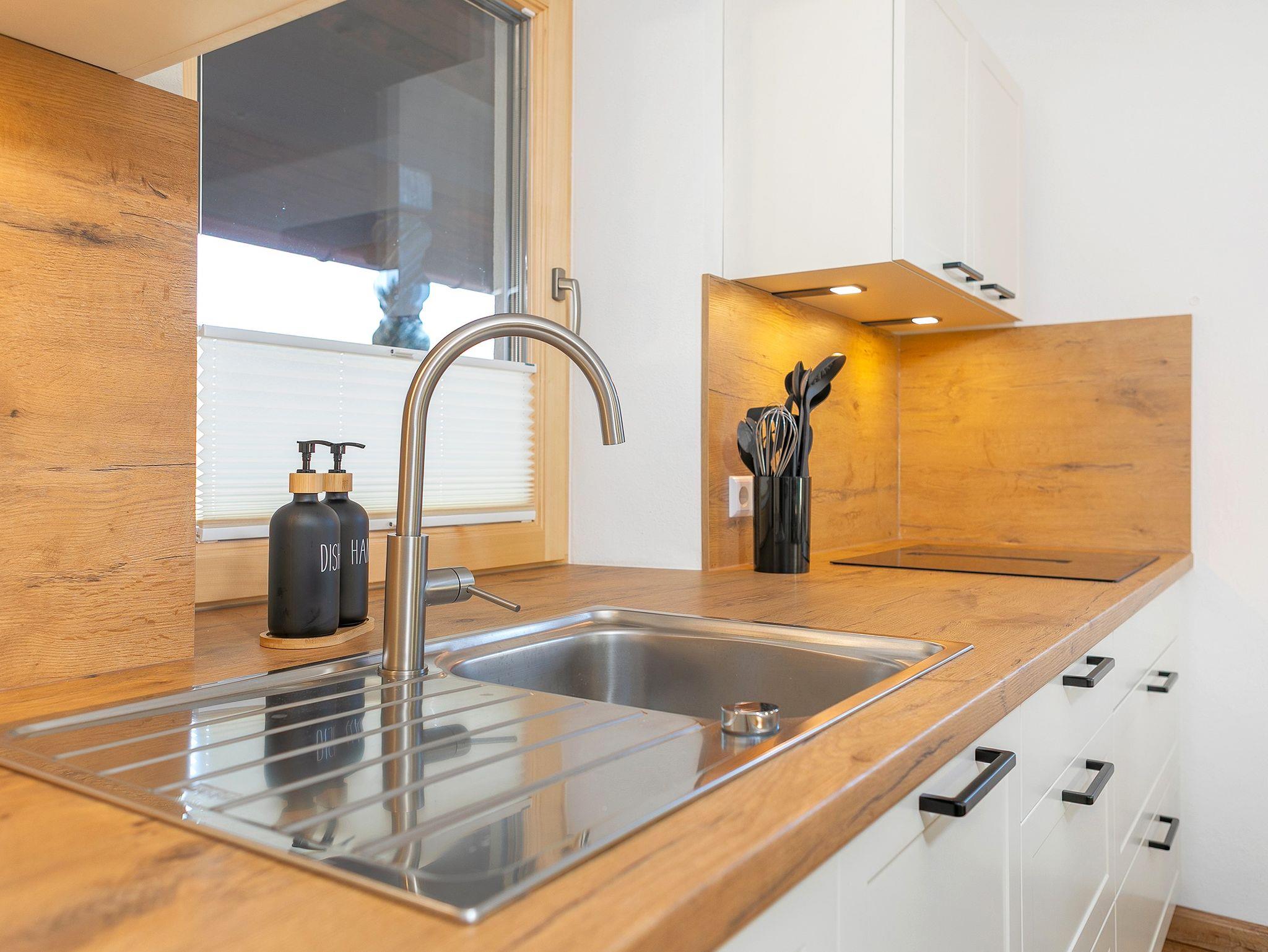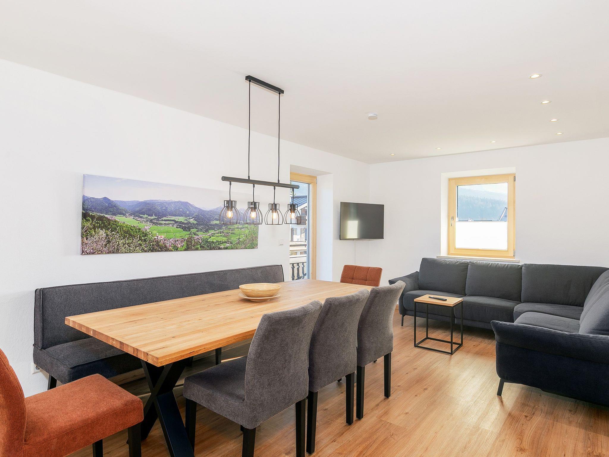 Die Küche ist ein wahres Highlight – voll ausgestattet mit hochwertigen Geräten, darunter ein Induktionsherd und ein Waschtrockner. Durch die vielen Fenster in der Wohnung strömt das natürliche Licht, was eine besonders einladende und warme Atmosphäre schafft. WLAN und ein Smart-TV sorgen für zusätzlichen Komfort, während Sie sich nach einem aktiven Tag in den Bergen entspannen können. Für Ihre Fahrräder oder Skier gibt es praktische Abstellmöglichkeiten.
