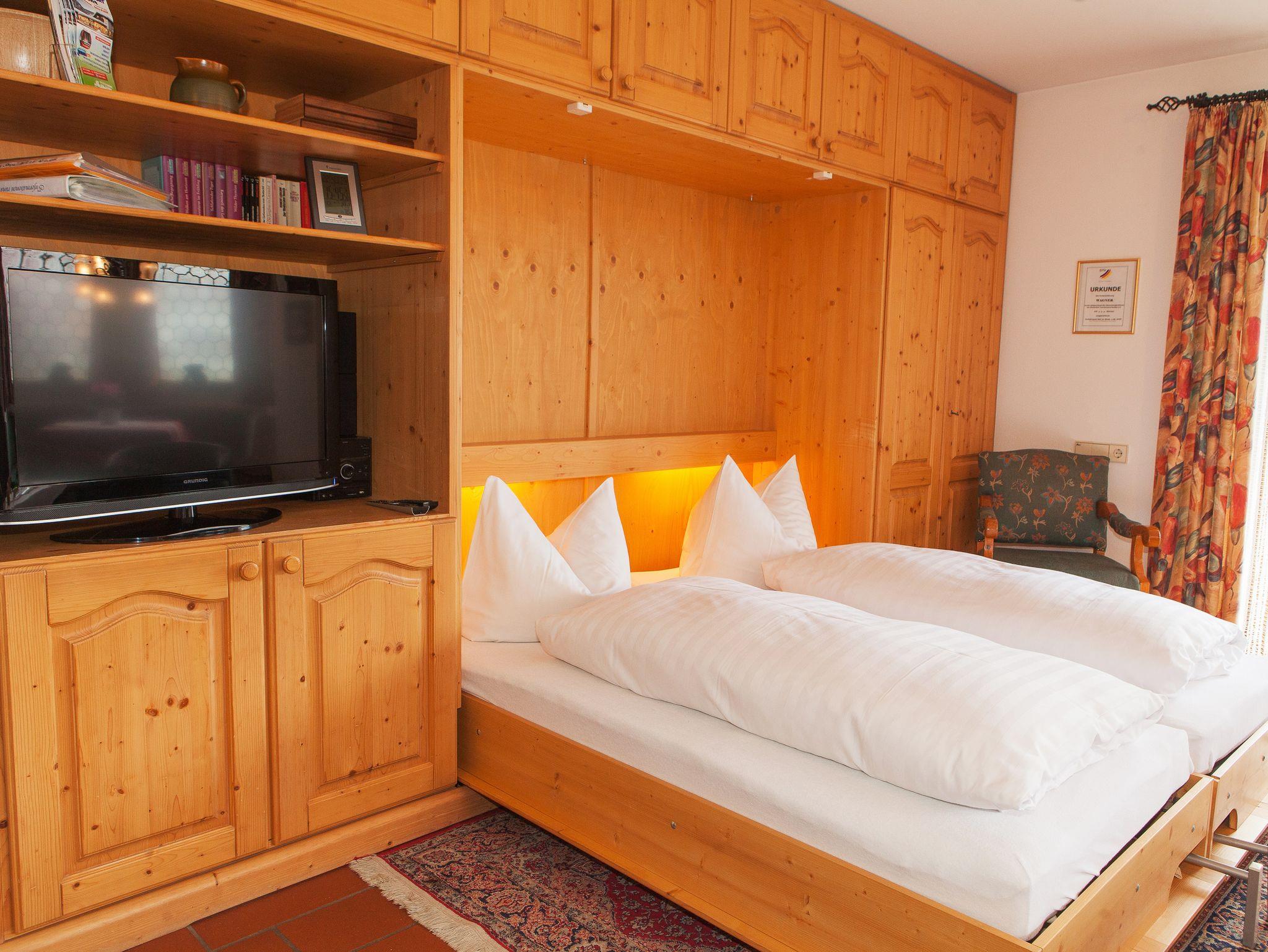 Ausgestattet ist die Wohnung mit hochwertigen Massiv-Holzmöbeln im Bayerischen Stil. TV mit Fernbedienung und Radio gehören ebenfalls dazu.