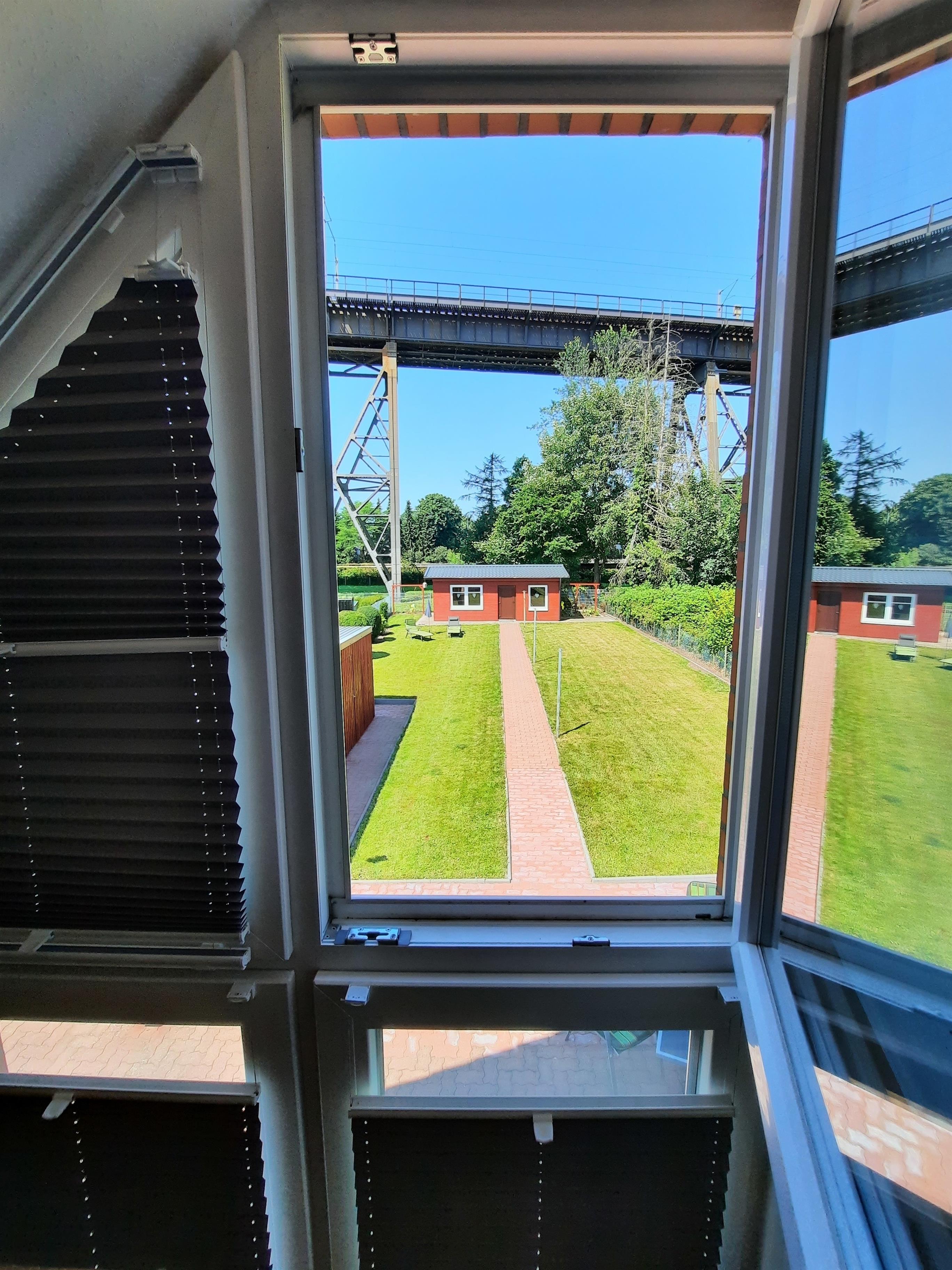 Die Lage des Hauses ist ideal für Gäste, die Rendsburg und die Umgebung zu Fuß oder mit dem Fahrrad erkunden möchten. In nur zehn Gehminuten erreicht man das Stadtzentrum mit Theater, Kino, Museen, Kirchen, Restaurants, Apotheken, Ärzten, Einkaufsmöglichkeiten sowie den Bahnhof und den zentralen Busbahnhof. Von der Terrasse des Ferienhauses bietet sich ein beeindruckender Blick auf die Rendsburger Eisenbahnhochbrücke, eines der bedeutendsten Bauwerke der Stadt. Auch der Nord-Ostsee-Kanal ist in wenigen Minuten erreichbar und lädt zu ausgedehnten Spaziergängen oder Radtouren entlang der Wasserstraße ein. Der Kanal ist ein beliebtes Ziel für Besucher, die Schiffe aus nächster Nähe beobachten oder eine Schifffahrt unternehmen möchten.