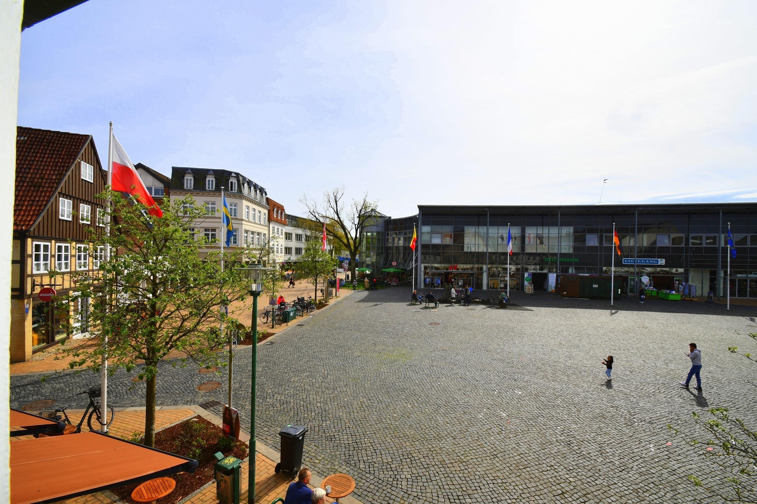 Die Wohnung befindet sich in zentraler Innenstadtlage direkt am Schiffbrückenplatz. Einkaufsmöglichkeiten und Restaurants sind in unmittelbarer Nähe, ebenso wie der Obereider-/Yachthafen, das Schwimmzentrum, die Untereider, Museen und das Theater. Ein Kinderbett steht zur Verfügung.