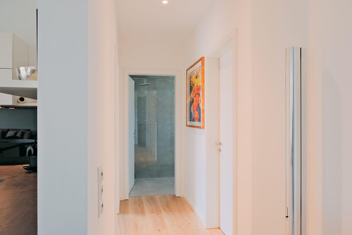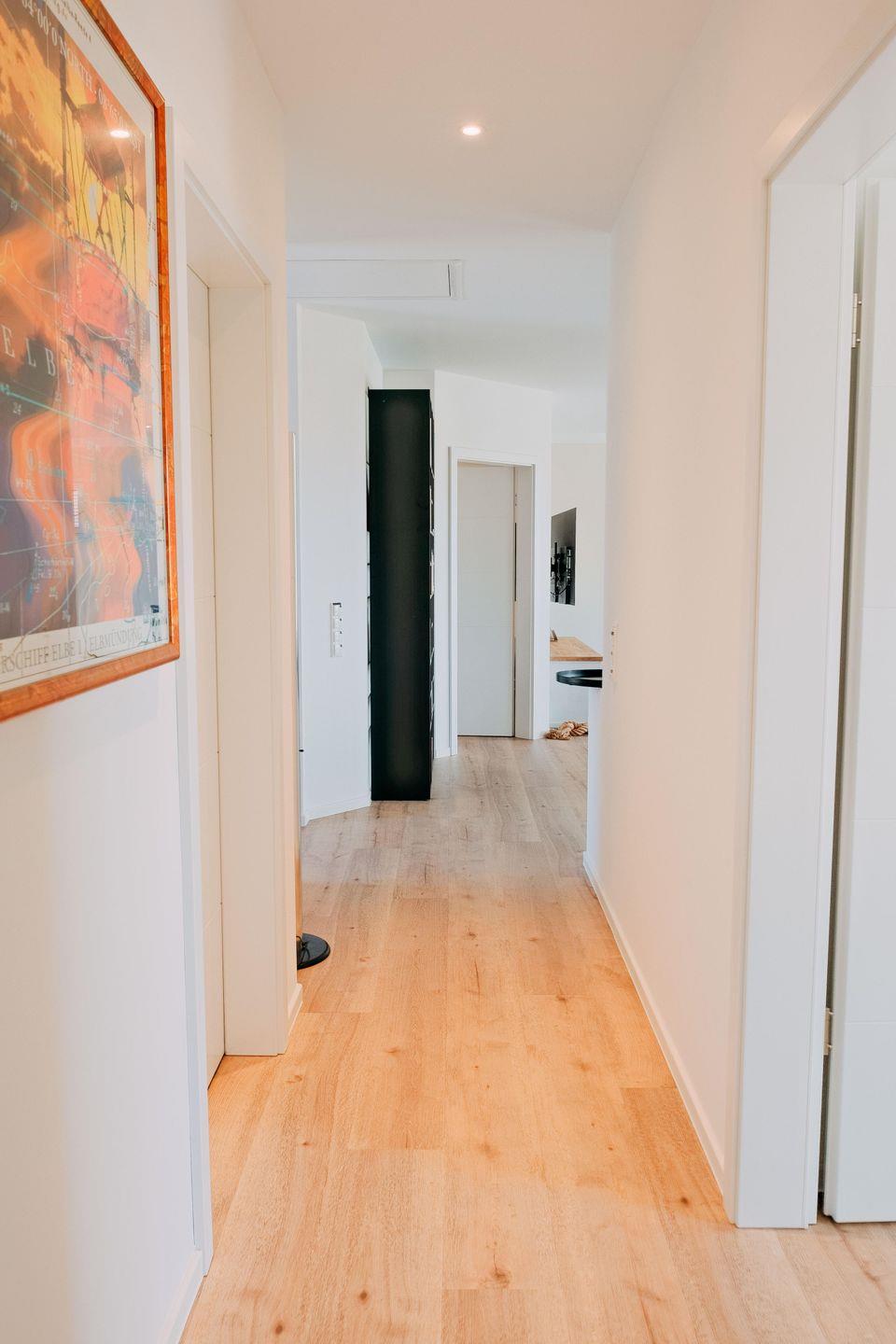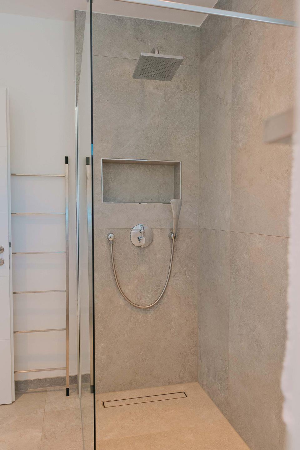 Das moderne Bad überzeugt mit Dusche, Handtuchwärmer und viel Tageslicht. WLAN, Smart-TV, zwei PKW-Stellplätze sowie ein abschließbarer Fahrradschuppen runden den Komfort perfekt ab.