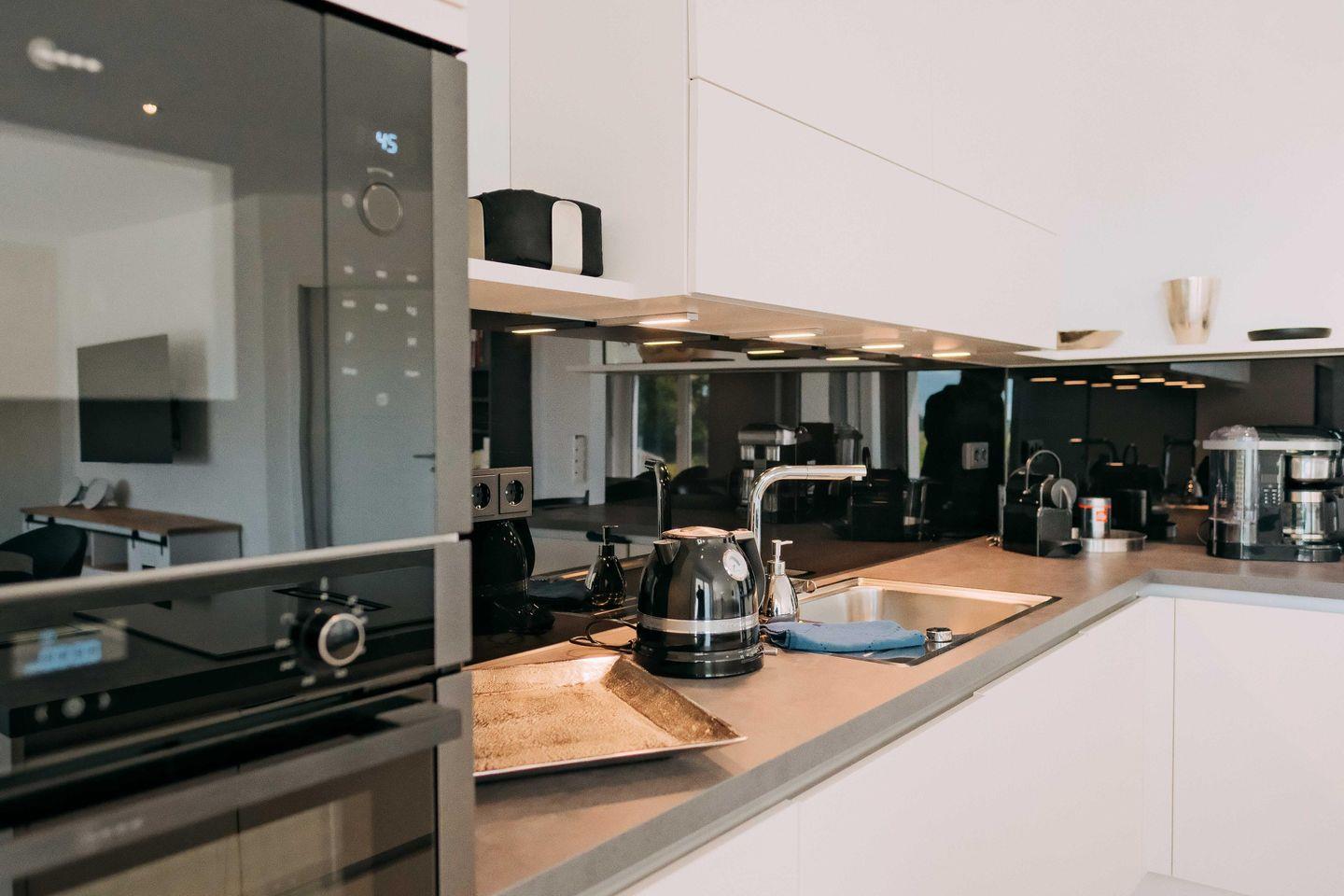 Die moderne, vollständig ausgestattete Küche lässt keine Wünsche offen. Hier finden Sie alles, um leckere Mahlzeiten zuzubereiten – vom Frühstück in der Morgensonne bis zum Abendessen mit regionalen Spezialitäten.