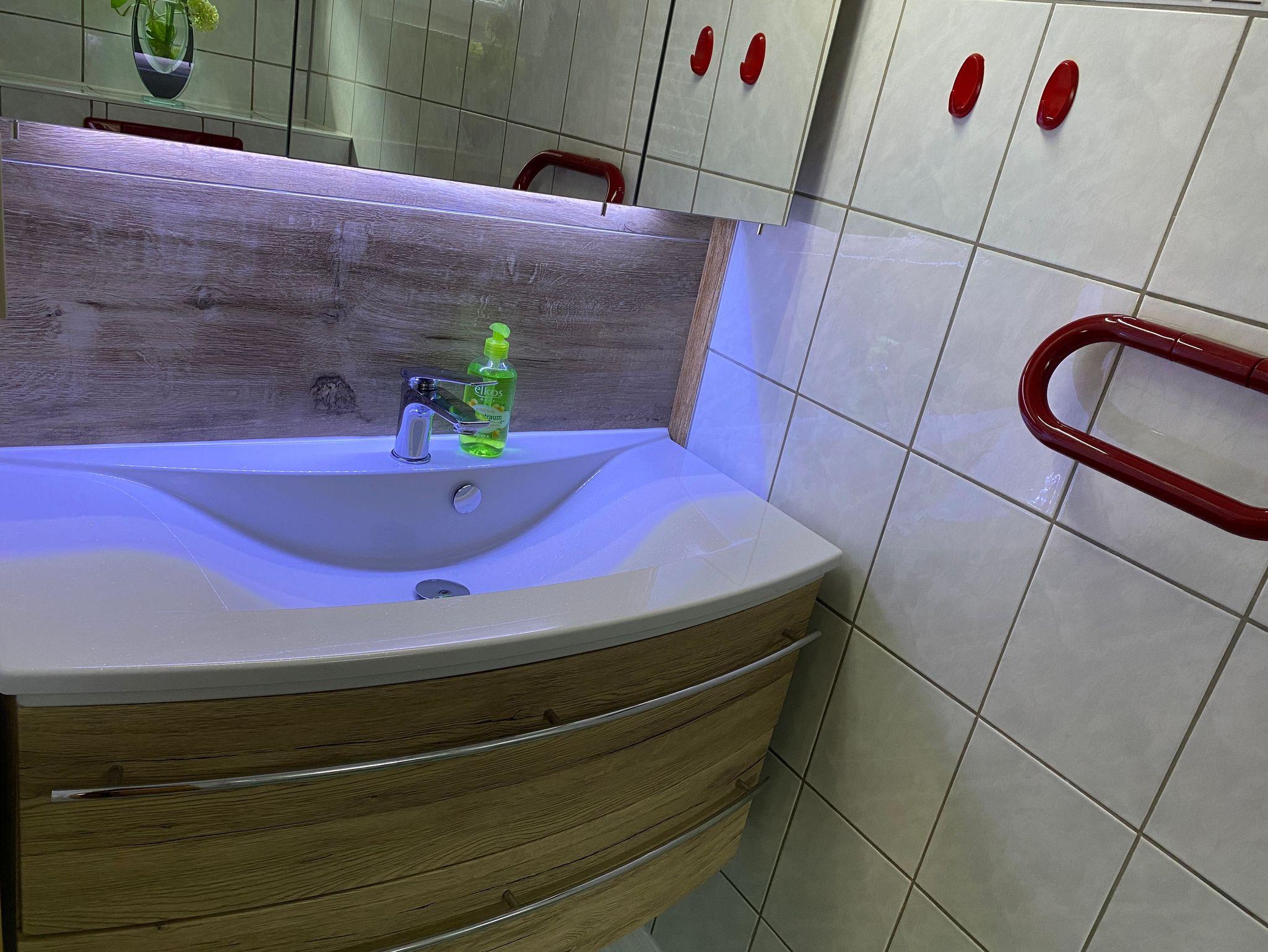 2 Schlafräume je mit Doppelbett (1,80 x 2,00m) und Einzelbett und mit 1x WC mit Waschbecken zu jedem Schlafraum. Zusätzlich ein kleines Duschbad, ebenerdig.