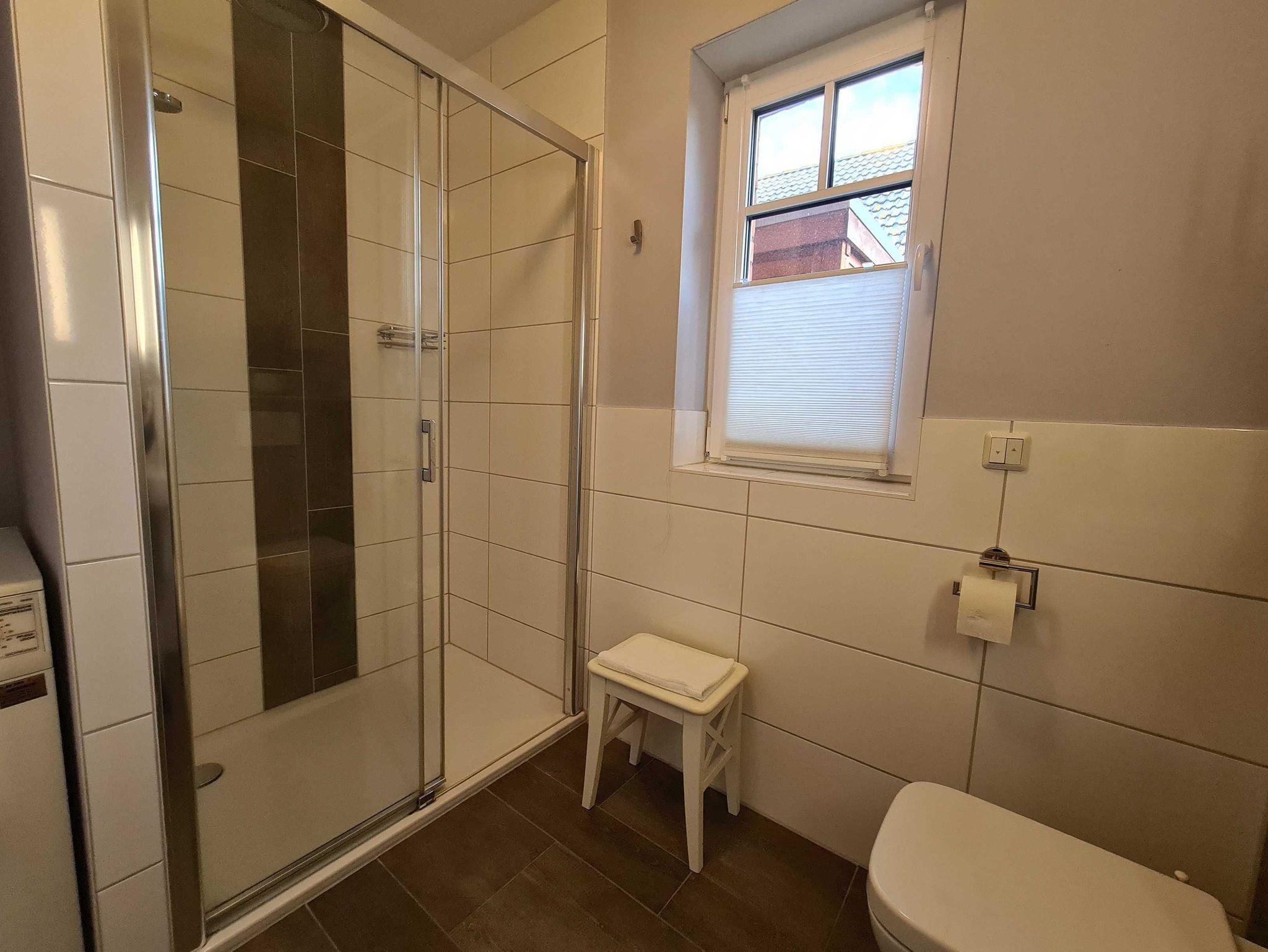 Obergeschoss: 1 Schlafraum mit Doppelbett, 1 Schlafraum mit zwei Einzelbetten (auch zusammenstellbar), Bad/WC mit Badewanne.