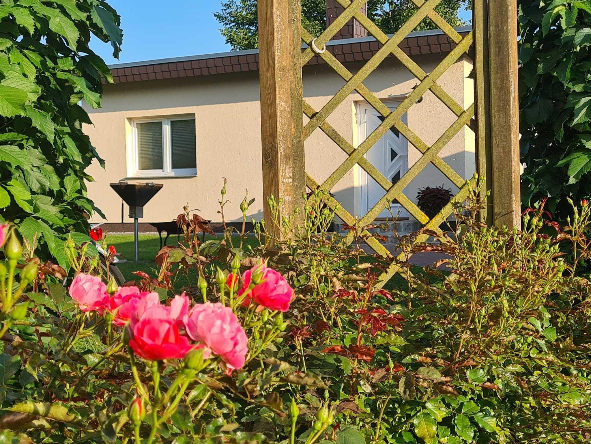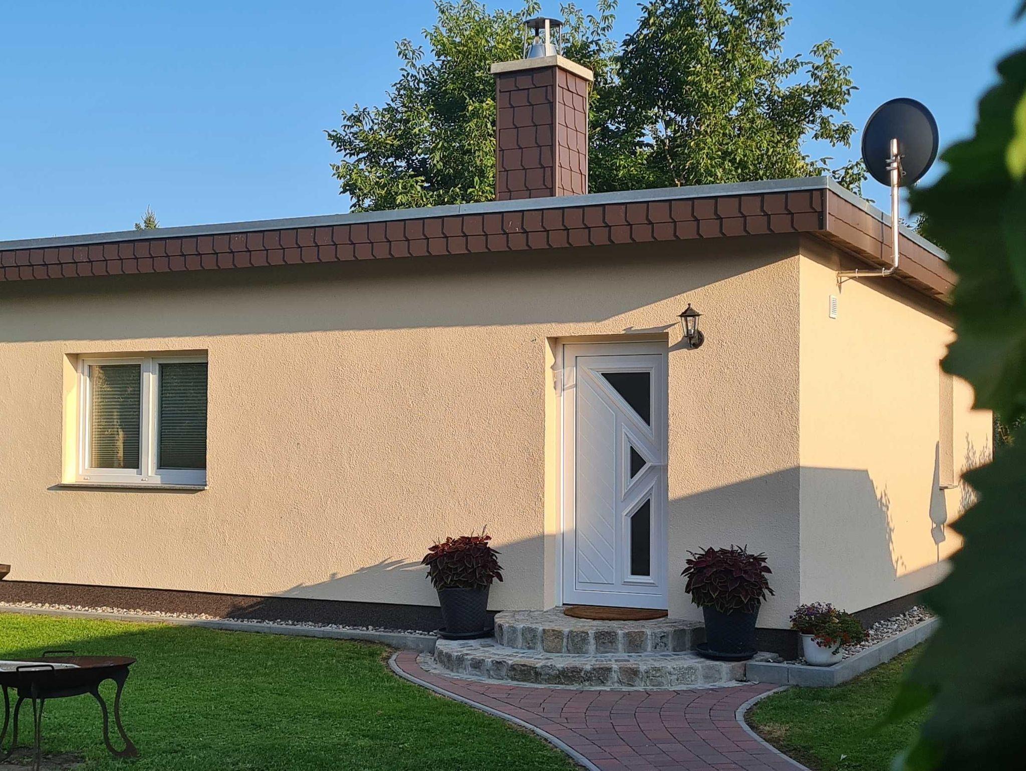 Ferienbungalow mit 48m² Wohnfläche für 2 Personen plus Kind mit mit Kamin, Grill, Feuerschale und Räucherofen im Garten des Privatgrundstücks am Dorfteich. Nichtraucherhaus und tierfrei, außer 2 Eingangsstufen ebenerdig. Die Erstausstattung Bettwäsche und Handtücher sowie Starterset Kaminholz sind im Preis enthalten.