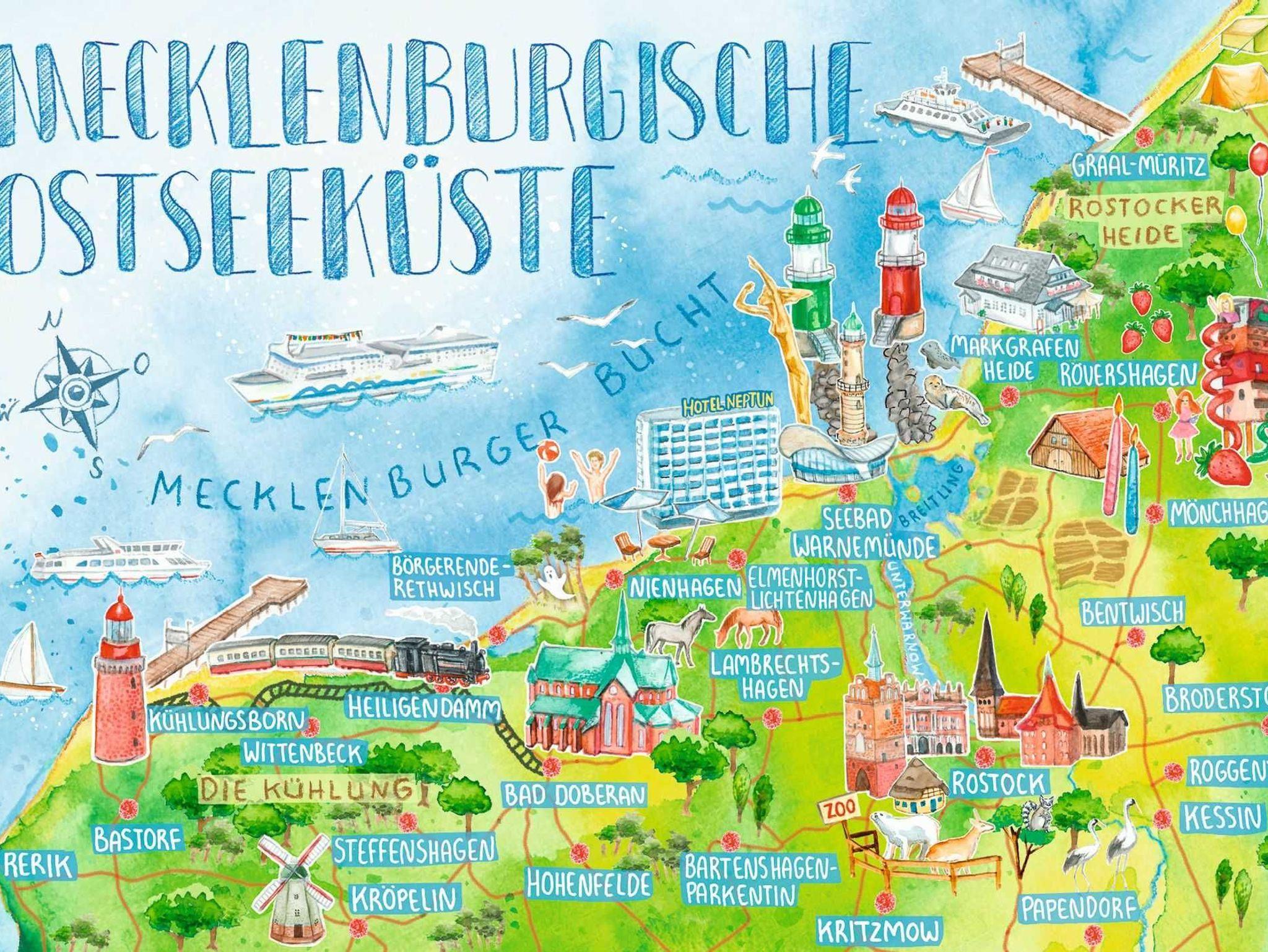 1,5 km zum Naturstrand der Ostseebucht Salzhaff. 3 km zur Ostsee und Ortszentrum von Ostseebad Rerik. Über den Anschluss zum Ostseeküsten-Radweg ist der breite Sandstrand an der Seebrücke mit dem barrierefreien Strandzugang und der Touristinformation in 3000m erreichbar. Rad- und Wanderwege starten direkt ab Unterkunft. Perfekt für Ostseeurlaub für Naturfreunde. Wassersportschulen für Surfen, Segeln und SUP, Boots- und Fahrradverleih - alles im Ostseebad Rerik (3km) - idyllisch kleiner Ferienort zwischen Ostsee und Salzhaff in der Nähe der Hansestädte Rostock und Wismar an der Ostsee. Das ehemalige Fischerdorf Rerik bietet viele ruhige Plätze zum Ausruhen, Strandwandern, Fahrradfahren, Wassersport und Bootsverleih. Wild romantische Steilküste und Badestrand an der Ostsee, der Haffwanderweg und der Ostseeradweg bieten eine abwechslungsreiche Küstenlandschaft.