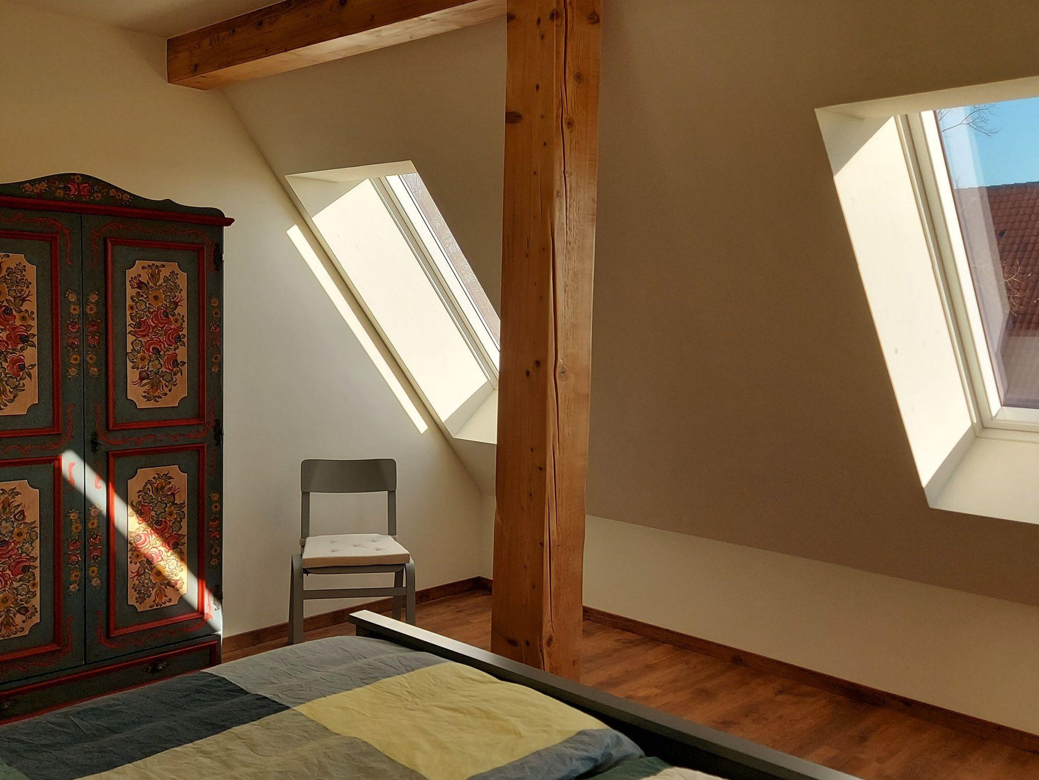 Liebevoll eingerichtete 1- und 2-Raum-Ferienwohnungen im Obergeschoss der modernisierten Scheune bieten nicht nur modernen Komfort, sondern auch einen schönen Wiesenblick. Die Möglichkeit, auf der Loggia, dem Balkon oder der Hofterrasse zu entspannen, rundet das Urlaubstag perfekt ab.
