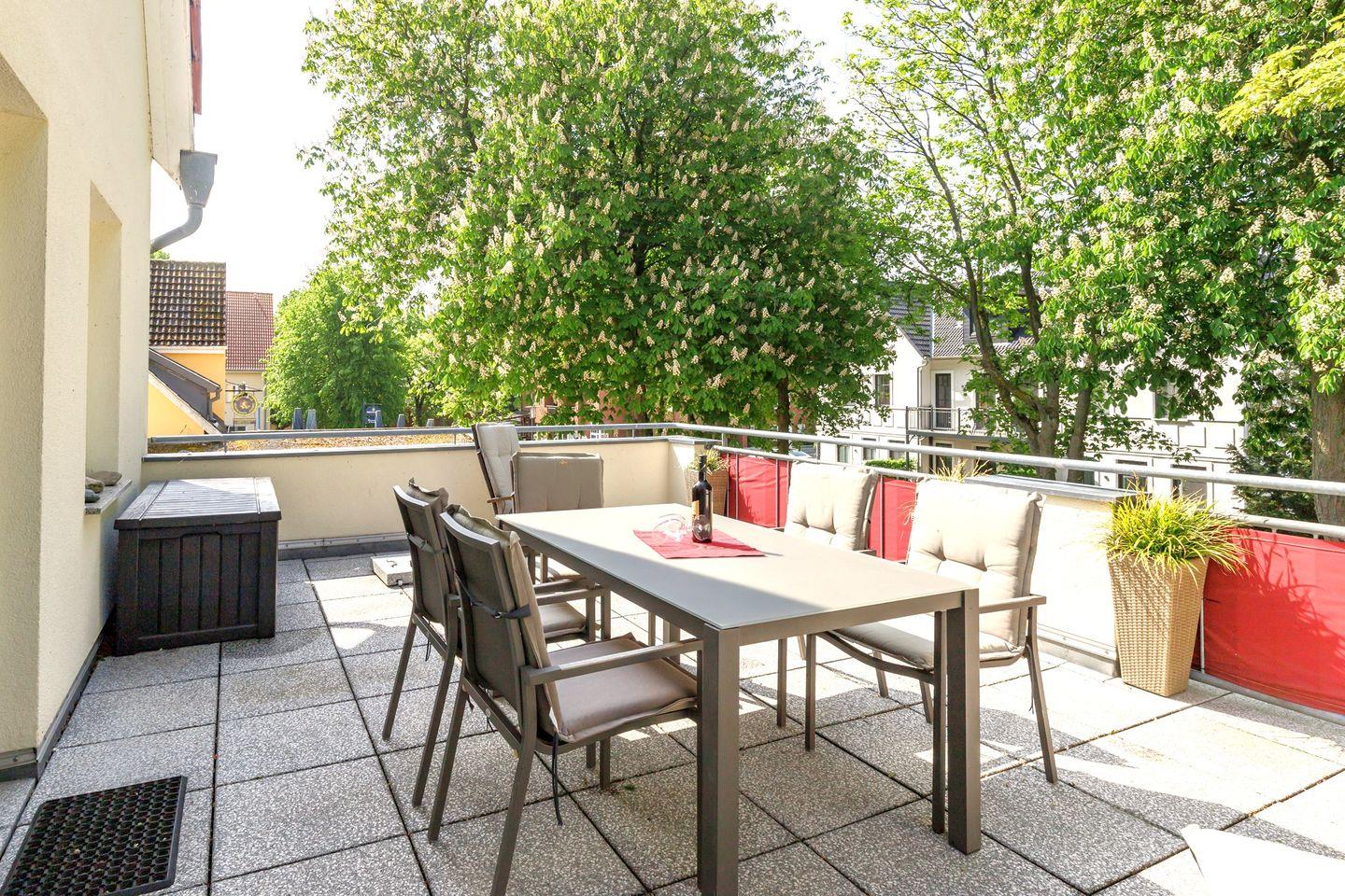 Die Ferienwohnung 5 in Villa Elsa ist eine sehr schick und gemütlich eingerichtete 3-Raum-Wohnung im 1. OG (67 qm) mit einem 28 qm großen, terrassenartigen Südwestbalkon.