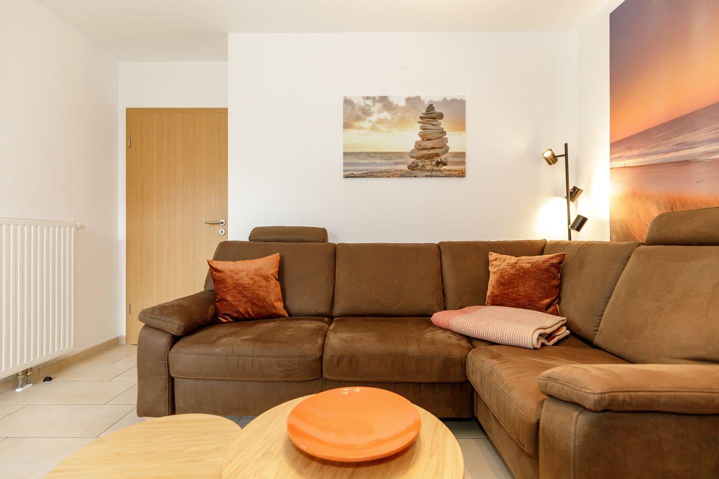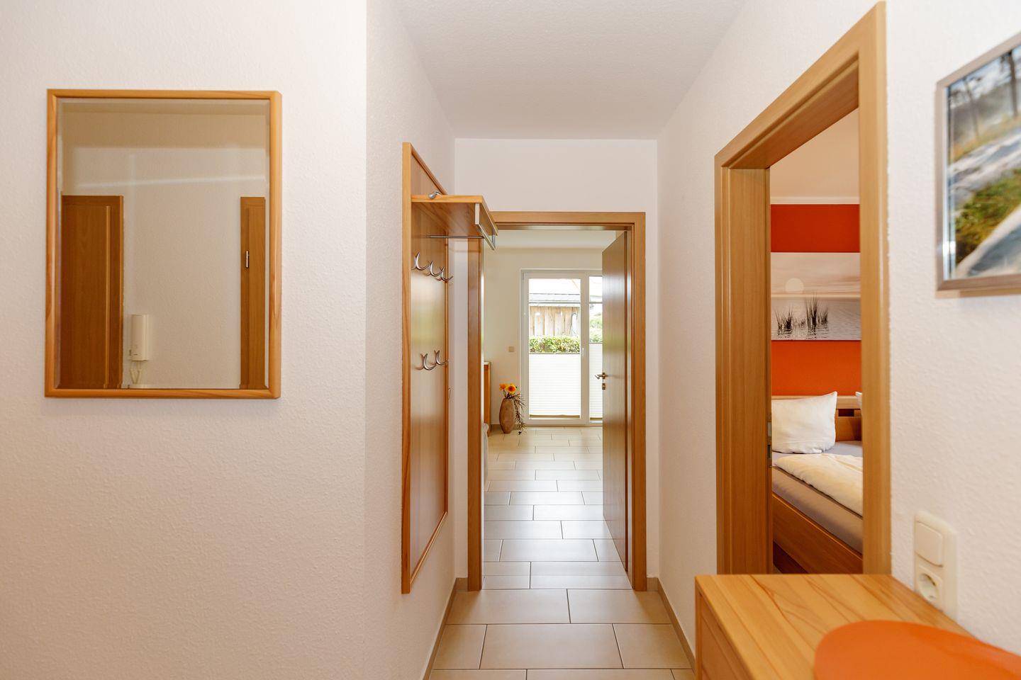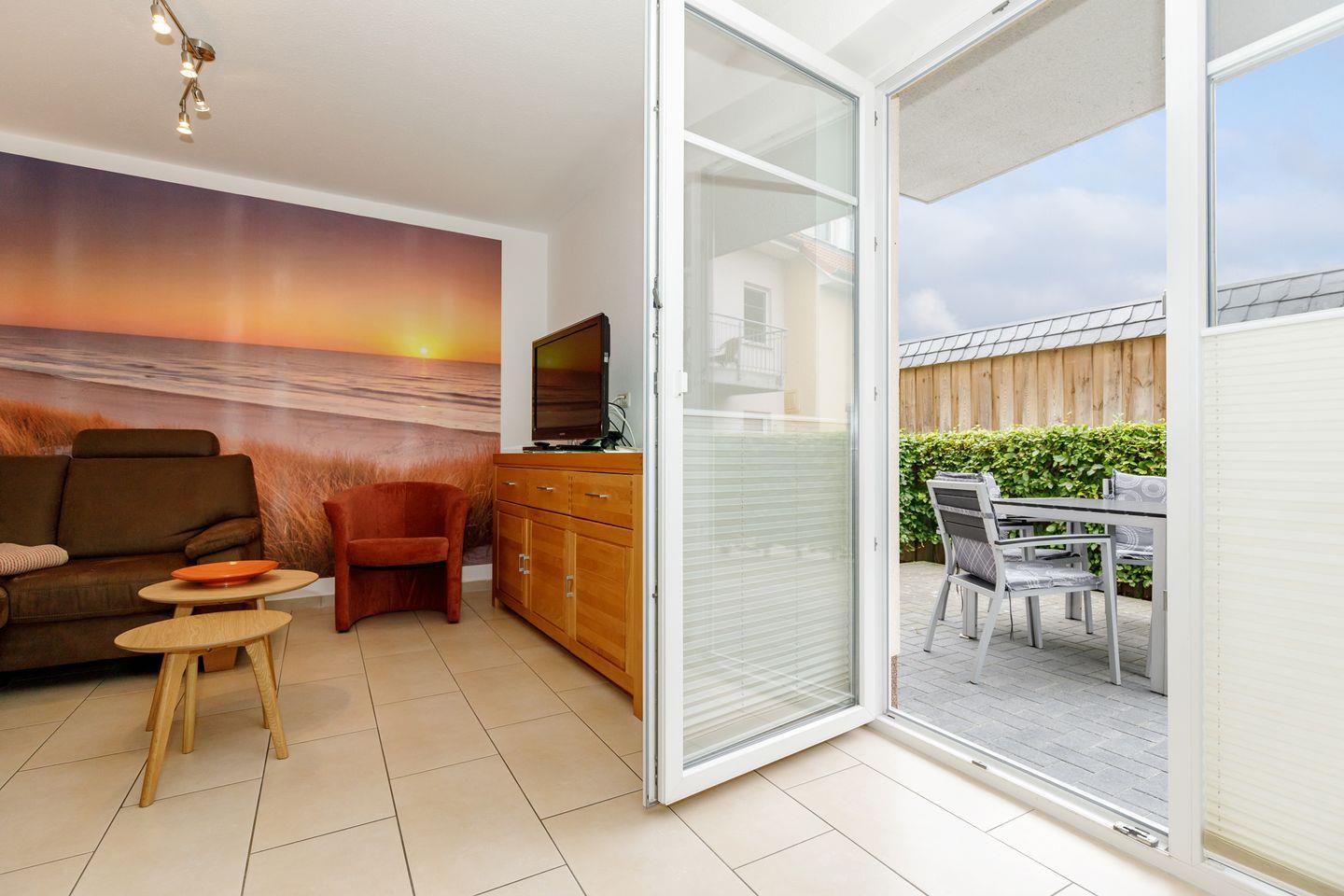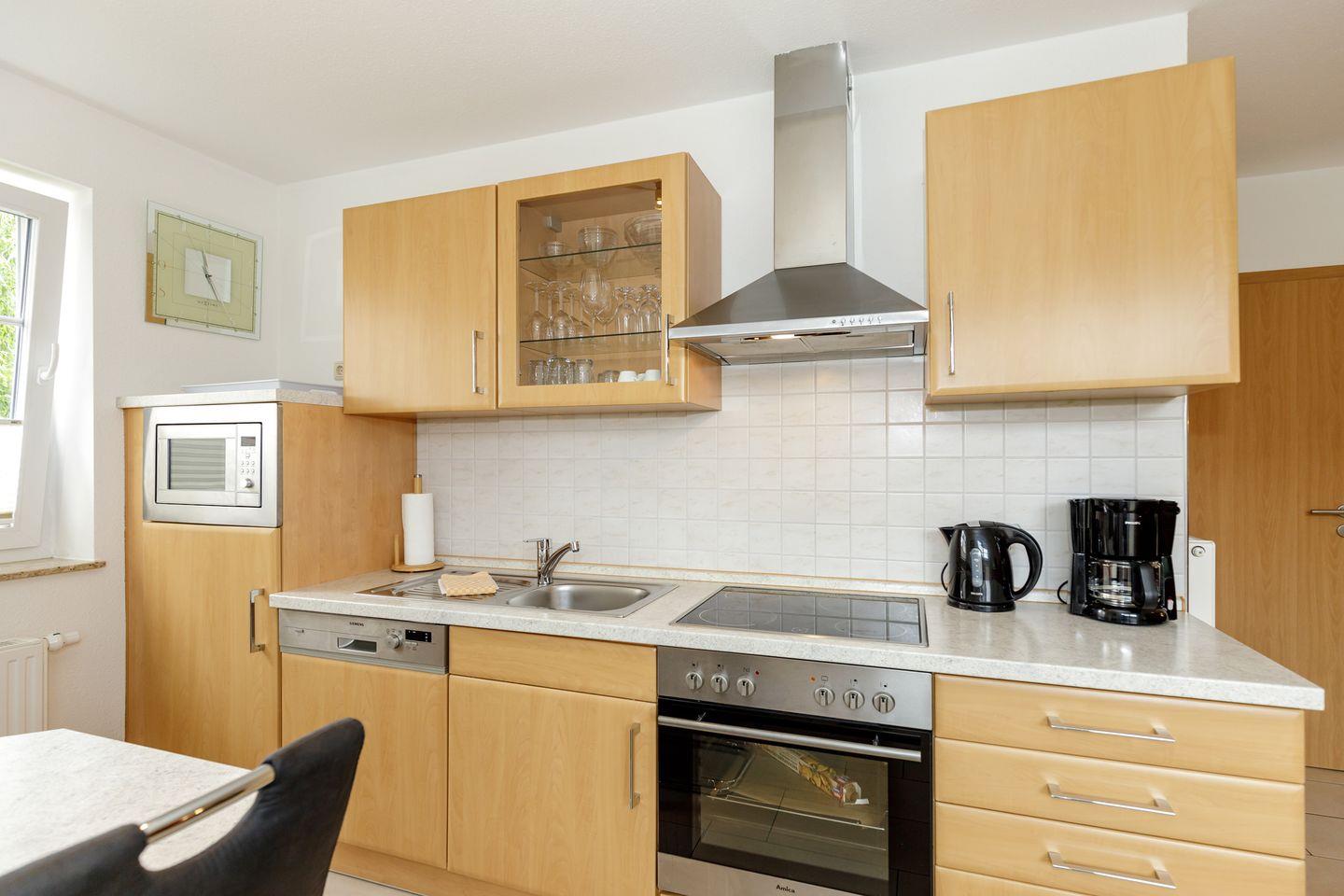 Die Villa Rerik Haus 1 Whg. 1 bietet auf 52 m² komfortablen Wohnraum für bis zu vier Personen in einem ansprechenden Ambiente. Die großzügig geschnittene Unterkunft befindet sich im Erdgeschoss und erstreckt sich über zwei Etagen, was ein angenehmes Wohngefühl vermittelt. Neben zwei separaten Schlafzimmern verfügt die Wohnung über einen hellen Wohnbereich mit einer gemütlichen Sofaecke, die mit Fliesenboden ausgelegt ist, und eine offen zum Wohnzimmer gestaltete Küche. Diese ist hochwertig ausgestattet und lässt mit Herd, Backofen, Spülmaschine, Mikrowelle, Wasserkocher, Kaffeemaschine und Toaster keine Wünsche offen. Ein Esstisch und ausreichend Küchenutensilien, Geschirr und Besteck sind selbstverständlich vorhanden. Für Ihren Komfort stehen Ihnen weiterhin ein Kühlschrank mit integriertem Gefrierfach und ein Staubsauger zur Verfügung.