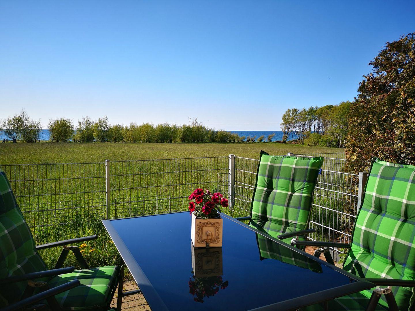 Gemütliche Wohnung für 2 - 3 Personen mit Meerblick und umzäunter Terrasse für Ihren vierbeinigen Freund.