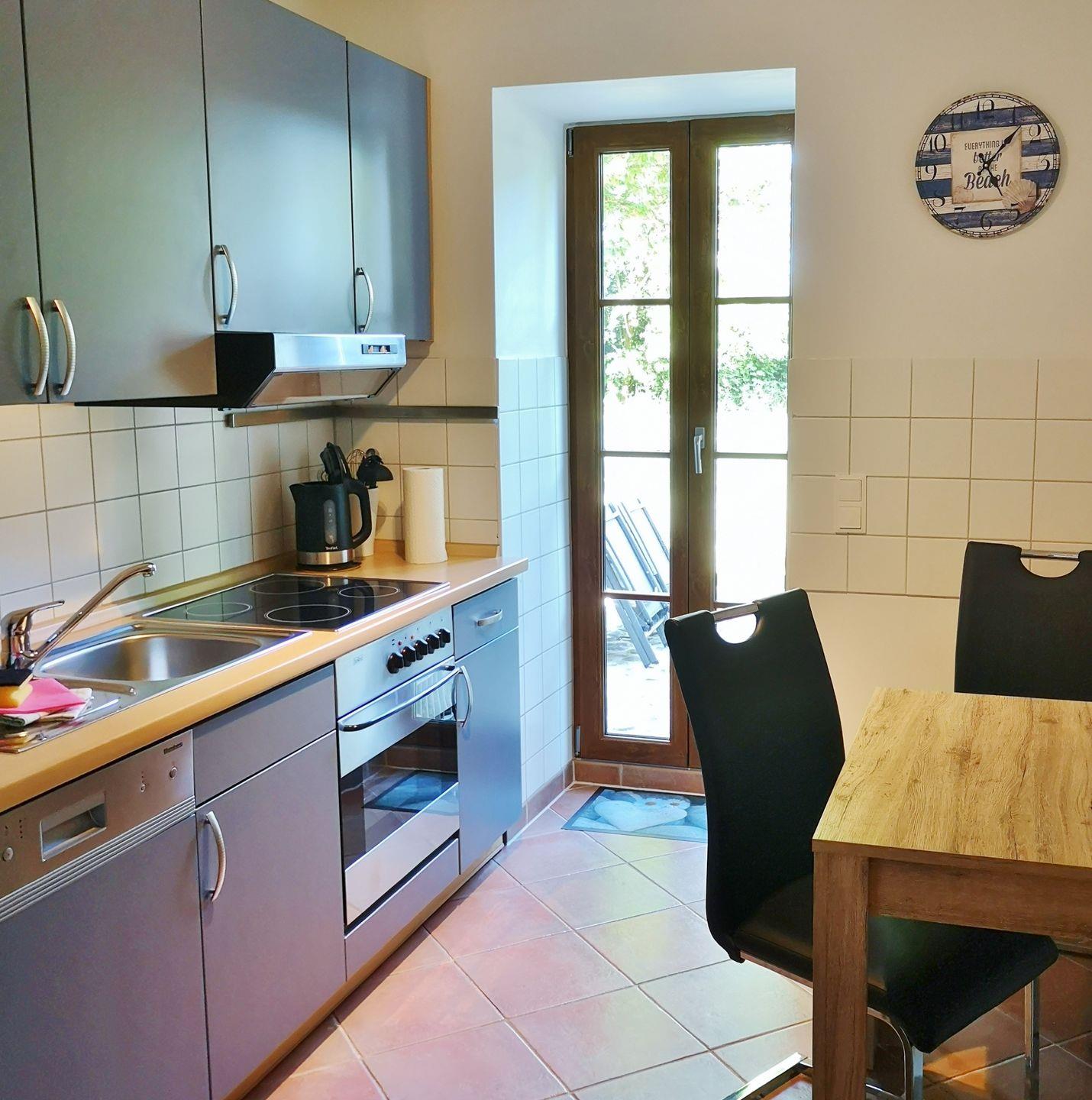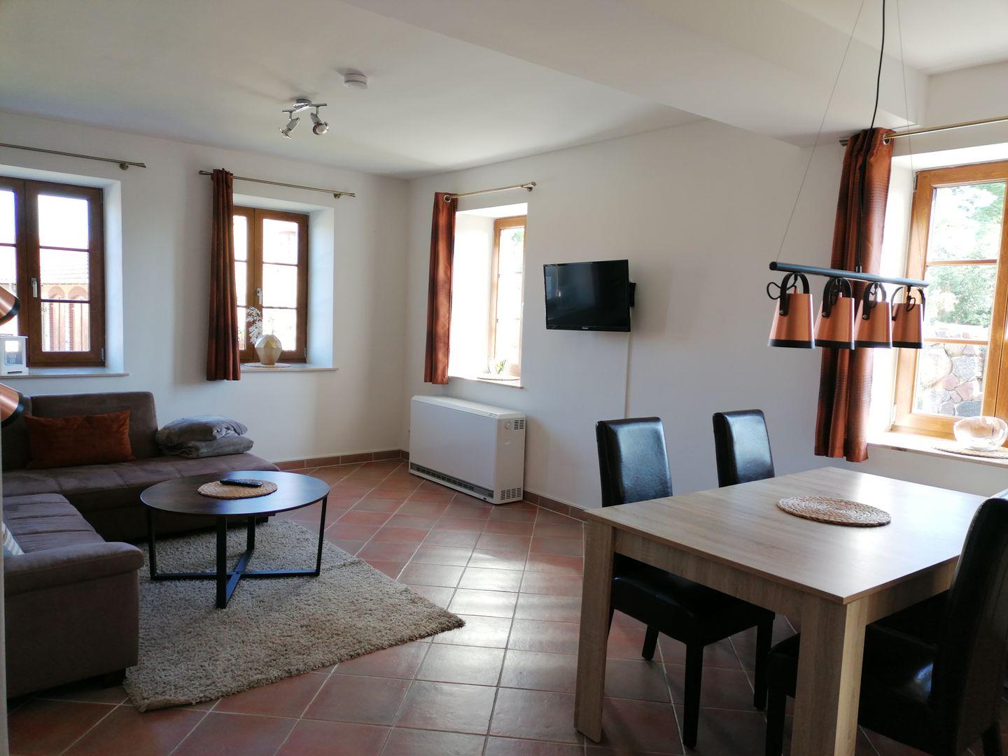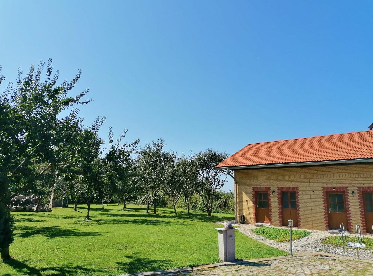 Genießen Sie Ihren Urlaub in der großzügigen, modernen und wunderschönen 3- Raum Ferienwohnung „Seeperle“. Die Nähe zur Ostsee bietet zu jeder Jahreszeit zahlreiche Möglichkeiten der Erholung. Restauriert im ländlichen Still mit vielen Fenstern schaffen ein lichtdurchflutetes Raumerlebnis. Die Wohnung ist durchgehend gefliest. Das Bad mit Dusche und Eckbadewanne ist zudem mit einer Fußbodenheizung ausgestattet. Das große Ecksofa im Wohnzimmer kann bei Bedarf zum Schlafsofa (160×200) ausgezogen werden. Die vollausgestattete Küche mit Backofen, Ceranfeld und Spülmaschine lädt zum kochen Ihrer Lieblingsgerichte ein. Von hier aus gelangen Sie auch auf die umzäunte Terrasse mit Blick in den großen Garten. Hier können Sie am Tag ungestört in der Sonne ein schönes Buch lesen und am Abend etwas Leckeres grillen. Zur Ausstattung zählen 2 Flachbildfernseher, Waschmaschine, Grillkamin, Gartenmöbel und Sonnenschirm.