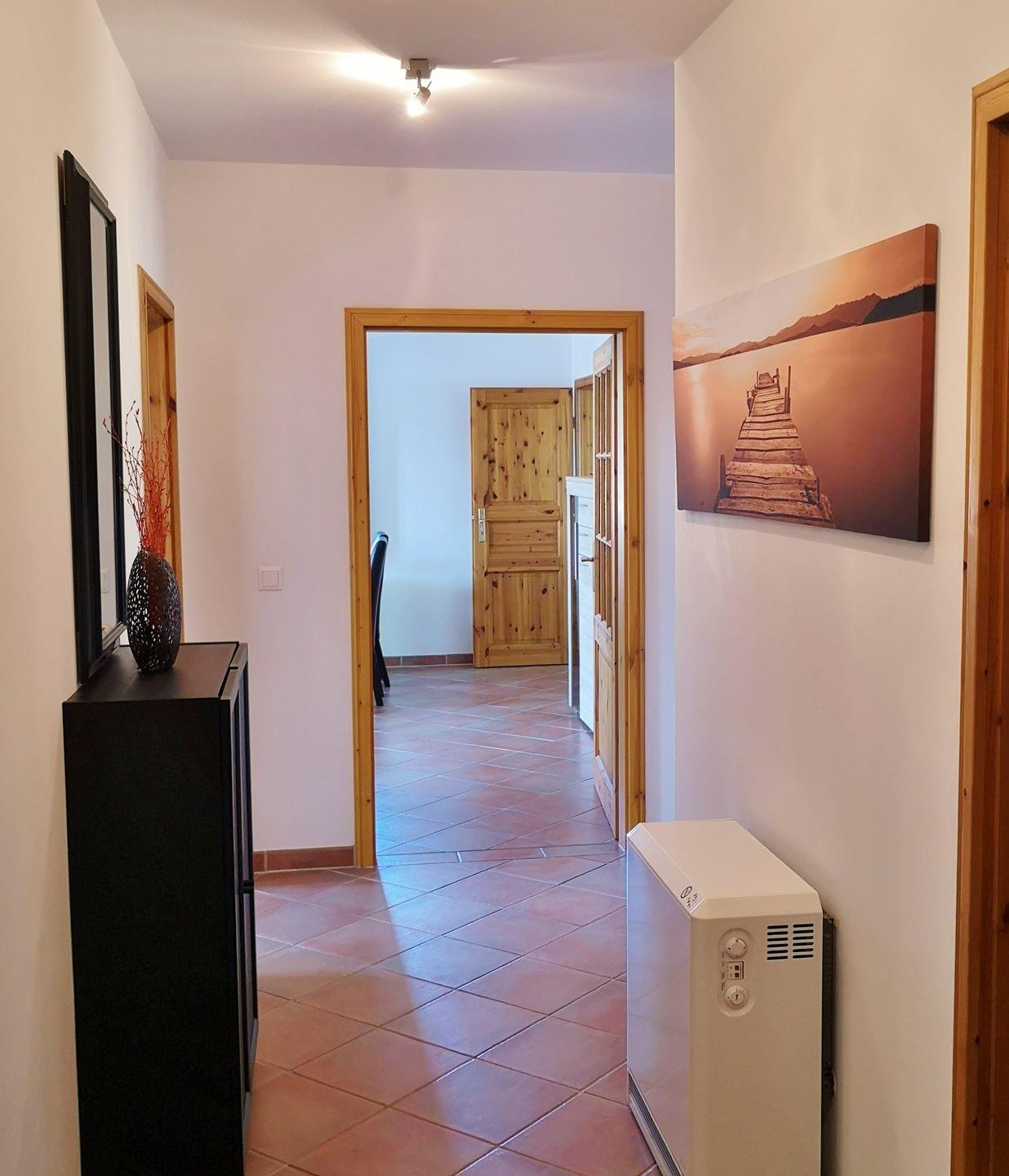 Alle Zimmer befinden sich auf einer Ebene im Erdgeschoss. Hier erwartet Sie der Wohn-Essbereich mit einer Eckcouch und Flachbildfernseher, angrenzend ein Kinderzimmer mit Einzebett. Ein großes Schlafzimmer mit einem Doppelbett und einem Fernseher, ein Bad mit Dusche und Eckbadewanne, sowie einer Waschmaschine und eine vollausgestattete Küche mit Zugang zur großen Terrasse, lassen keine Wünsche offen..