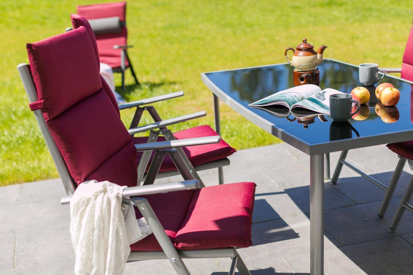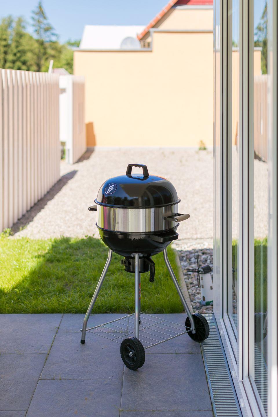 Eine der größten Attraktionen dieser Ferienwohnung ist die großzügige Terrasse, die mit Gartenmöbeln, Sonnenliegen und einem Grill ausgestattet ist. Hier können Sie die warmen Sonnentage genießen oder abends unter dem Sternenhimmel entspannen. Der Blick auf die umliegende Landschaft und den Garten sorgt für ein Gefühl der Ruhe und Abgeschiedenheit.