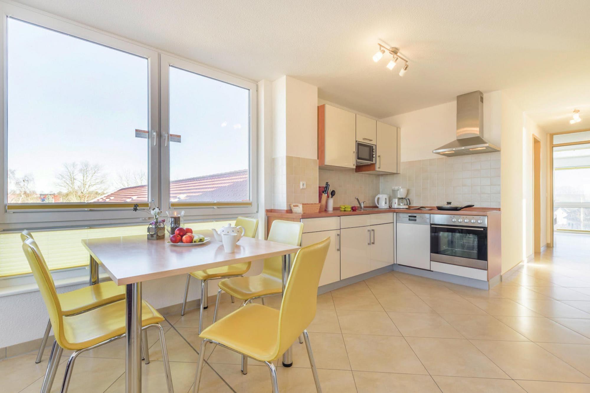 Kun 600 meter adskiller din rummelige og moderne ferielejlighed med WiFi fra de fine sandstrande ved Østersøen. Elskere af den maritime livsstil vil finde det, de leder efter her - i stuen og i et af soveværelserne er en væg og endda en del af loftet fuldstændig glaseret og giver dig en uhindret udsigt over Salzhaff. Søde drømme er garanteret i det største af soveværelserne: Herfra kan du endda se himlen fra din seng! Og der er kun 50 meter til Haffpromenaden. Åbn dørene til din franske altan og tag en dyb indånding: Den friske Østersøluft er virkelig en fornøjelse for alle sanser. Lejligheden er beliggende på toppen af et familievenligt feriekompleks med legeplads og trampoliner. Rerik ligger på den nordøstlige side af Salzhaffes, en del af Wismar-bugten mellem fastlandet og Wustrow-halvøen. Ostseebad er ekstremt familievenligt: Der er eventyrlegepladser og et farverigt arrangementsprogram for unge og gamle. Dykker- og ridekurser kan bookes på stedet, cykling og & raquo; økomobil & laquo; er til leje. Den historiske bykerne omkring kirken er bevaret, og også her er der masser af mad: frisk eller nyrøget fisk fås hver dag direkte fra de lokale fiskere. Detaljer: WiFi Aktiviteter i nærheden: Endeløse strande og kyster omkring Rerik får solbadere og vandentusiaster til at banke hurtigere, men aktive feriegæster får også noget for pengene her: På Salzhaff kan du ro, sejle eller tage en vandcykel. Lagunen byder også på ideelle forhold for begyndere surfere, mens eksperter foretrækker den mere krævende Østersø med boardet. En sejltur fra lagunen rundt om Wustrow-halvøen lover masser af sjov for unge og gamle. De, der foretrækker at holde tørre fødder, kan tage på cykelture, gåture og vandreture Ikke egnet til personer med nedsat mobilitet
