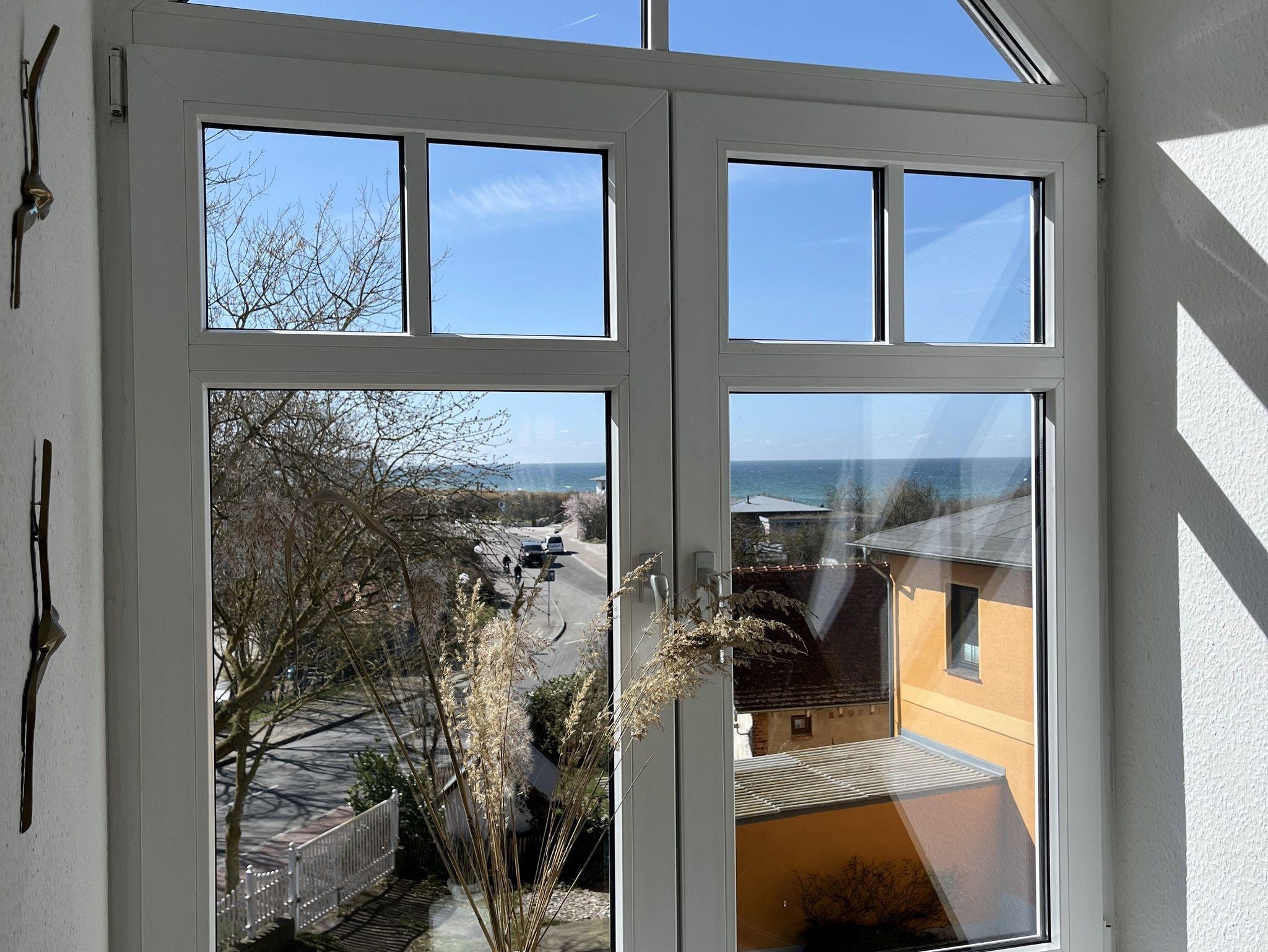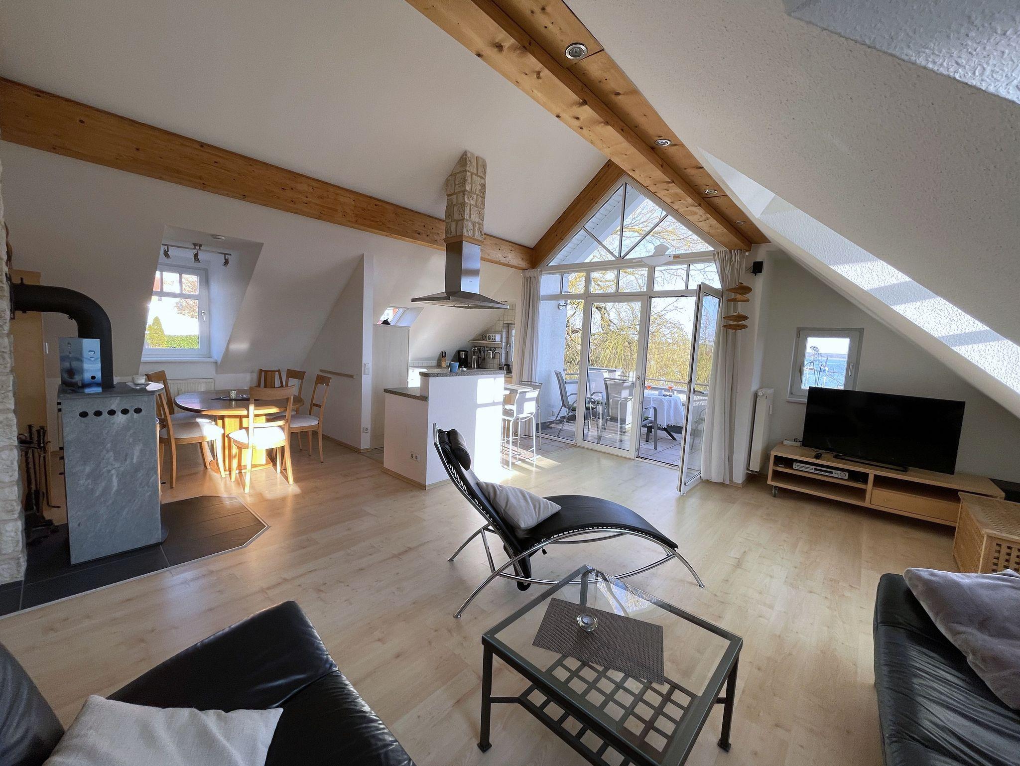 Wenn Sie in diese schöne Wohnung eintreten, fällt der erste Blick direkt auf das Salzhaff - was könnte es Schöneres geben? Und das ist nicht der einzige wunderschöne Ausblick, den Sie aus dieser Wohnung haben: im Wohn- und Schlafraum haben Sie außerdem freie Sicht auf die Ostsee und den Kirchturm von Rerik.