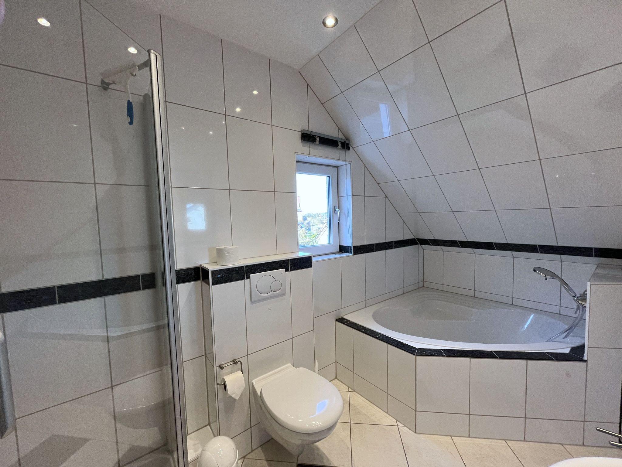An dem großen Esstisch kann gegessen, gespielt, oder einfach nur der Ausblick genossen werden. Die hochwertige Einbauküche ist durch eine Theke optisch vom Wohnbereich getrennt und verfügt neben den klassischen Einbaugeräten zusätzlich über eine kleineSitzecke. Neben dem großzügogen Tages-Licht Bad gibt es eine große Whirlbadewanne und eine separate Dusche.