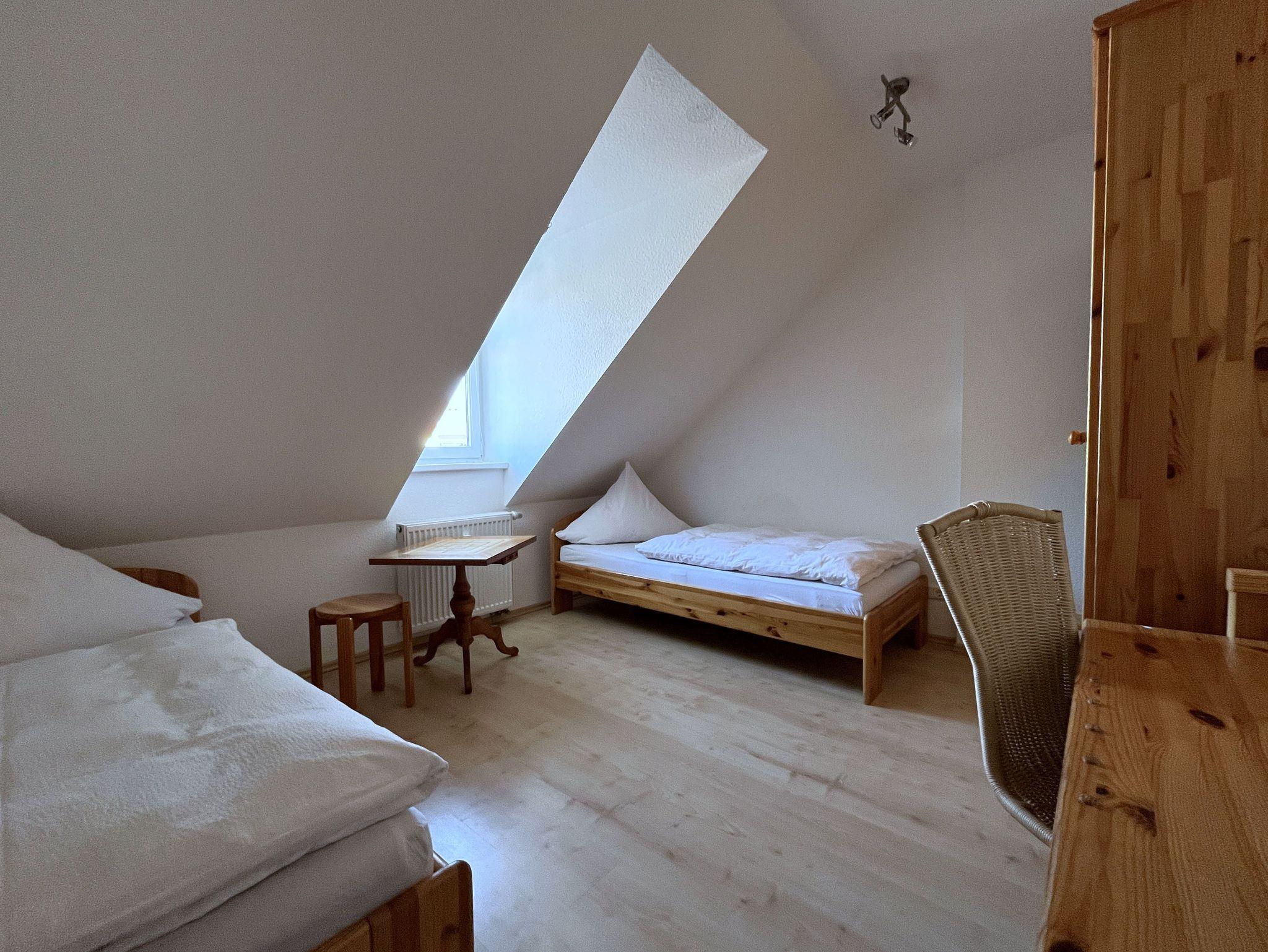In dem größeren der beiden Schlafzimmer stehen zwei Einzelbetten, ein Kleiderschrank sowie ein Schreibtisch zur Verfügung. Im kleineren Schlafzimmer finden Sie ein großes Doppelbett, eine Kleiderablage sowie einen Kleiderschrank.