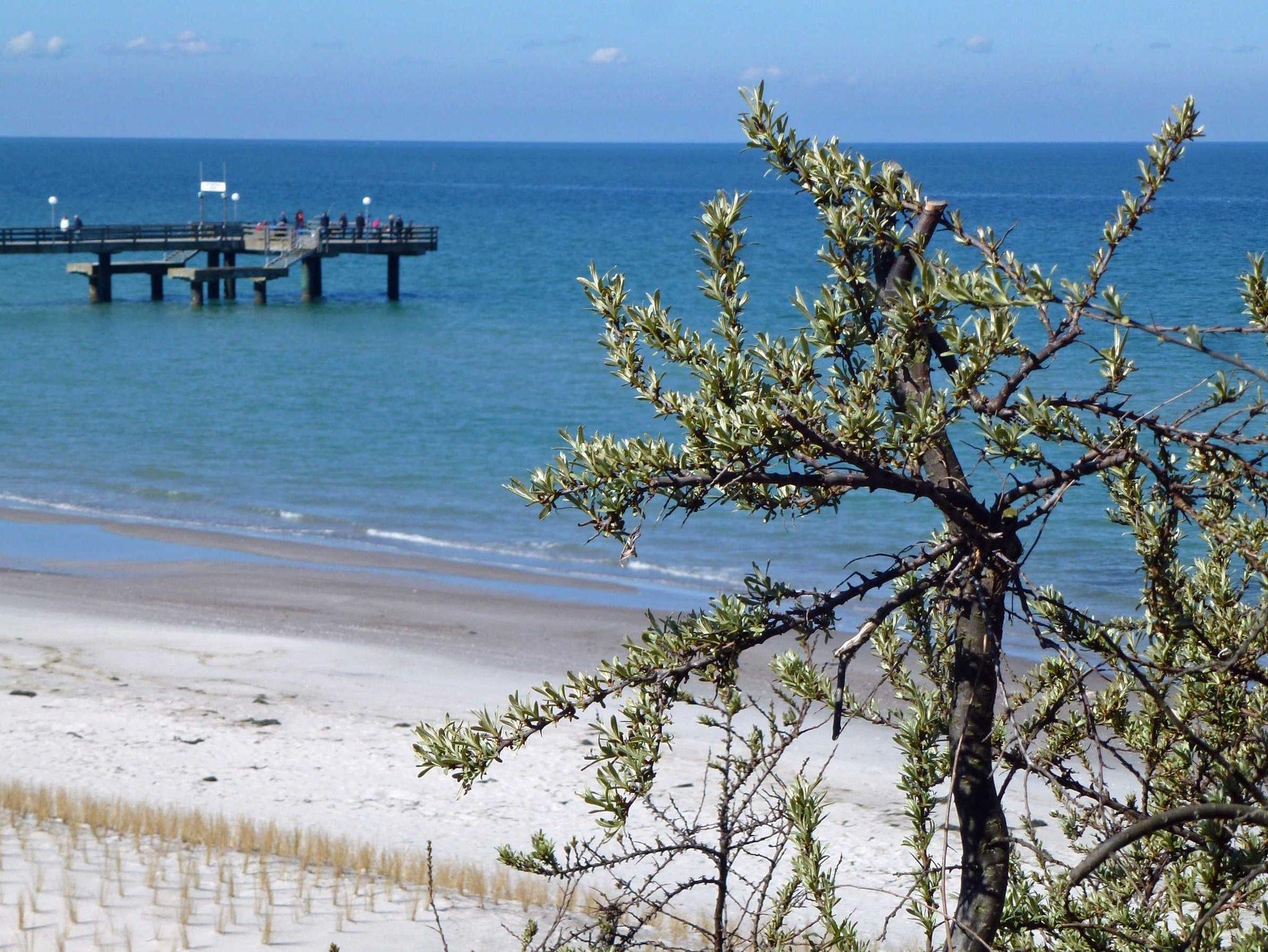 Der Strand ist 500m am Fuße der Steilküste zu entdecken. Ein belebter, breiter Sandstrand an der Seebrücke mit Strandkorb-, Fahrrad- und Bootsverleih sowie vielfältiger Gastronomie und kleinen Geschäften ist 1000m entfernt. Das Salzhaff, eine flache, idyllische Ostseebucht mit Bootsverleih und Wassersportcenter ist ideal für Surf-, Segel- und Kitesurf-Anfänger. Busbahnhof, Fahrradverleih, Frisör, Post, Bank, Supermarkt und Geschäfte sowie der beliebte Haffplatz mit Café, Restaurants, Yachthafen und Seebrücke entlang der Strandpromenade ist 20 Fußminuten entlang der Küste erreichbar.