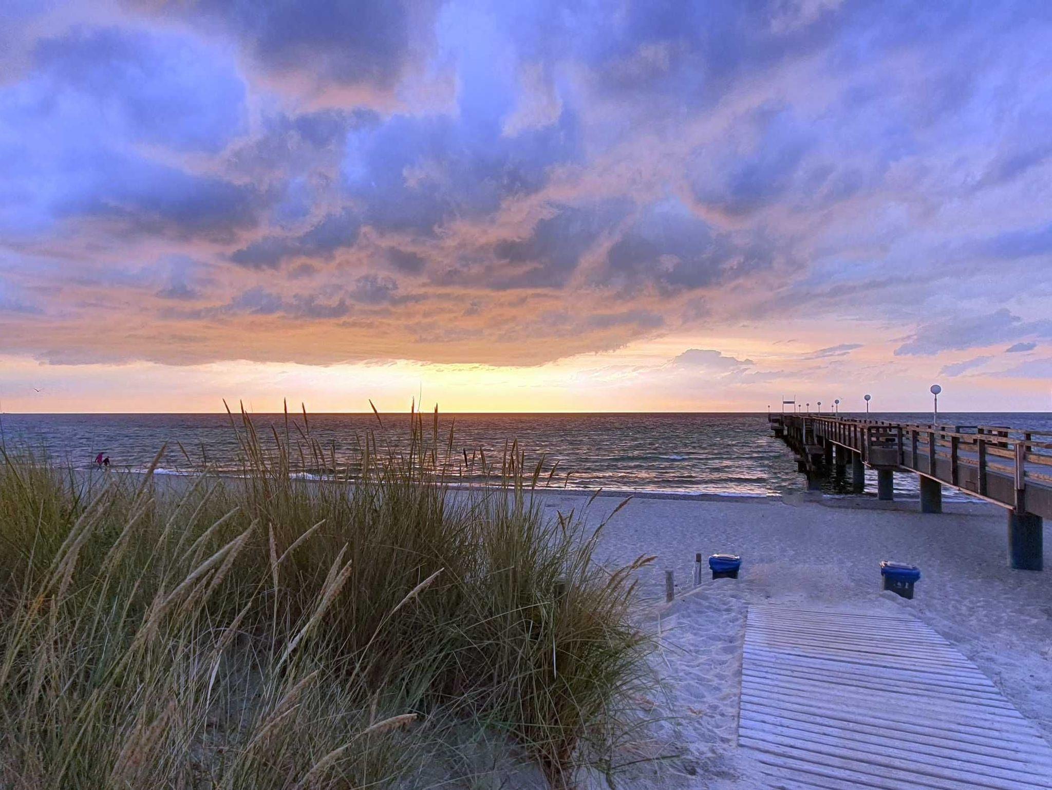 Zum beliebten Haffplatz, dem Treffpunkt mit Cafés, Restaurants, Geschäften, Yachthafen und Seebrücke entlang der Strandpromenade in 10 Fußminuten bzw 800m.