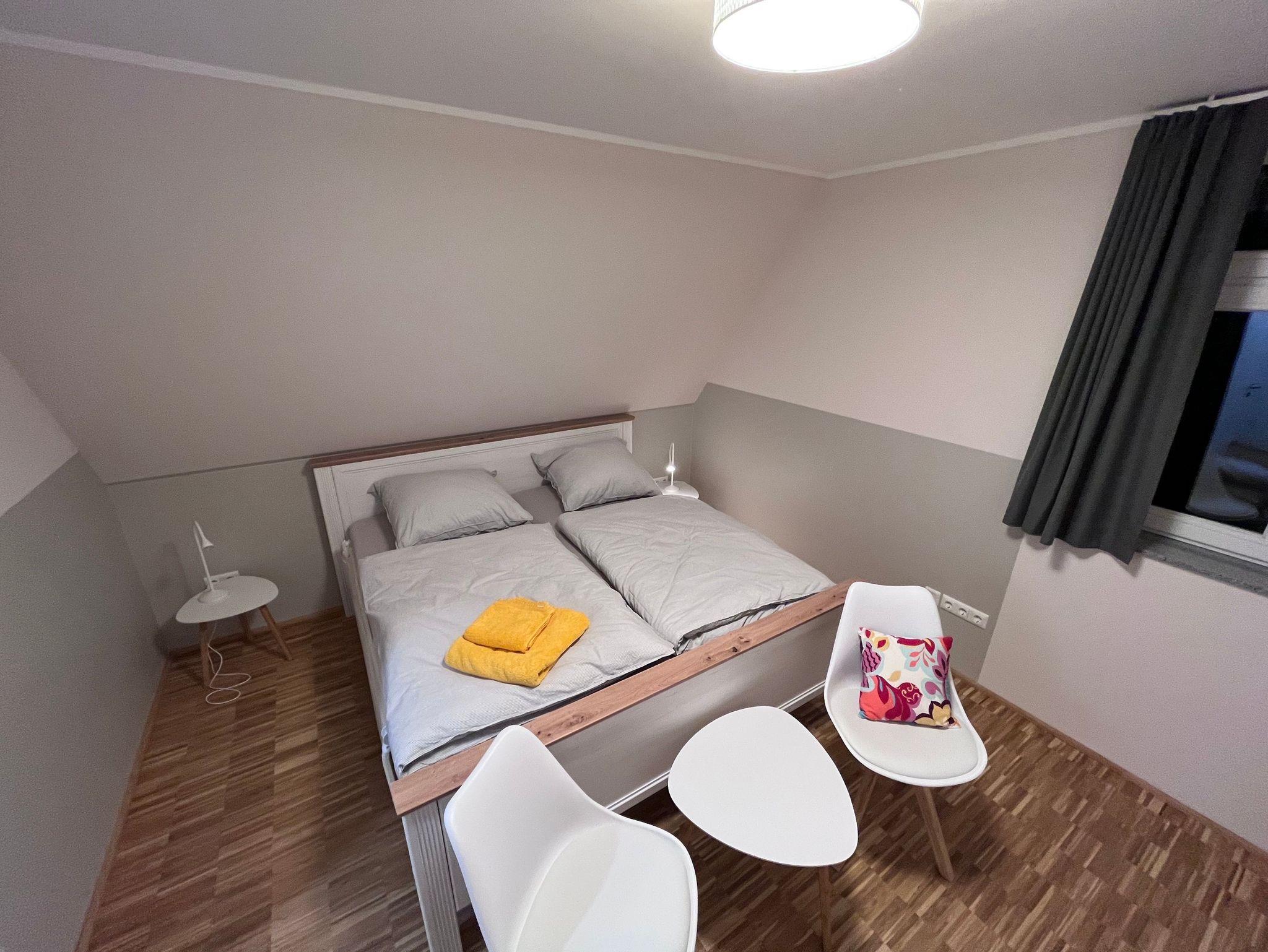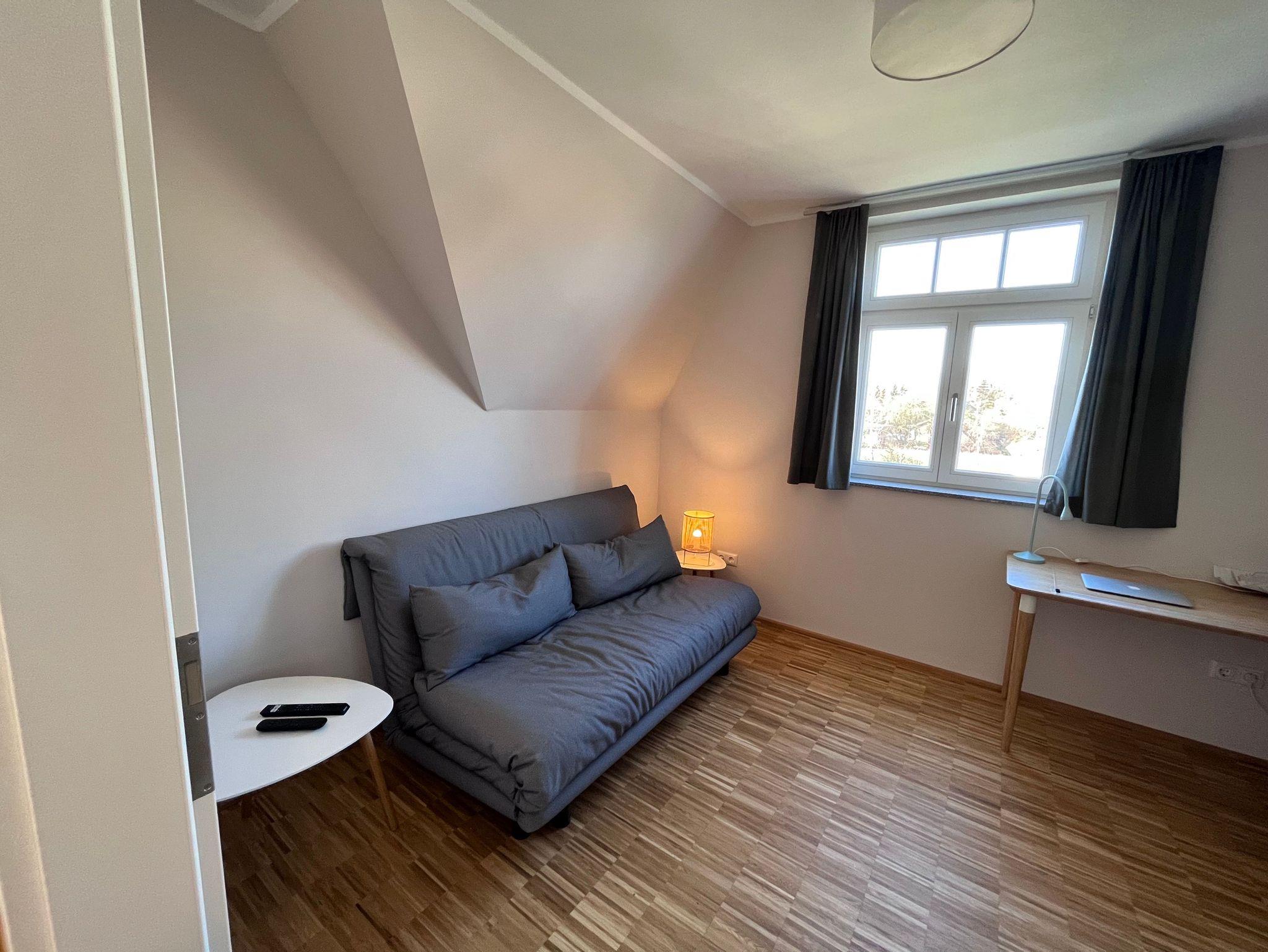 Die beiden gemütlichen und ausgebauten Spitzböden mit je zwei Einzelbetten sind nur über die beiden oberen Schlafzimmer und ausschließlich über eine massive und fest verbaute Holzleiter zugänglich. Der Zugang zu der Leiter ist von den Spitzböden aus gesichert. Die Benutzung der zusätzlichen Betten ist nach Absprache selbstverständlich möglich. Unser Haus ist hervorragend für Gruppen geeignet. Wer weniger als 4 Übernachtungen in unserem Haus buchen möchte, kann das tun, wenden Sie sich hierzu gern an die Kurverwaltung.