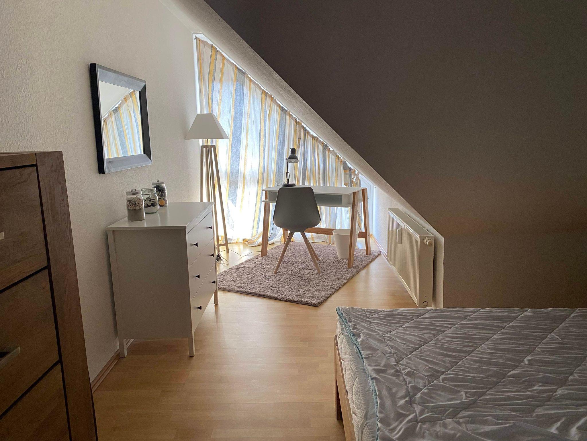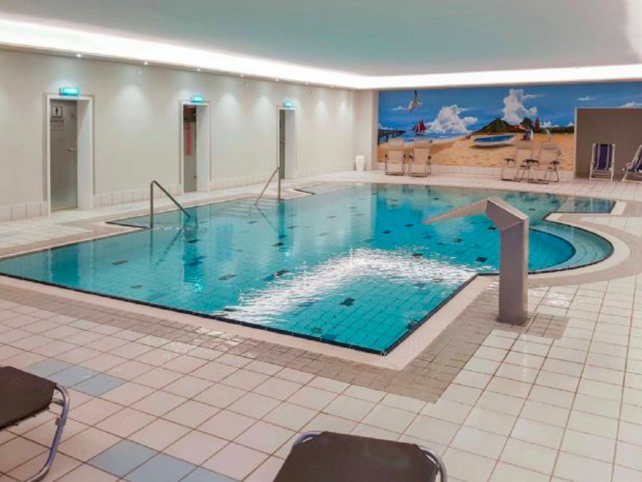 In direkter Strandnähe gelegene Maisonette-Wohnung im Seitenflügel des Kurhauses mit Südbalkon zum Salzhaff hin. Die Schlafzimmer befinden sich in der oberen Etage, das Wohnzimmer, die gut ausgestatteter Küche sowie das Badezimmer befinden sich in der ersten Etage. Das Schwimmbad und die Sauna sind im gleichen Gebäude gelegen und können also auch bei Schietwetter trocken erreicht werden.