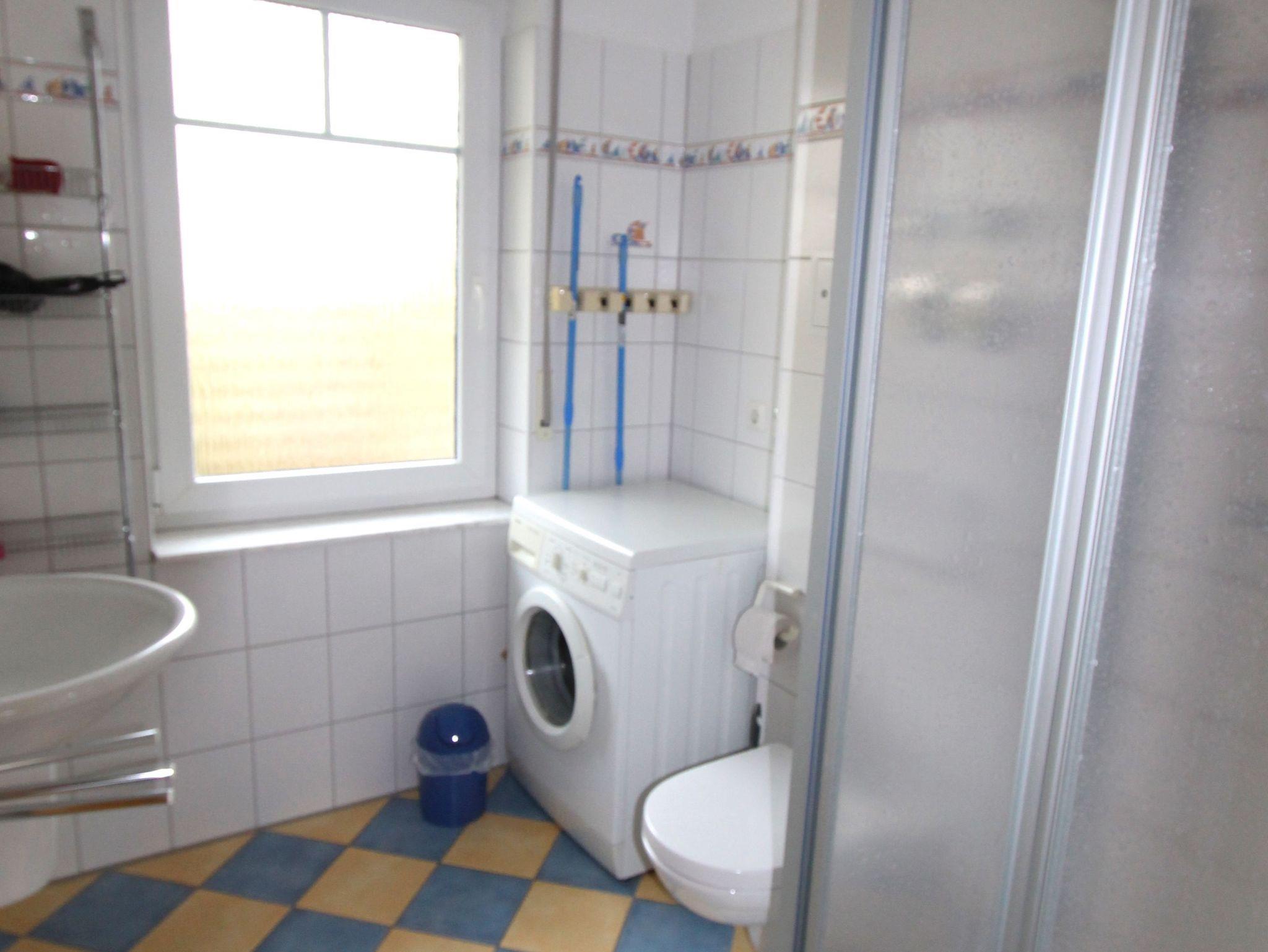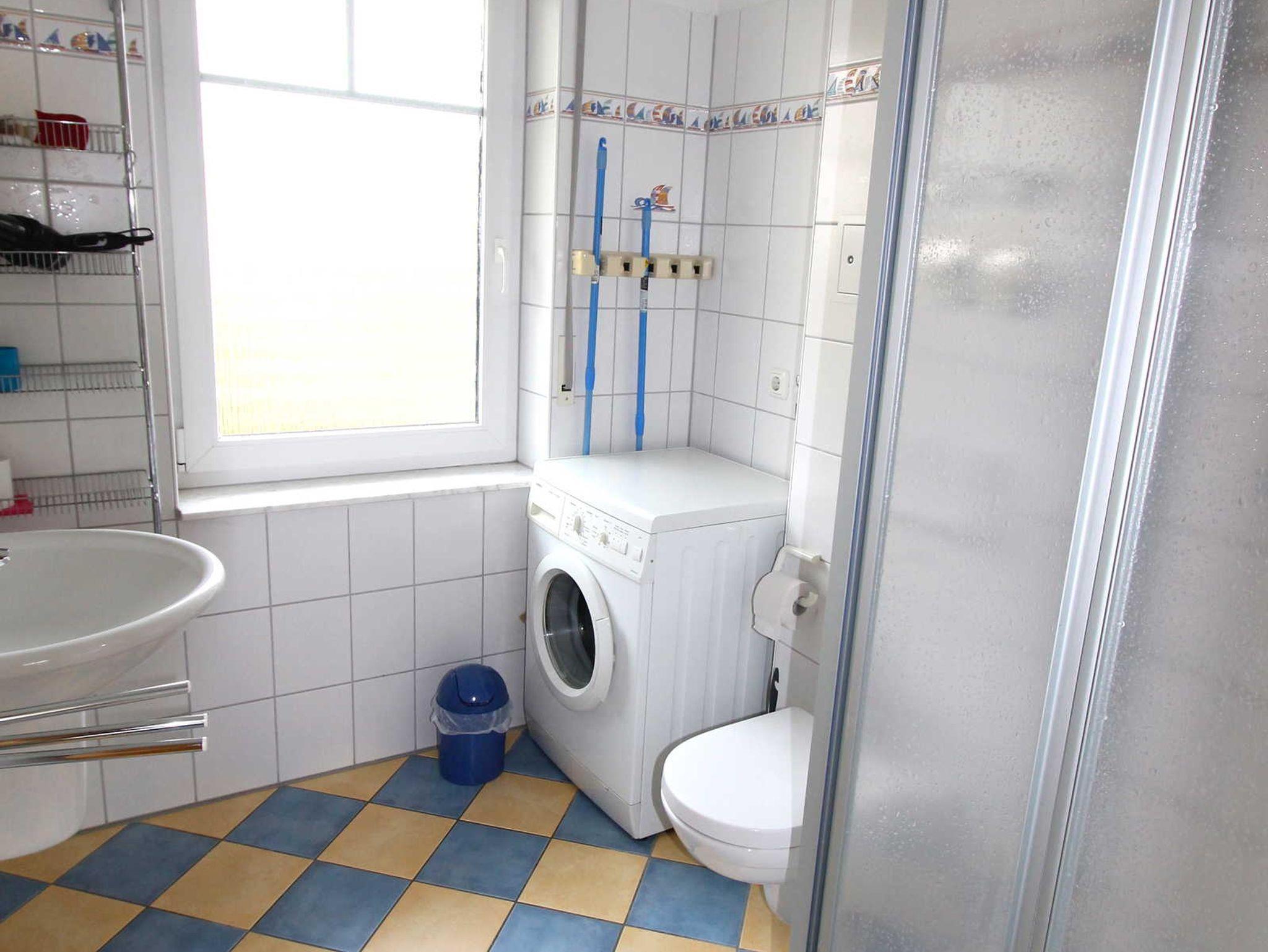 Im Badezimmer befindet sich eine Dusche, WC sowie eine Waschmaschine.