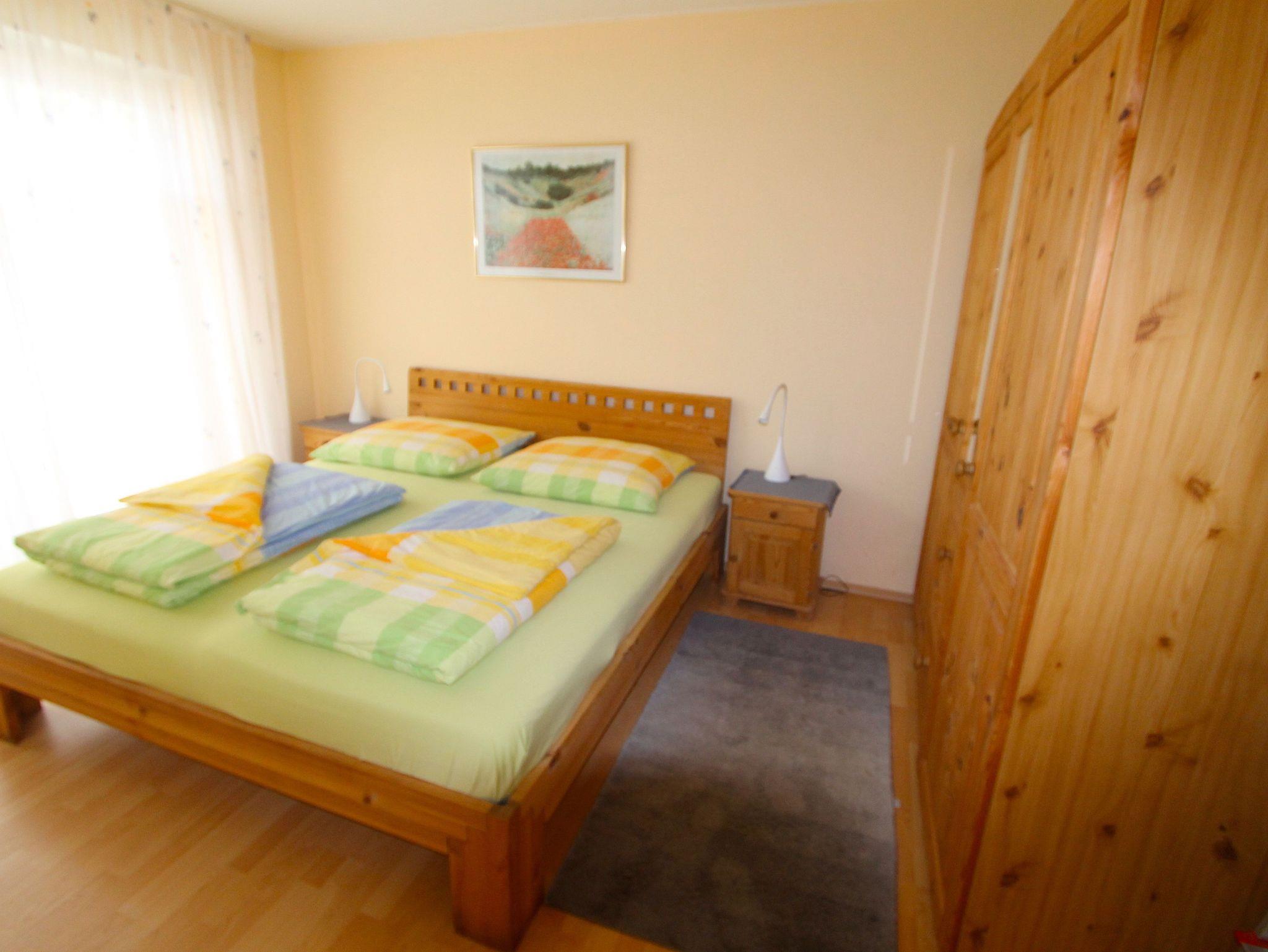 In einem Schlafzimmer befindet sich ein Doppelbett, im zweiten Schlafzimmer zwei Einzelbetten, eines mit integriertem Ausziehbett.