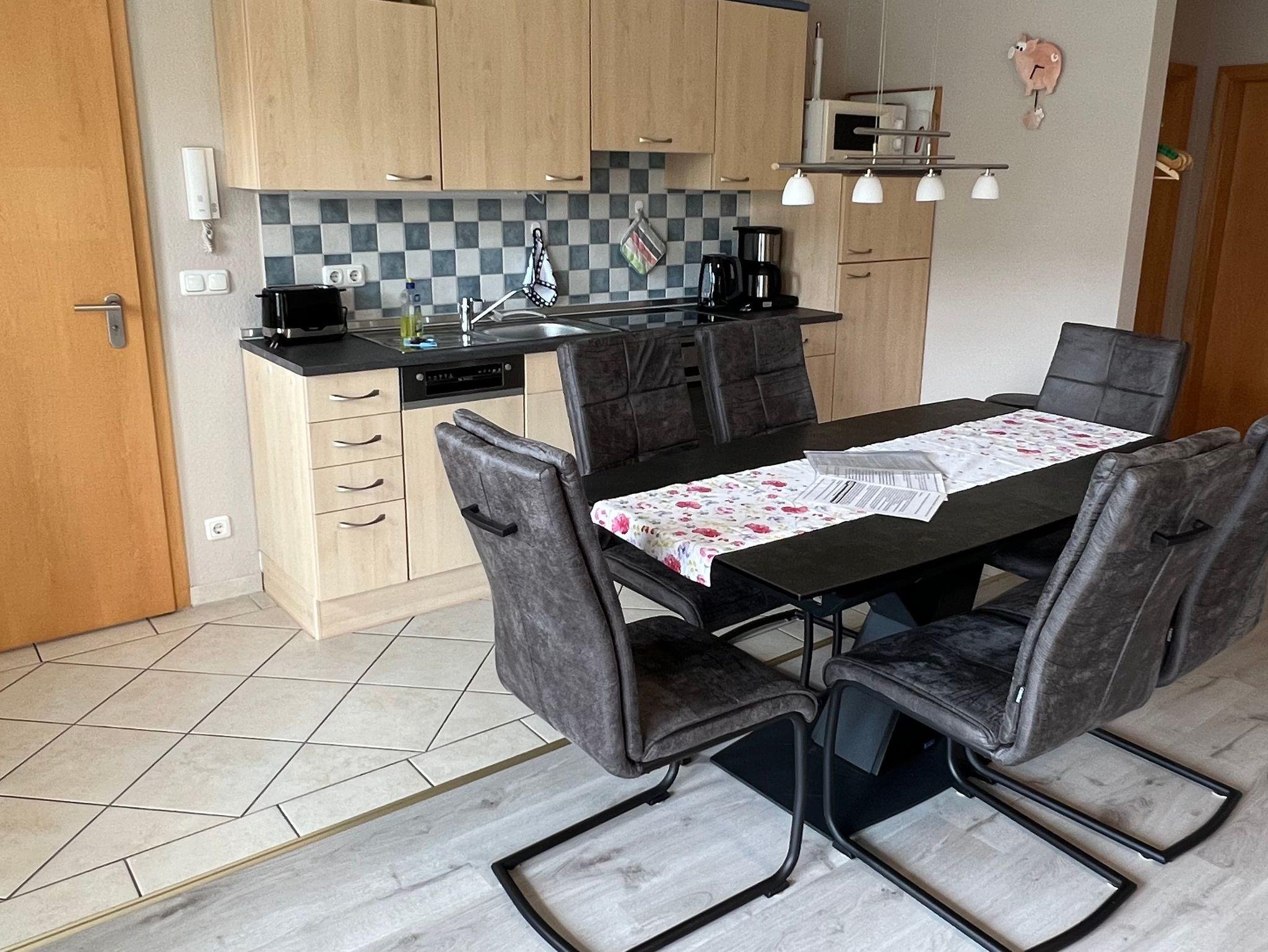 Die zum Wohnraum offene Küche ist komplett ausgestattet mit Herd- Backofen, Geschirrspüler, Kühlschrank, Mikrowelle, Kaffeemaschine, Wasserkocher, Toaster und vielem mehr.