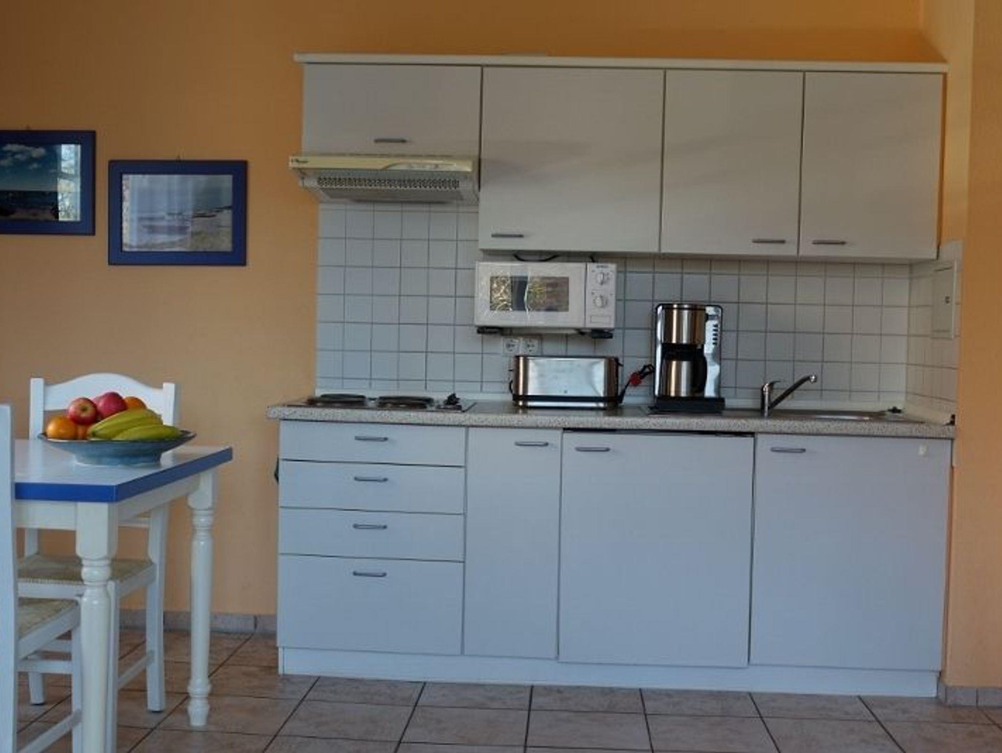 Die Wohnung liegt im ersten Stock, ist maritim eingerichtet und hat einen großen Parkplatz, auf den Sie blicken können.Die Wohnung verfügt über einen separaten Schlafraum mit Doppelbett, die Küchenzeile mit allen notwendigen Kleingeräten ist im Wohnraum integriert.