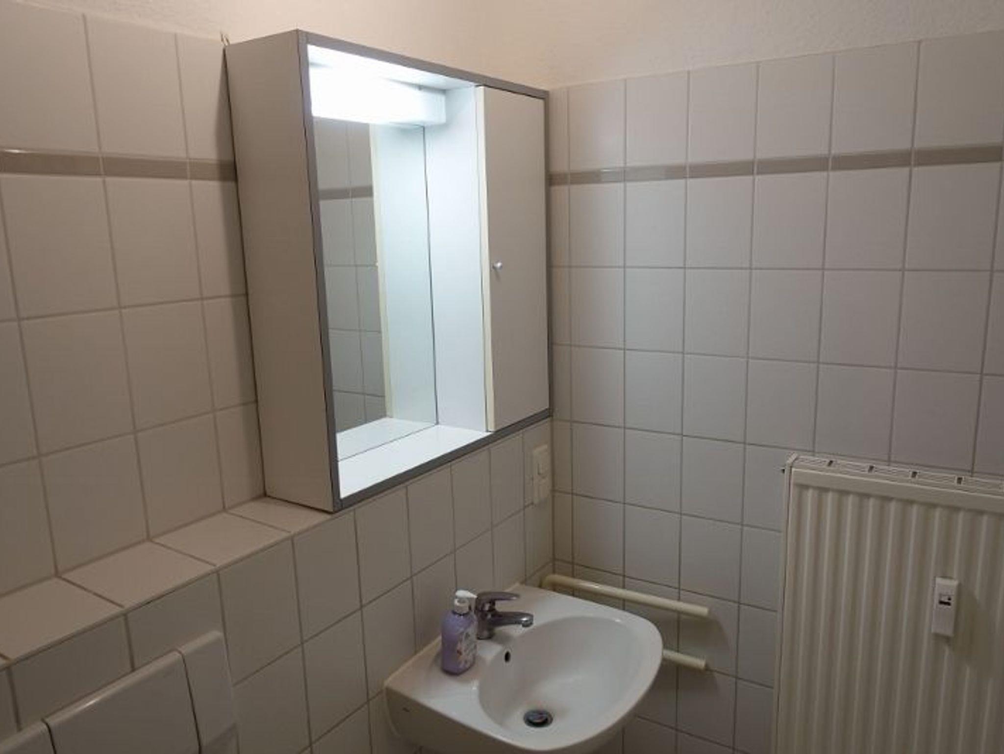 Weiterhin steht Ihnen ein Badezimmer mit Dusche und WC zur Verfügung sowie ein Balkon mit Blick zum Salzhaff.