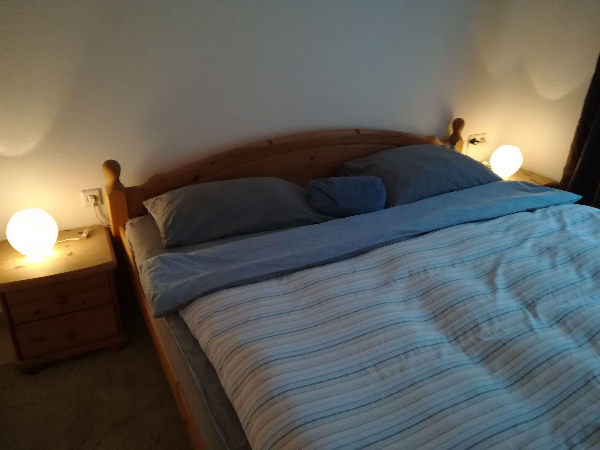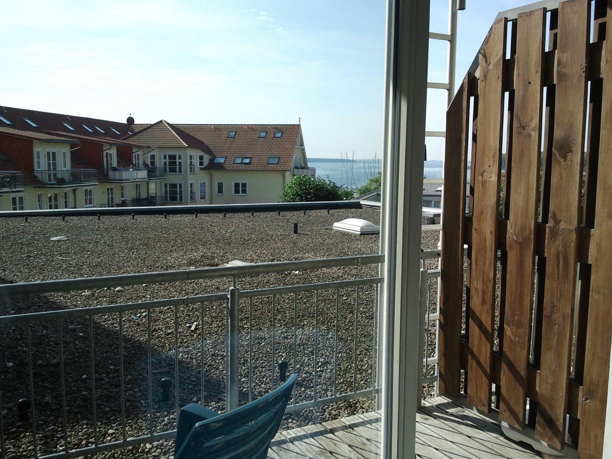 1 Schlafzimmer Doppelbett und 1 Schlafzimmer Etagenbett. Wohnzimmer mit integrierter Küchenzeile. Badezimmer mit Dusche und WC. Balkon mit Blick zum Wasser.