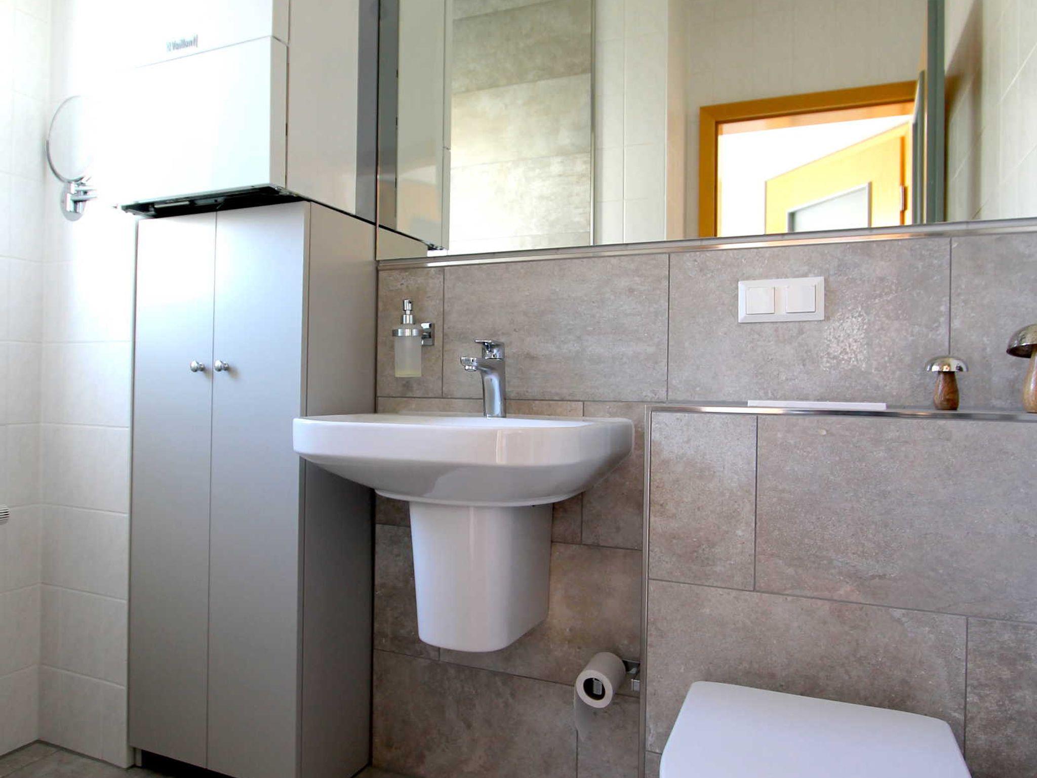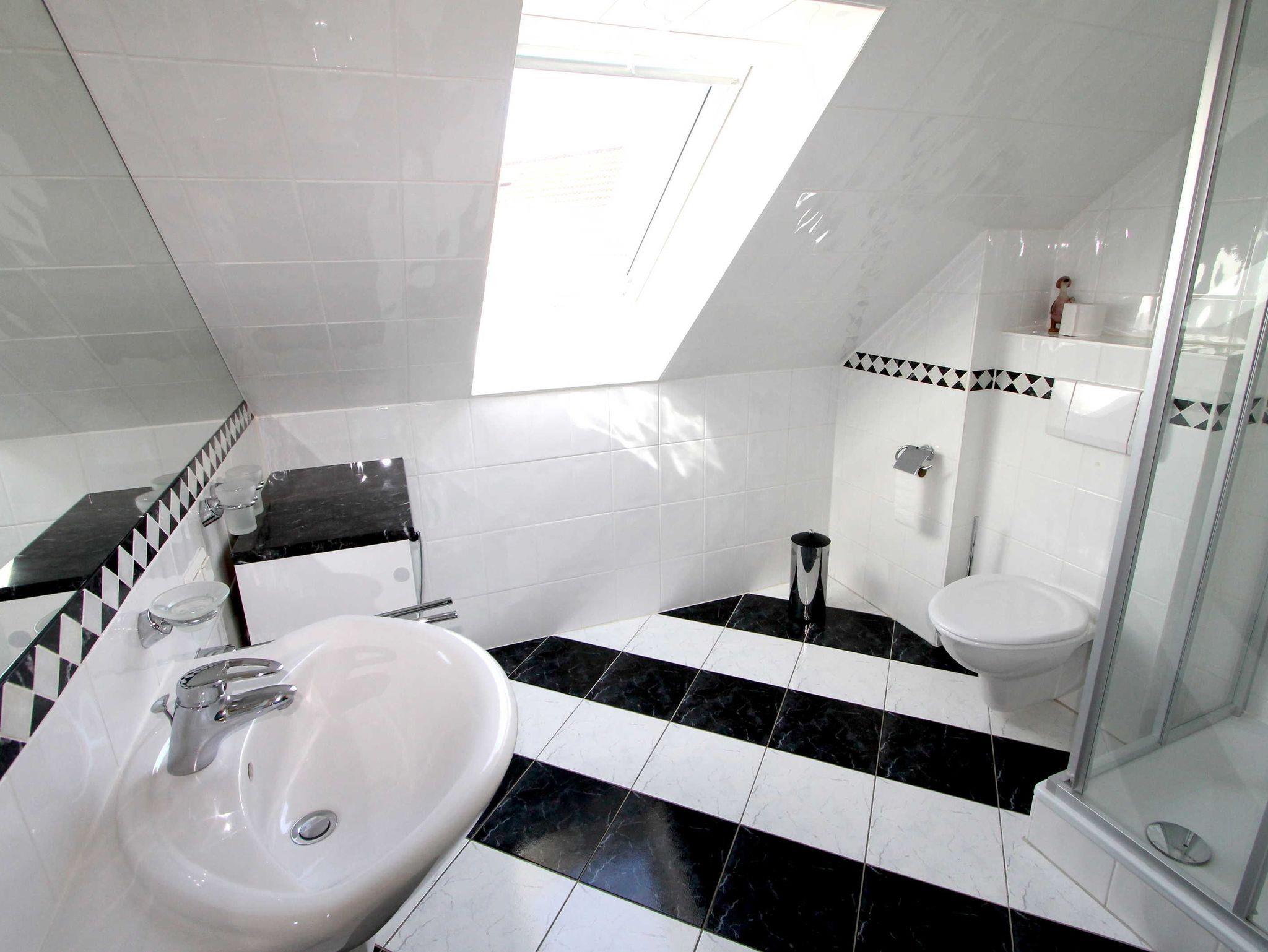 Ebenfalls im Obergeschoss befindet sich das Badezimmer mit Dusche, WC.