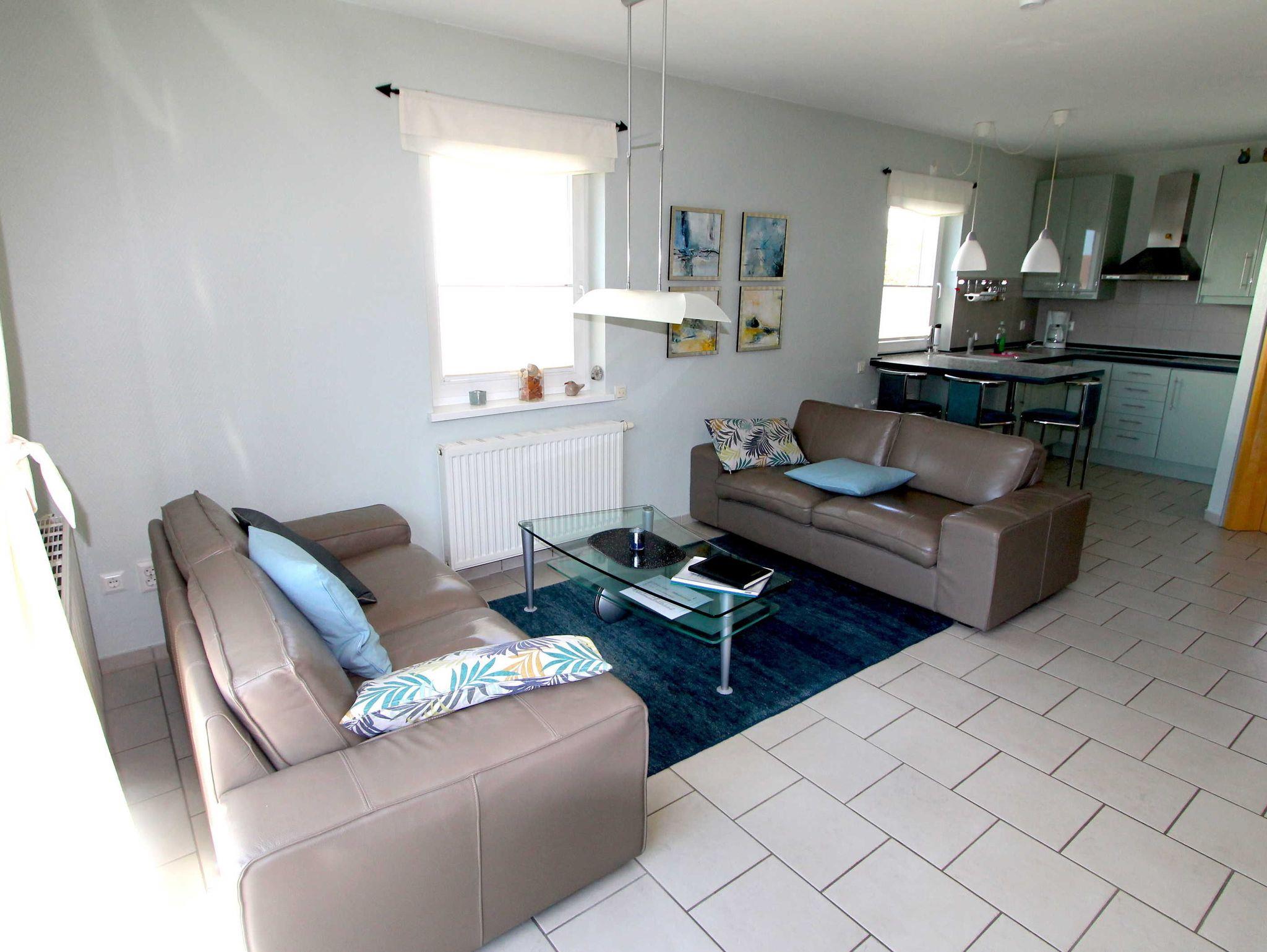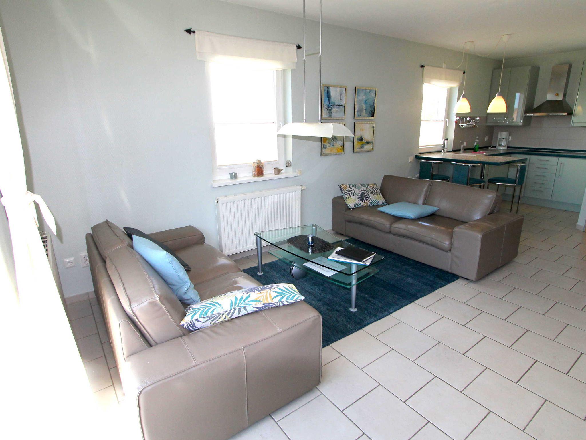 Lichtdurchflutete und sehr hochwertig eingerichtete Doppelhaushälfte (ca.75 m²) in einer verkehrsberuhigten Feriensiedlung nur 150 m vom Strand und der Steilküste entfernt.