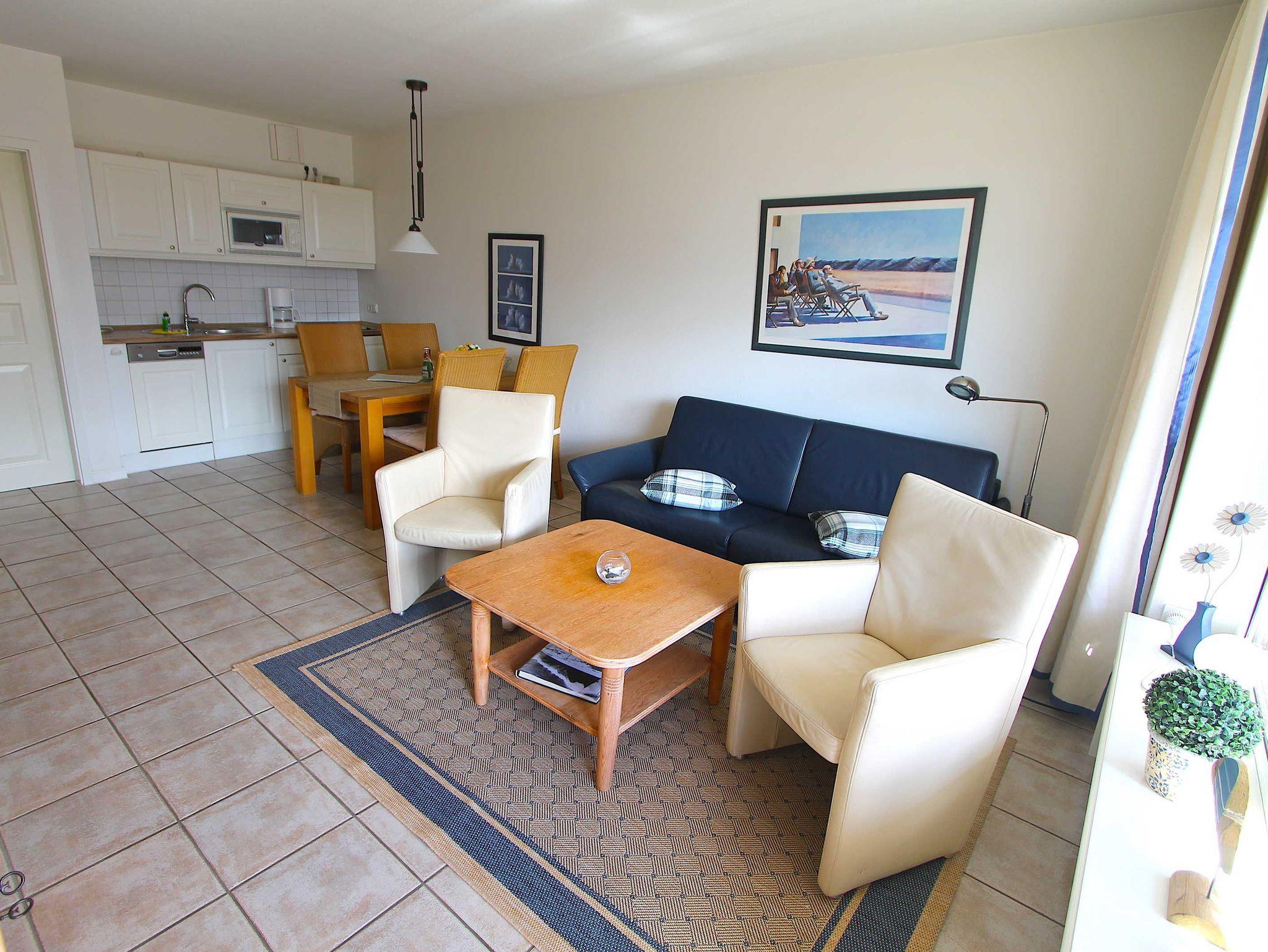 Die Ferienwohnung befindet sich in der 1. Etage, hat 43 m² Whfl. und ist für 2 - 4 Gäste geeignet.